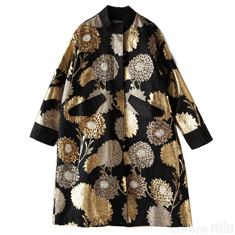 Embro Mill Vintage Royal Spring Autumn Coat Woman Elegant Lady Loose Chinese Style High-end Beading Trench Coat Female M-XXL