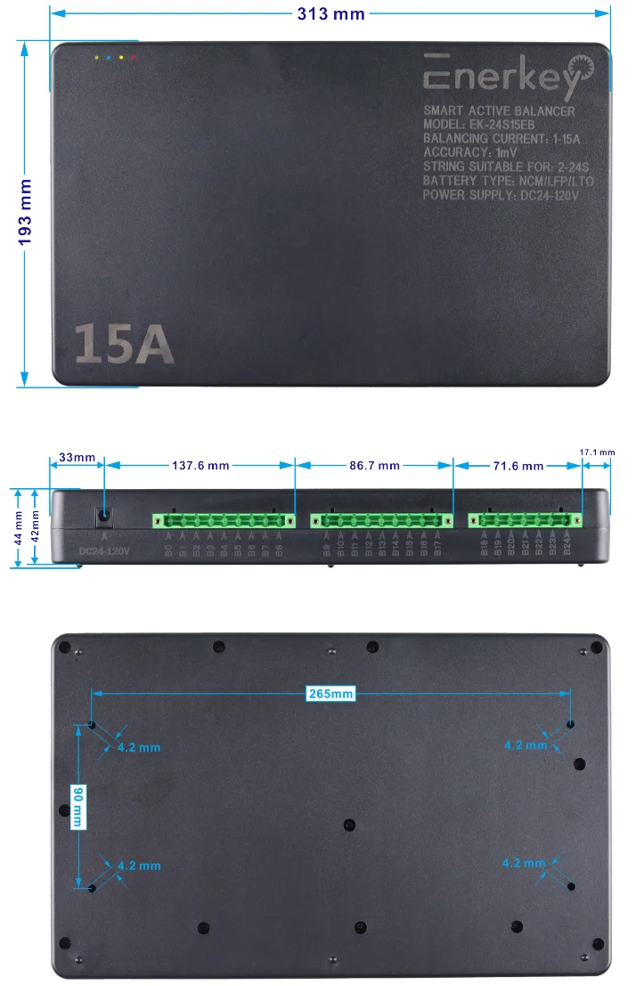 1.The Intelligent Active Equalizer (EK-24S15EB) is a balance management system tailored for large capacity series battery packs.