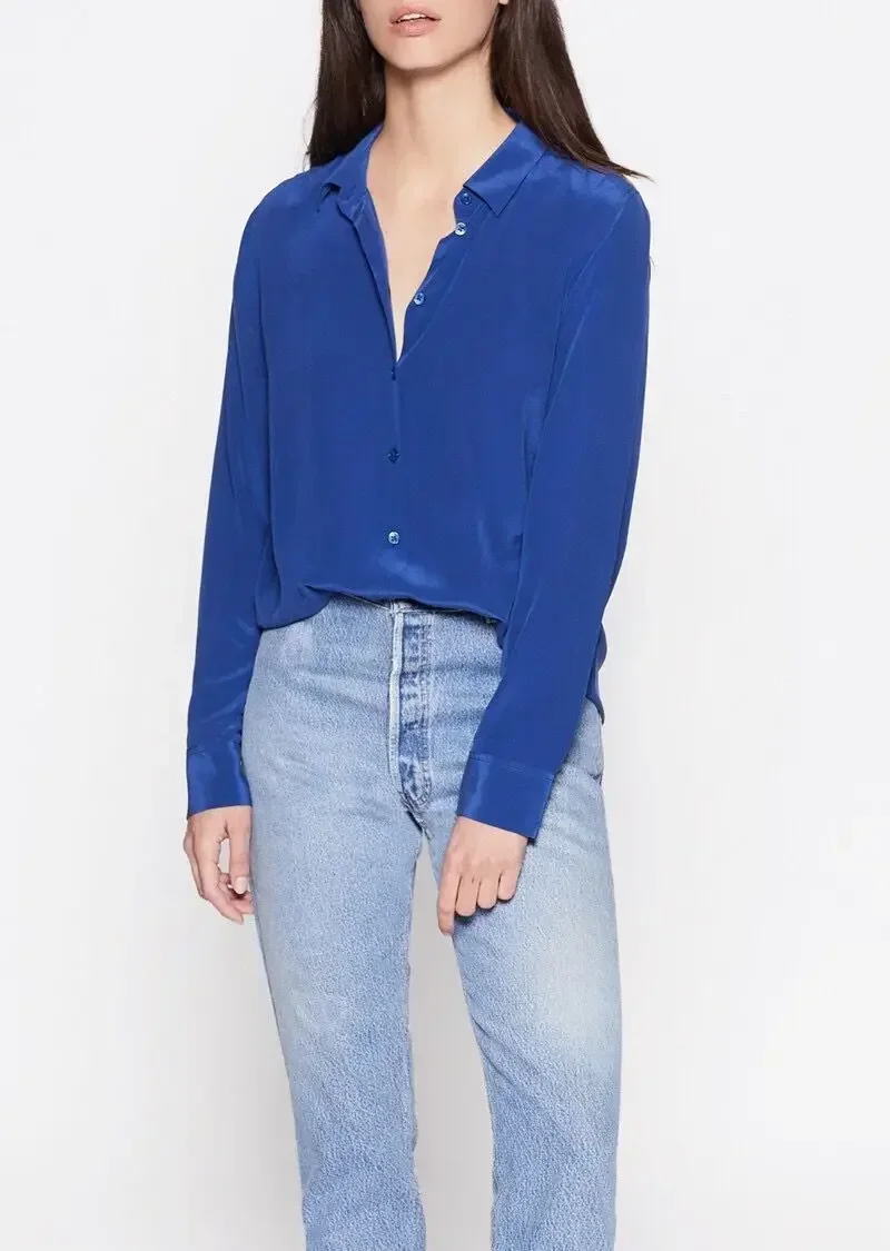 EQ Solid Color Silk Shirt 21 Colors Option 2025 New Sand-washed Mulberry Silk Long Sleeve Shirt OL Women SILK Blouse Blue