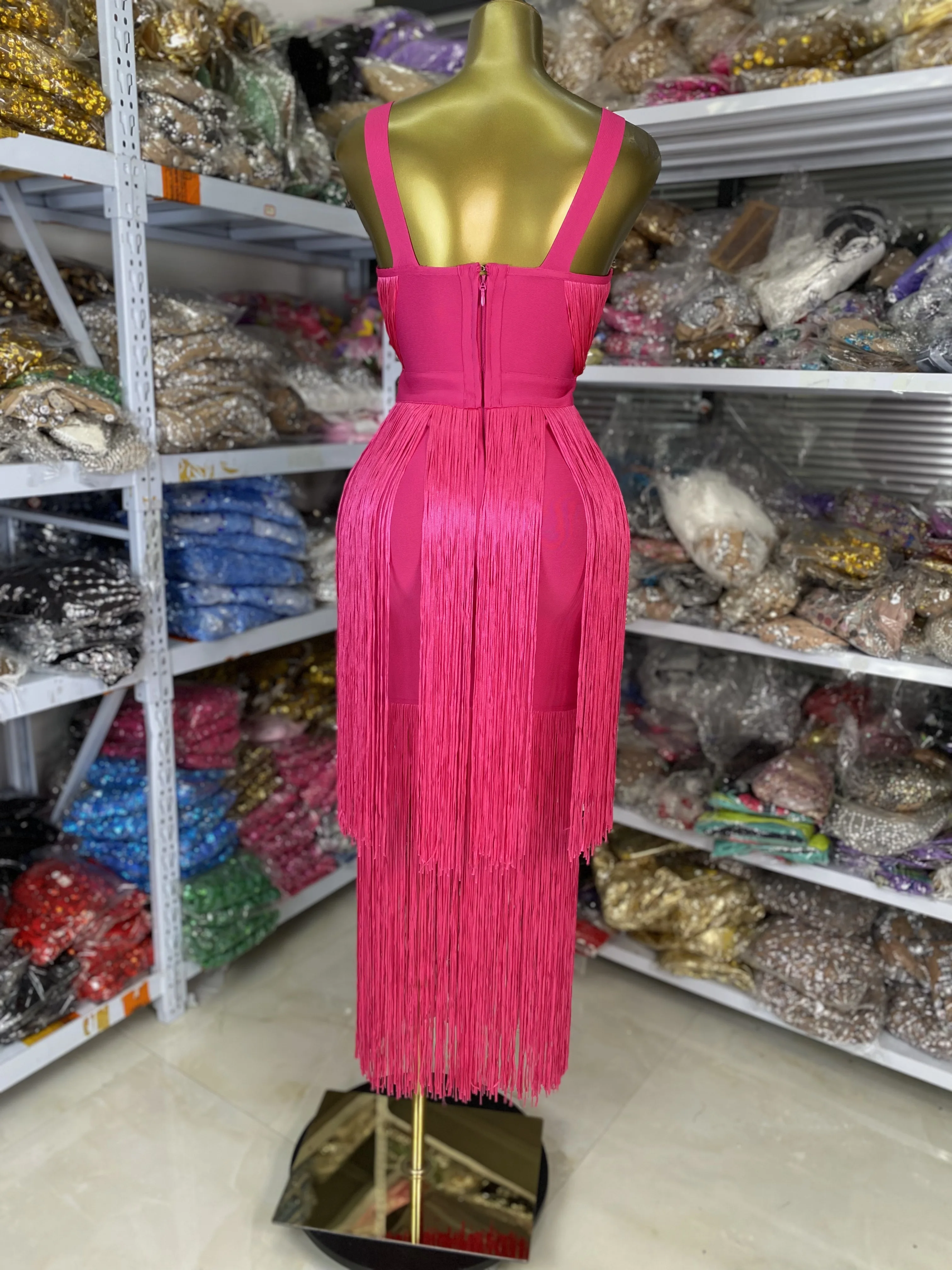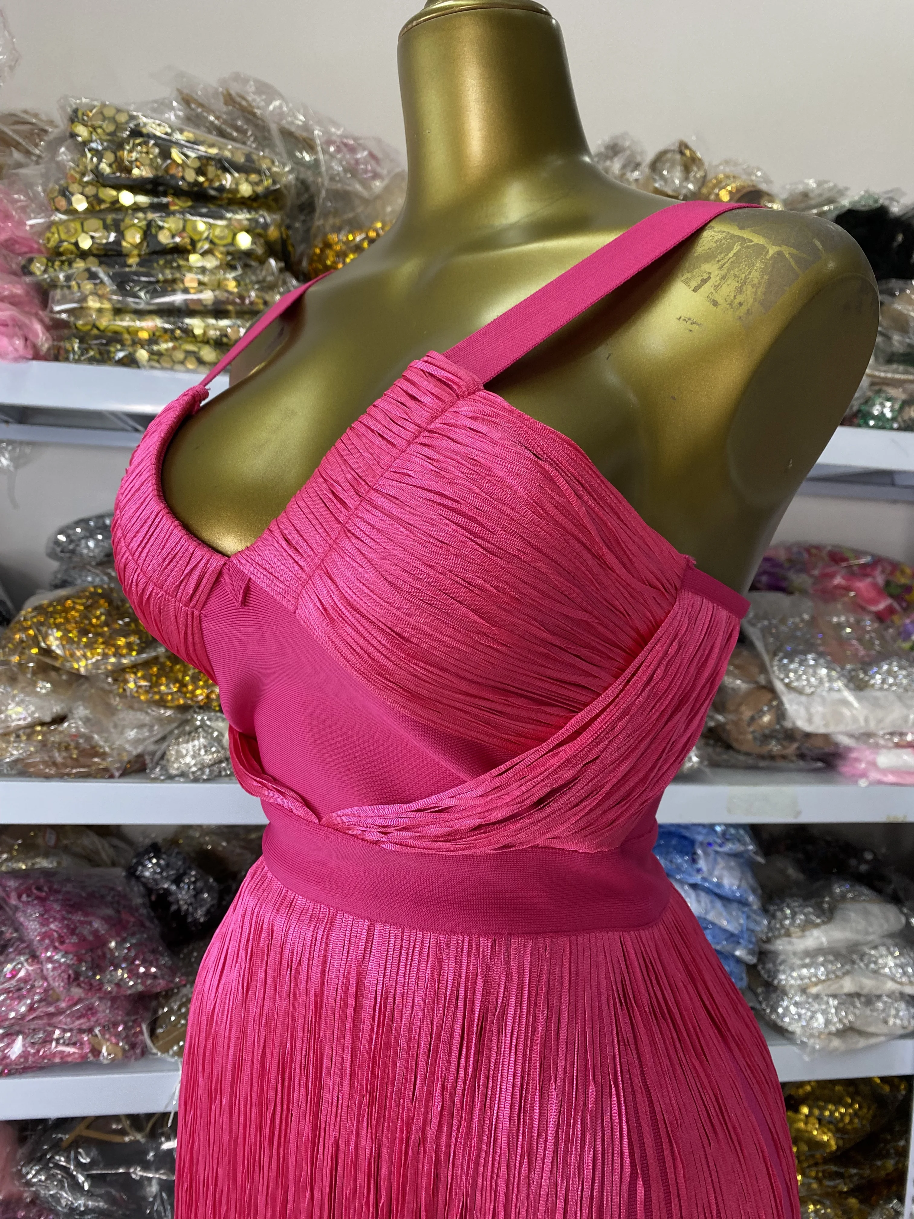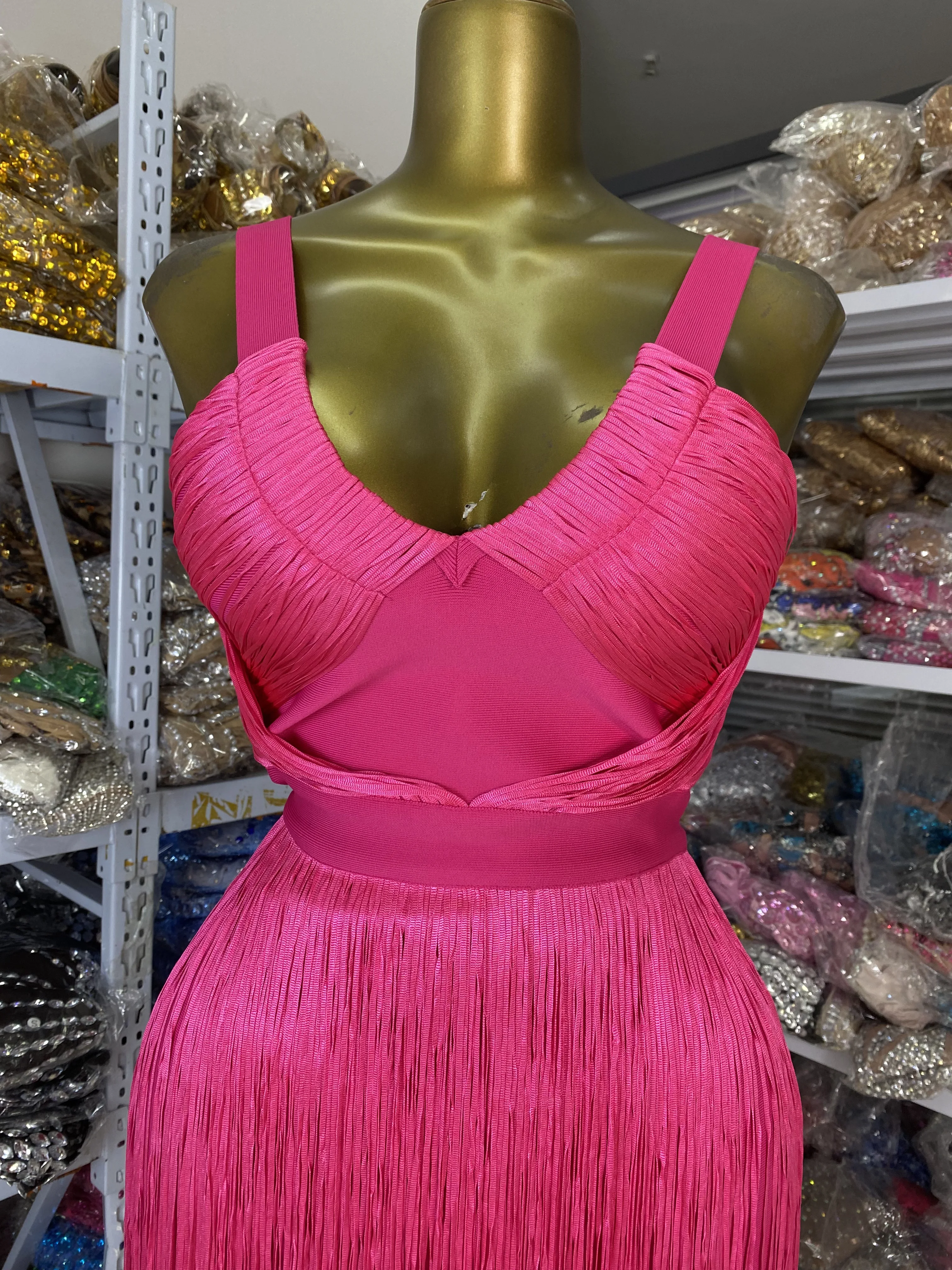 Be the first to review “Factory Sale Women New Hot Pink Fringed Bandage Dress V Neck Midi Long Elastic Celebrity Evening Club Party One Piece Gala Dress” Cancel reply