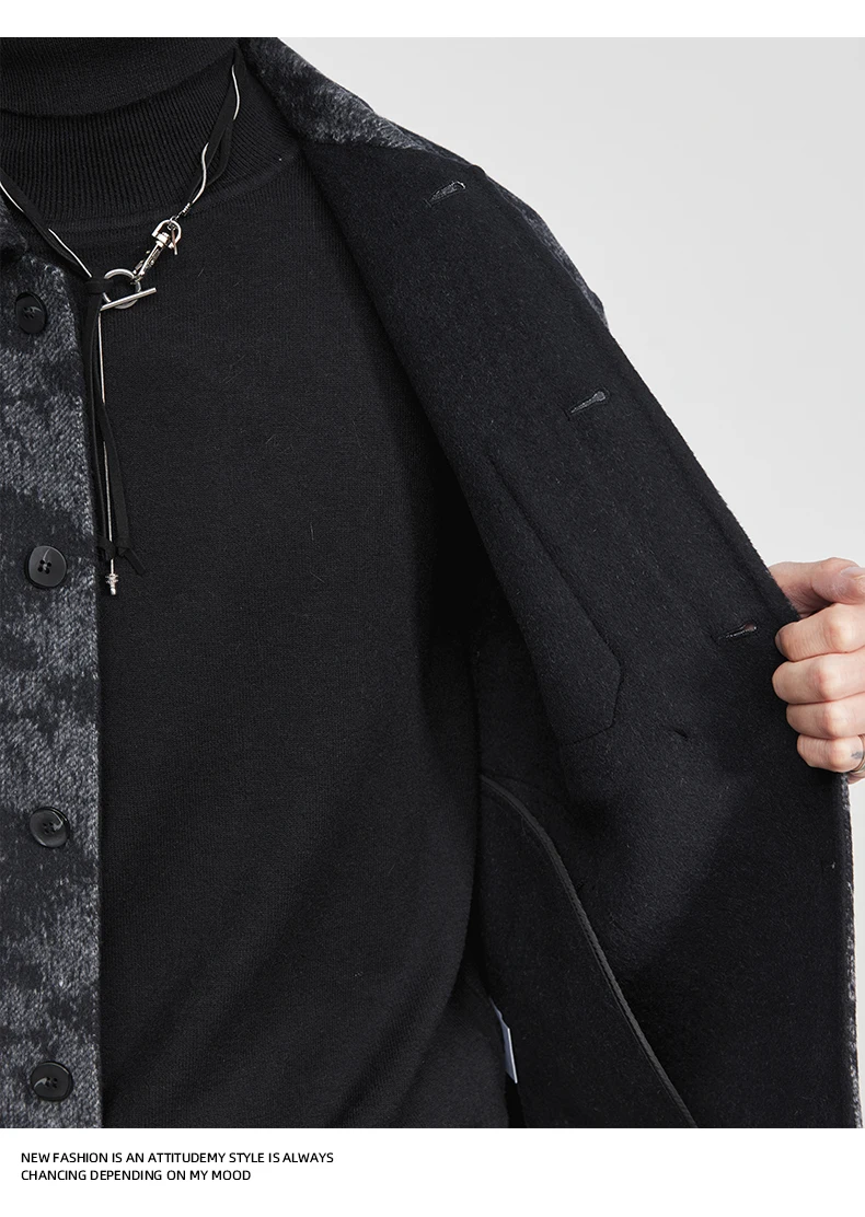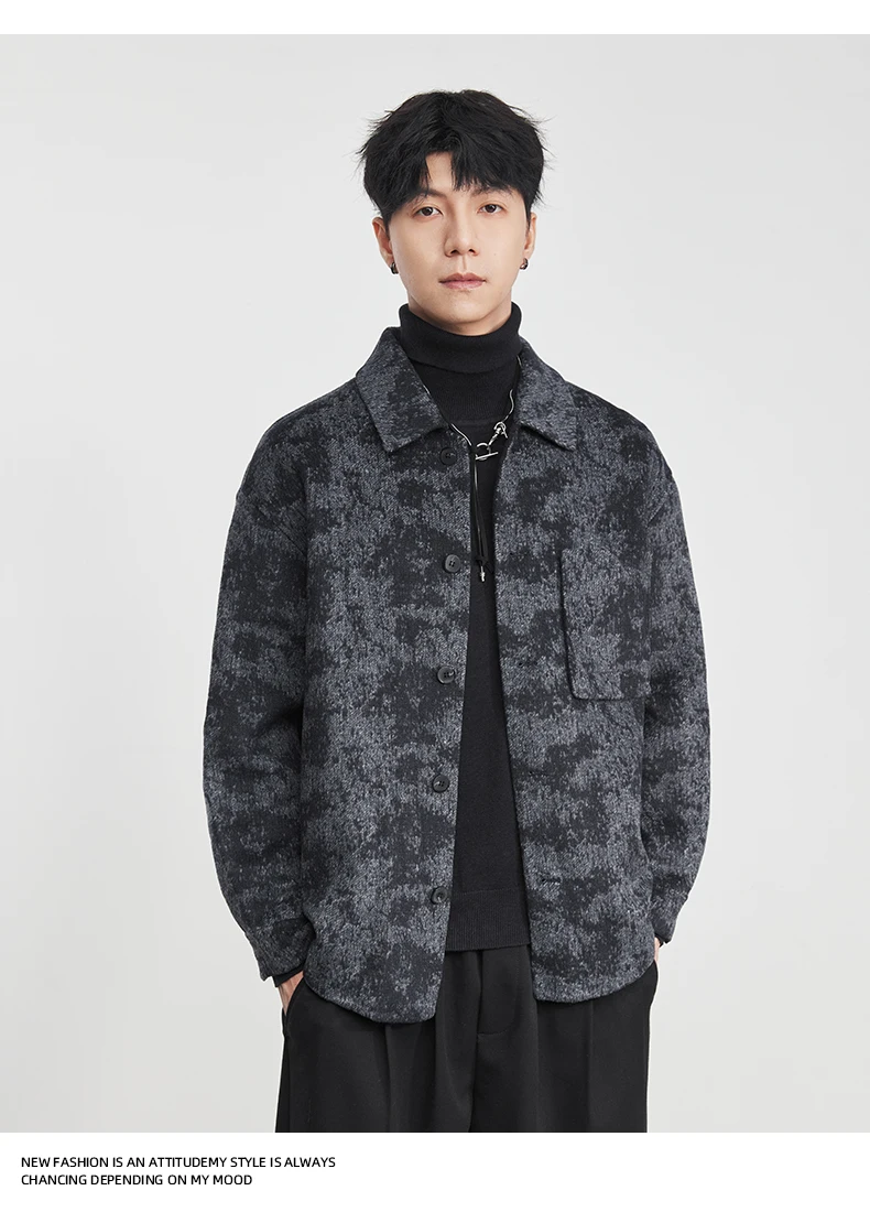 Fashion Men’s Lapel Jacquard Wool Jacket 2025 Winter New Loose Casual Trendy Wool Coat