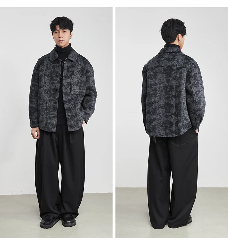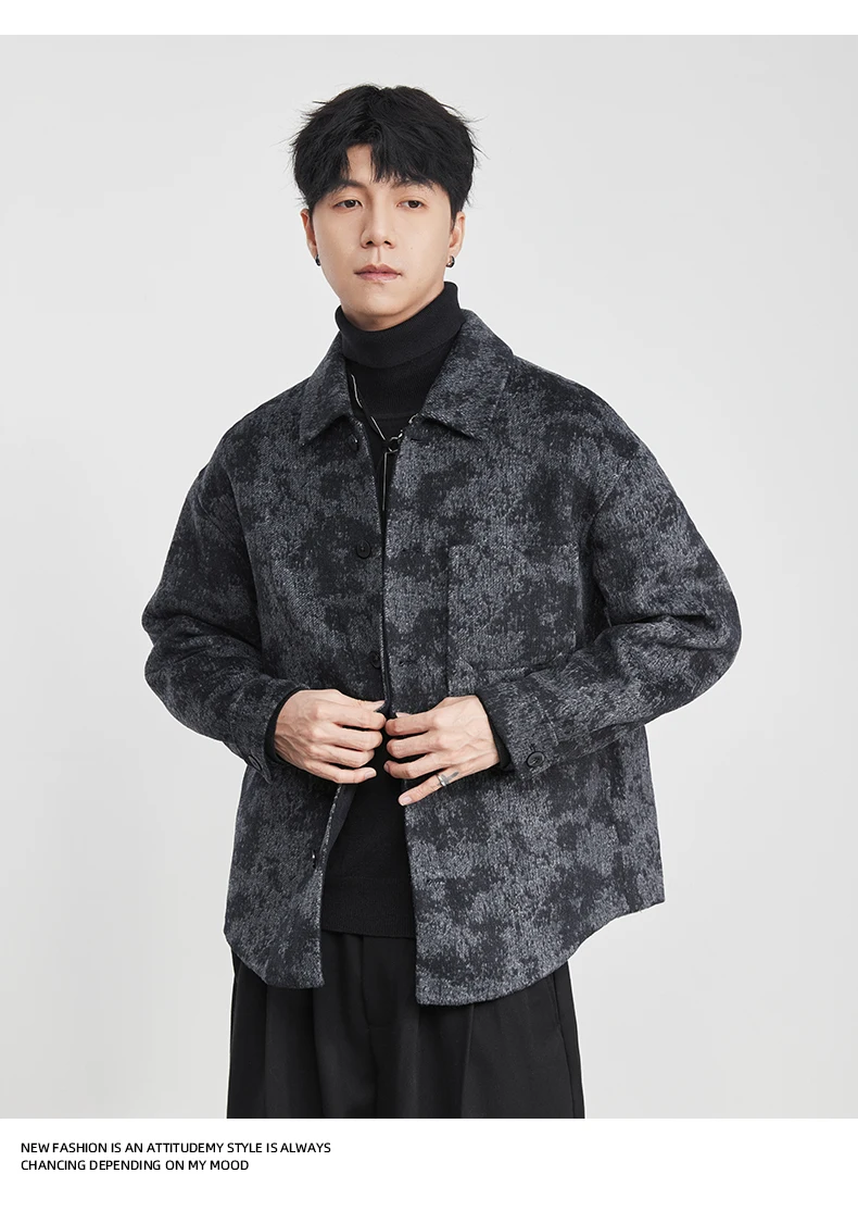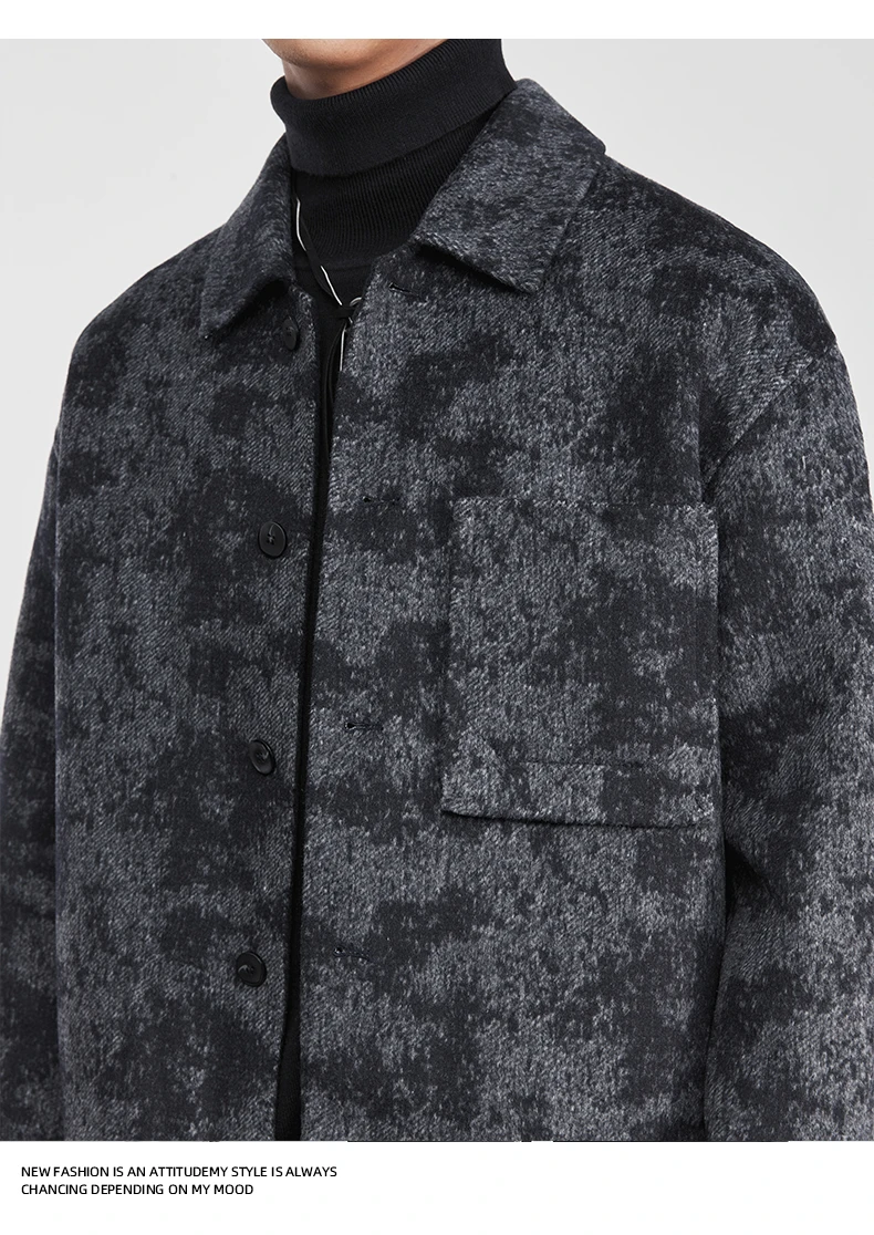 Be the first to review “Fashion Men’s Lapel Jacquard Wool Jacket 2025 Winter New Loose Casual Trendy Wool Coat” Cancel reply