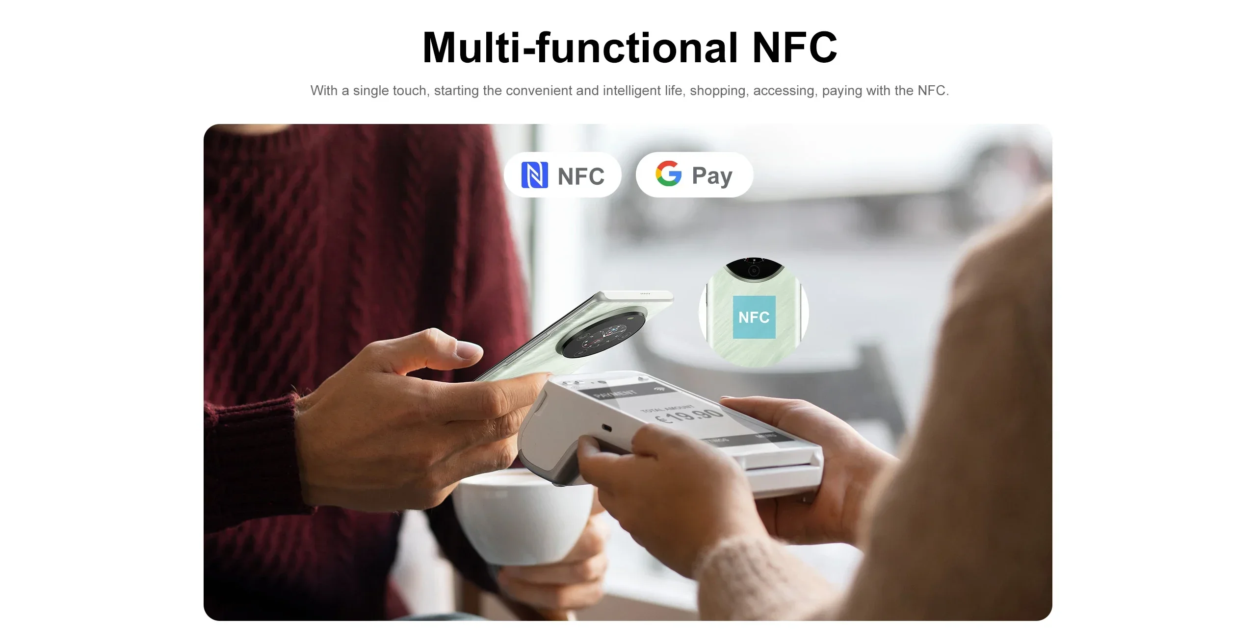 With a single touch, starting the convenient and inteligent life, shopping, accessing, paying with the NFC