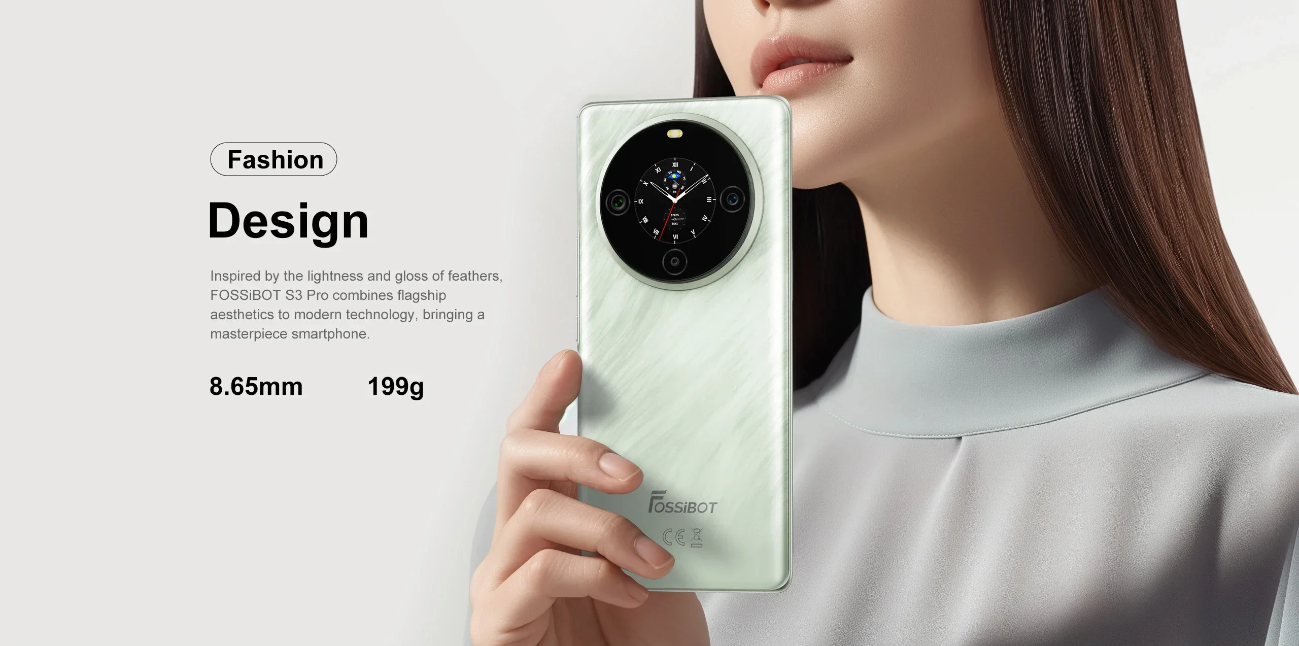 Inspired by the lightness and gloss of feathers.FOSSiBOT S3 PRO combines flagship aesthetics tomodern technology, bringing a masterpiecesmartphone.