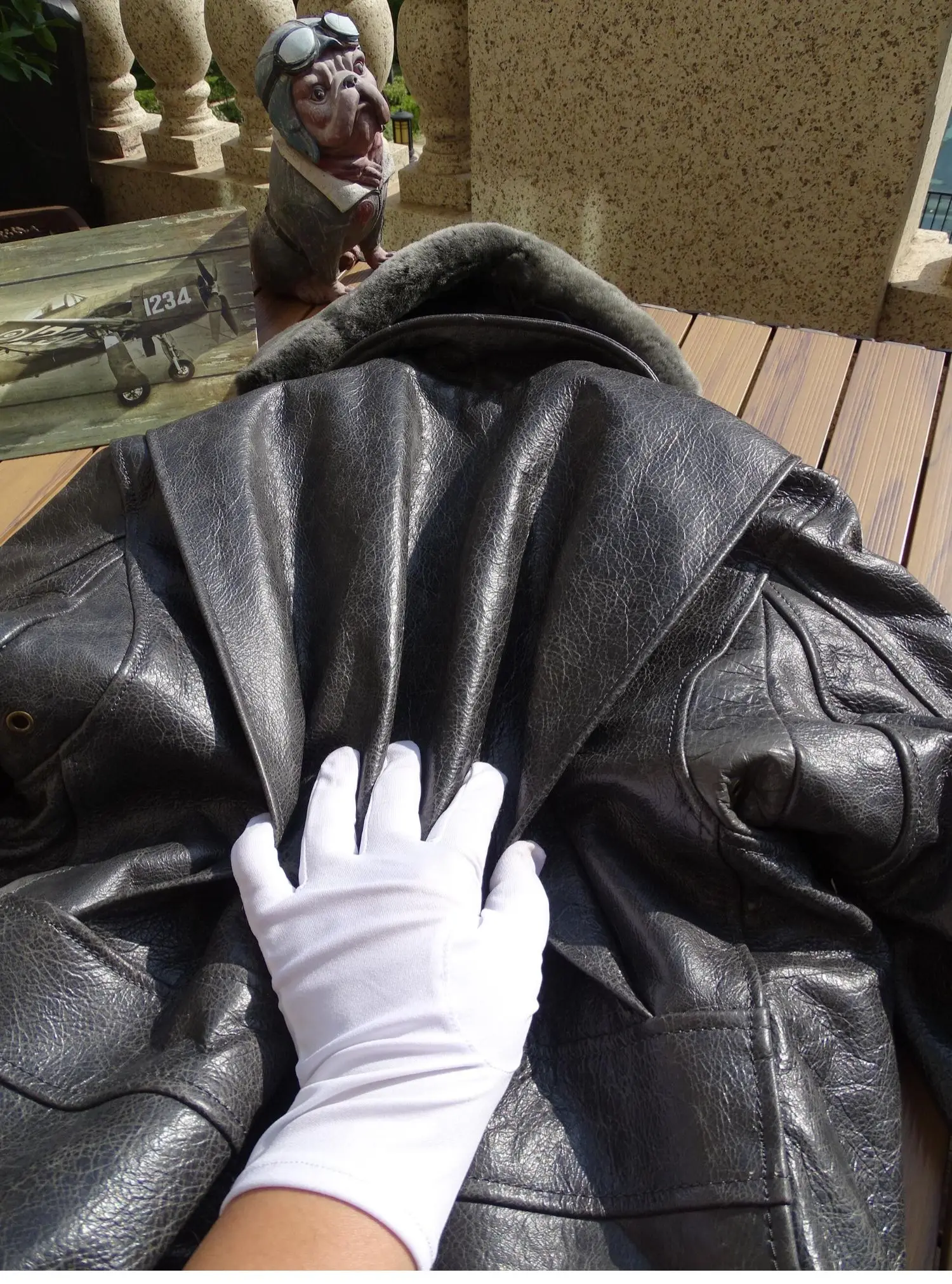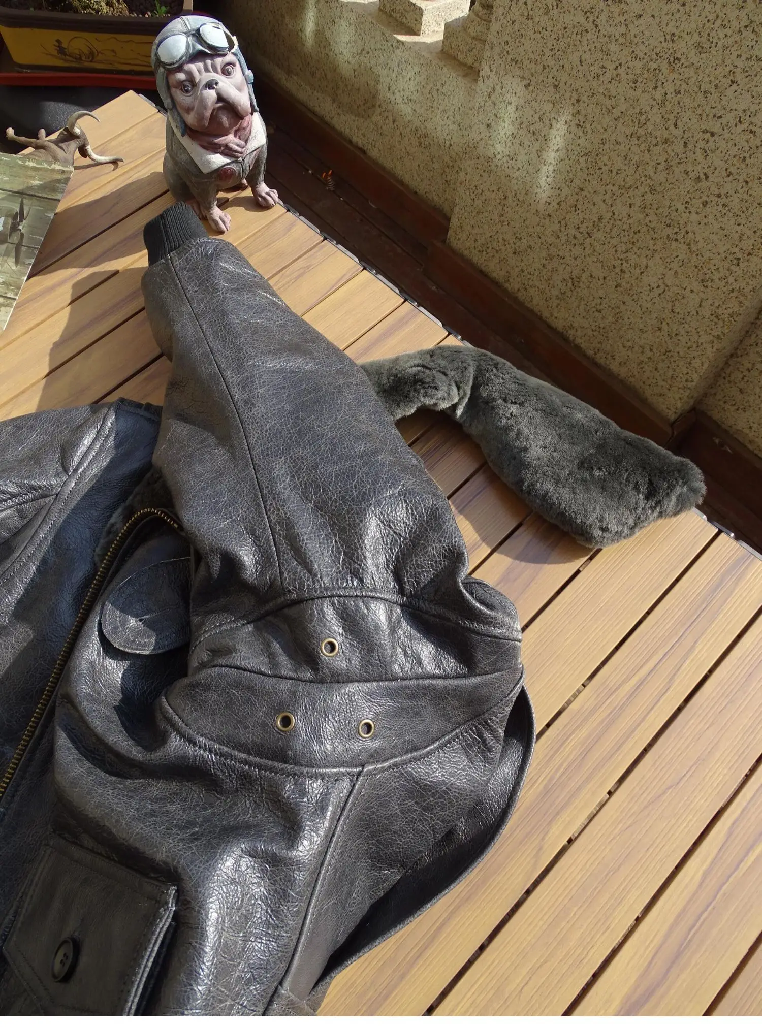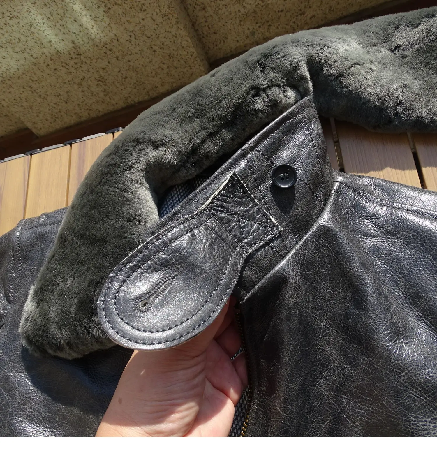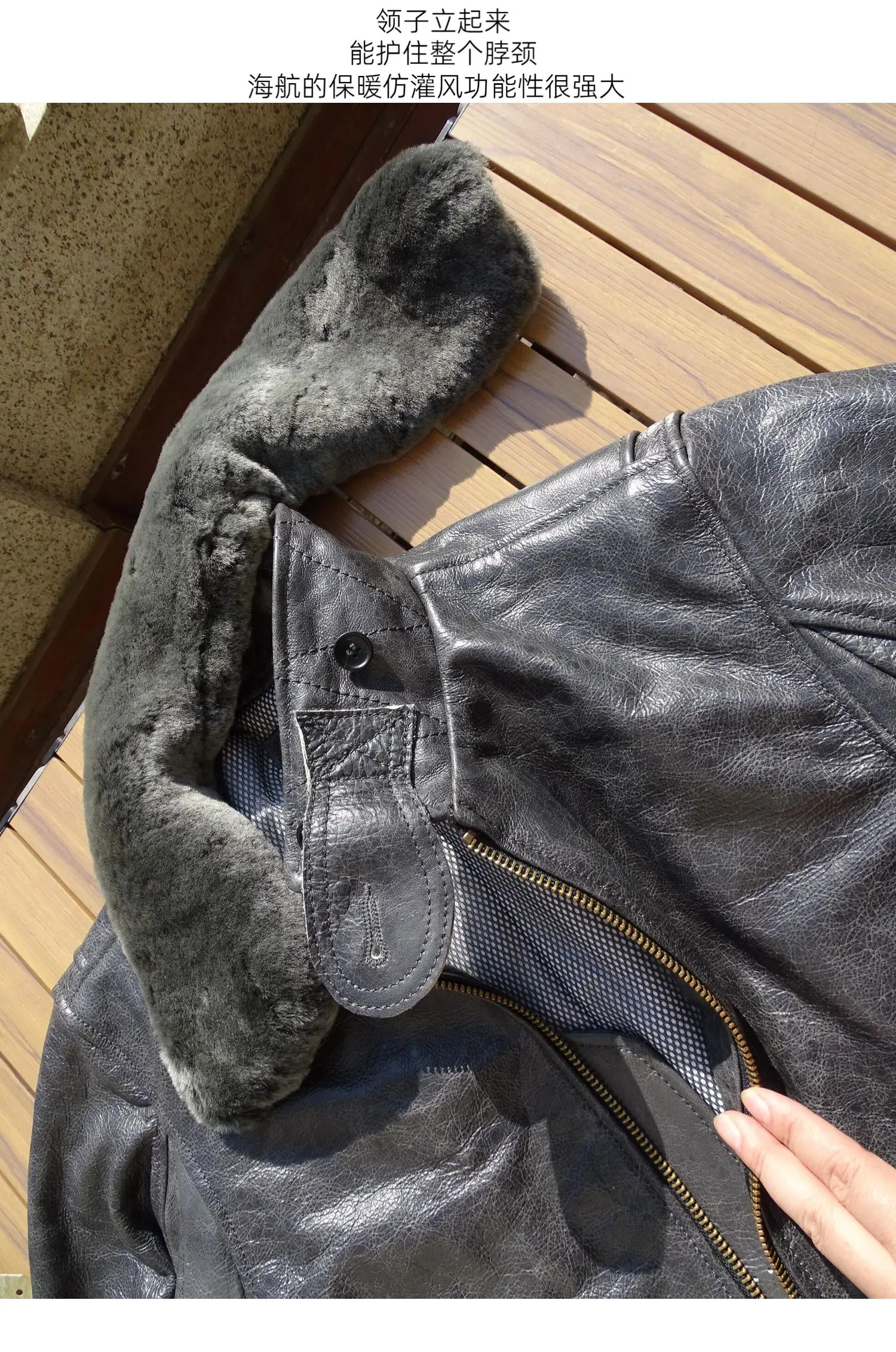 G1-style Shadow Navy Submarine Officer Baicha Xin Genuine Leather Jacket Detachable Wool Collar Cotton-Padded Warm Coat for Men