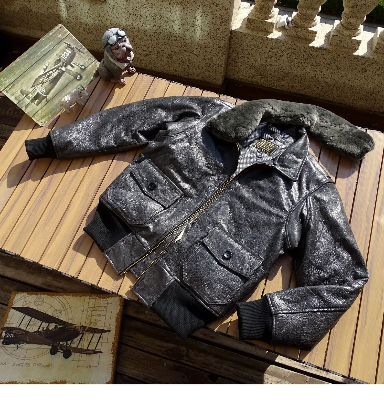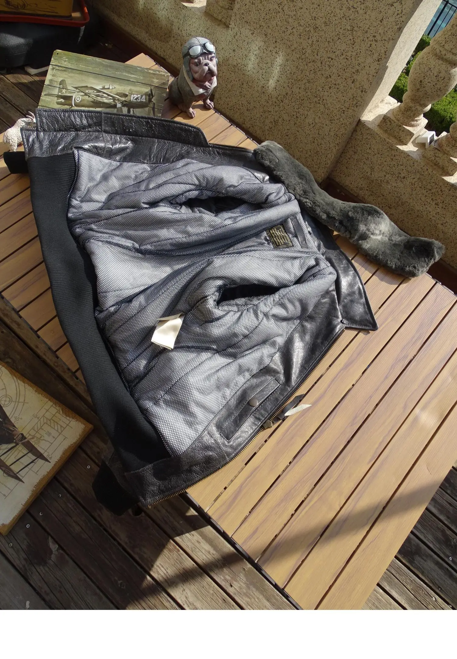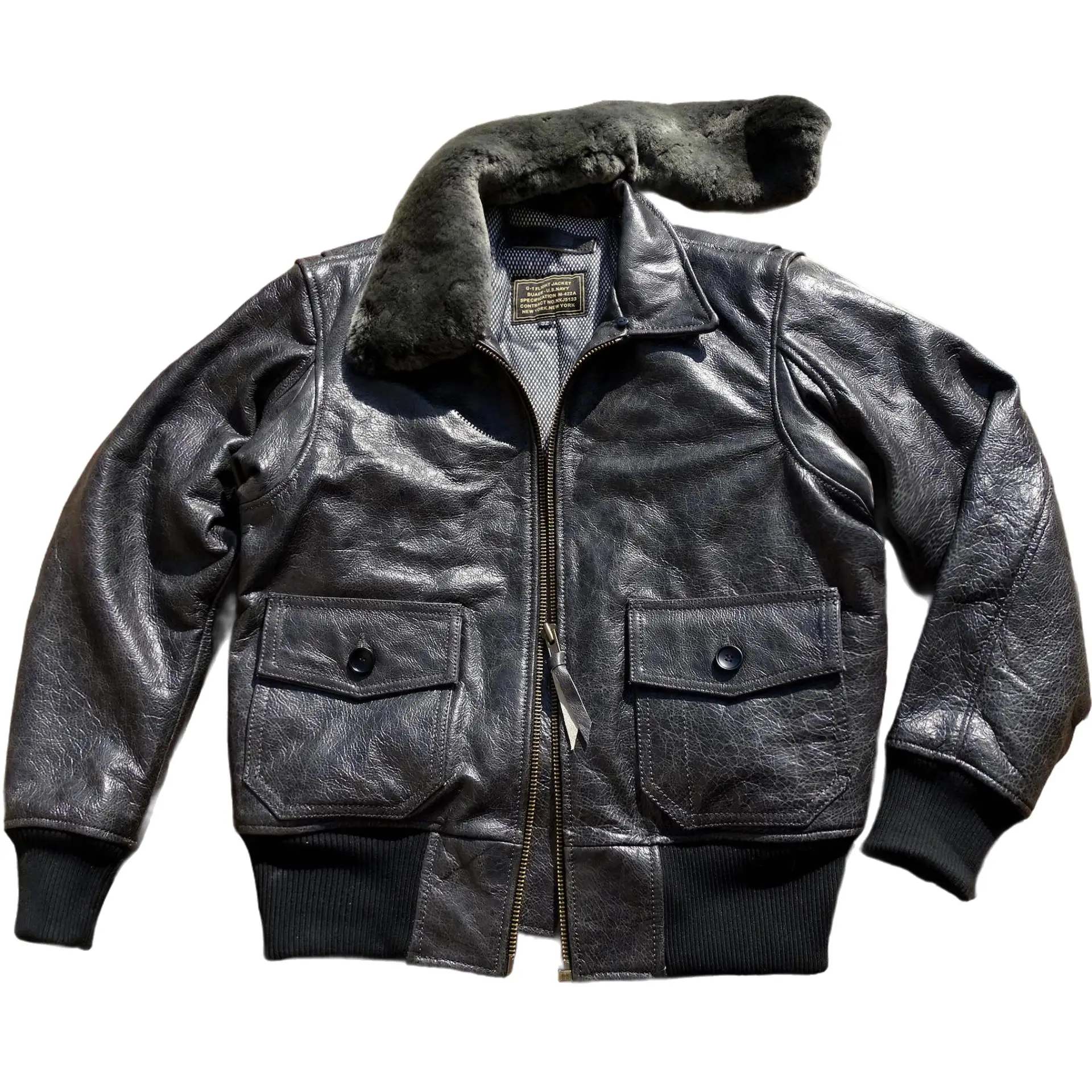 G1-style Shadow Navy Submarine Officer Baicha Xin Genuine Leather Jacket Detachable Wool Collar Cotton-Padded Warm Coat for Men
