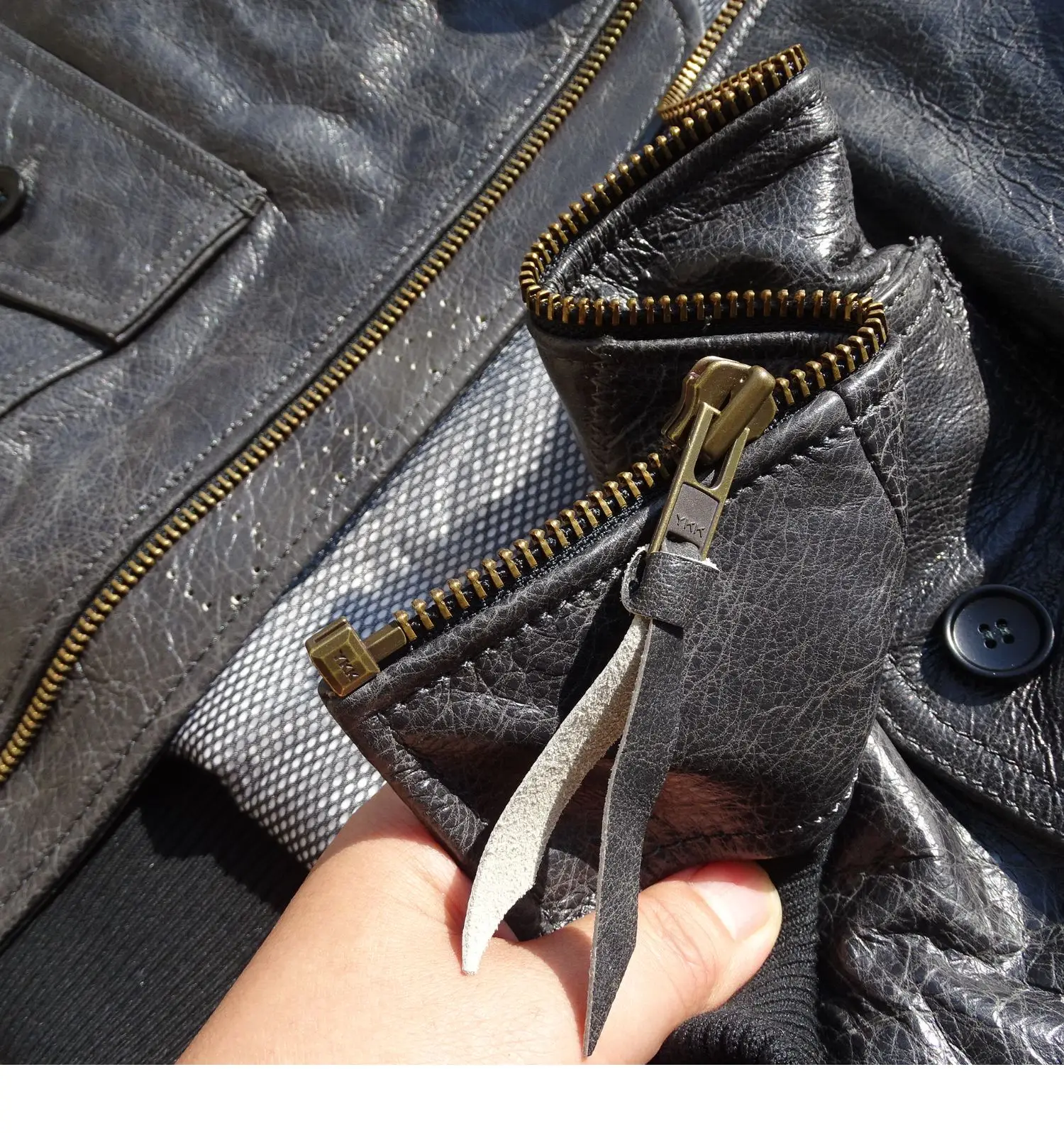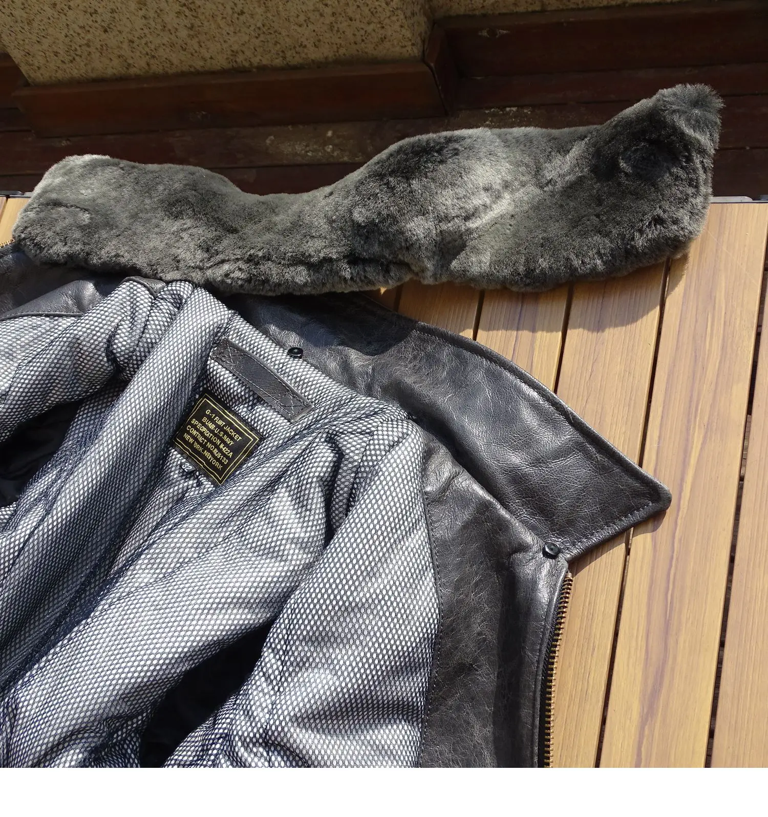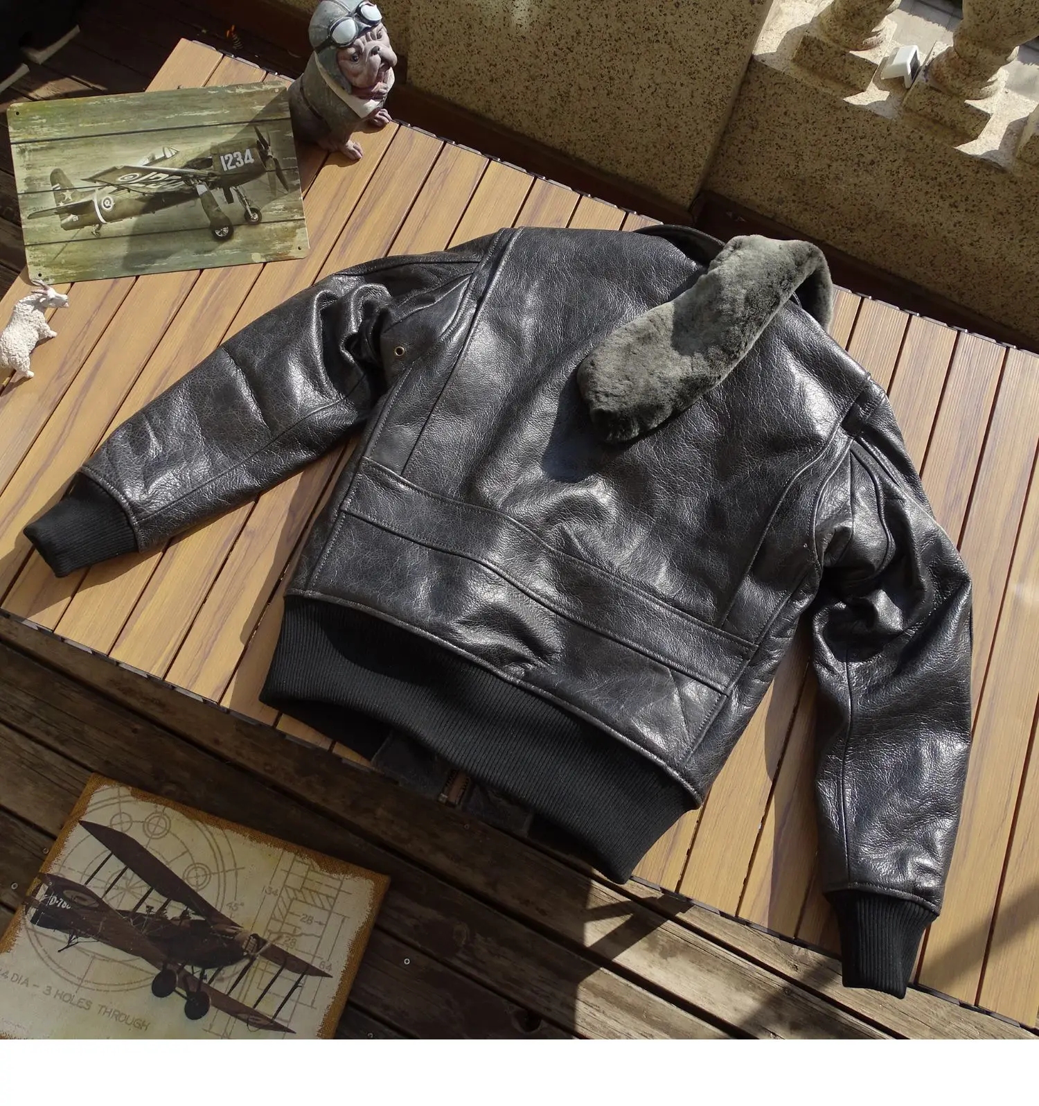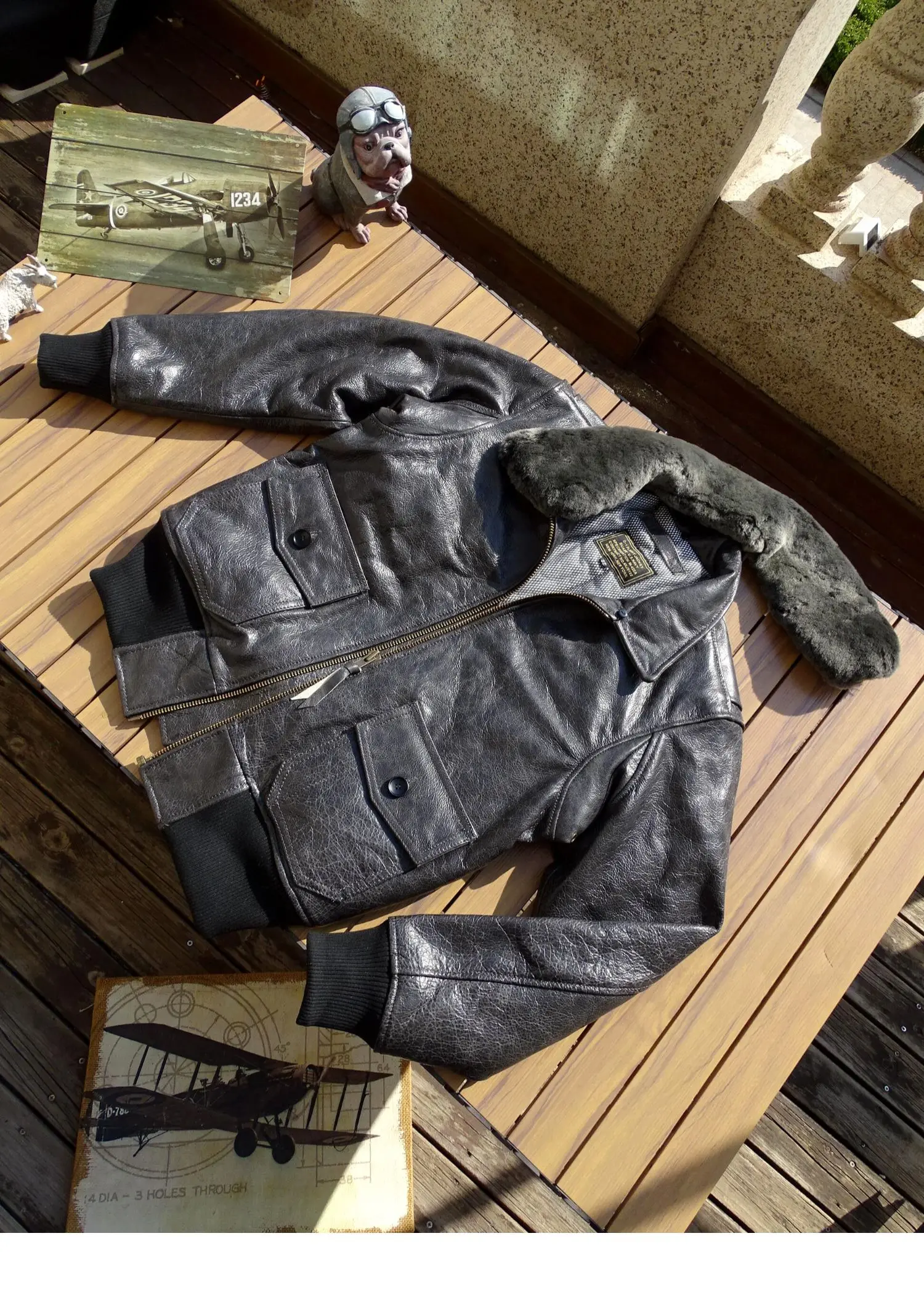 G1-style Shadow Navy Submarine Officer Baicha Xin Genuine Leather Jacket Detachable Wool Collar Cotton-Padded Warm Coat for Men