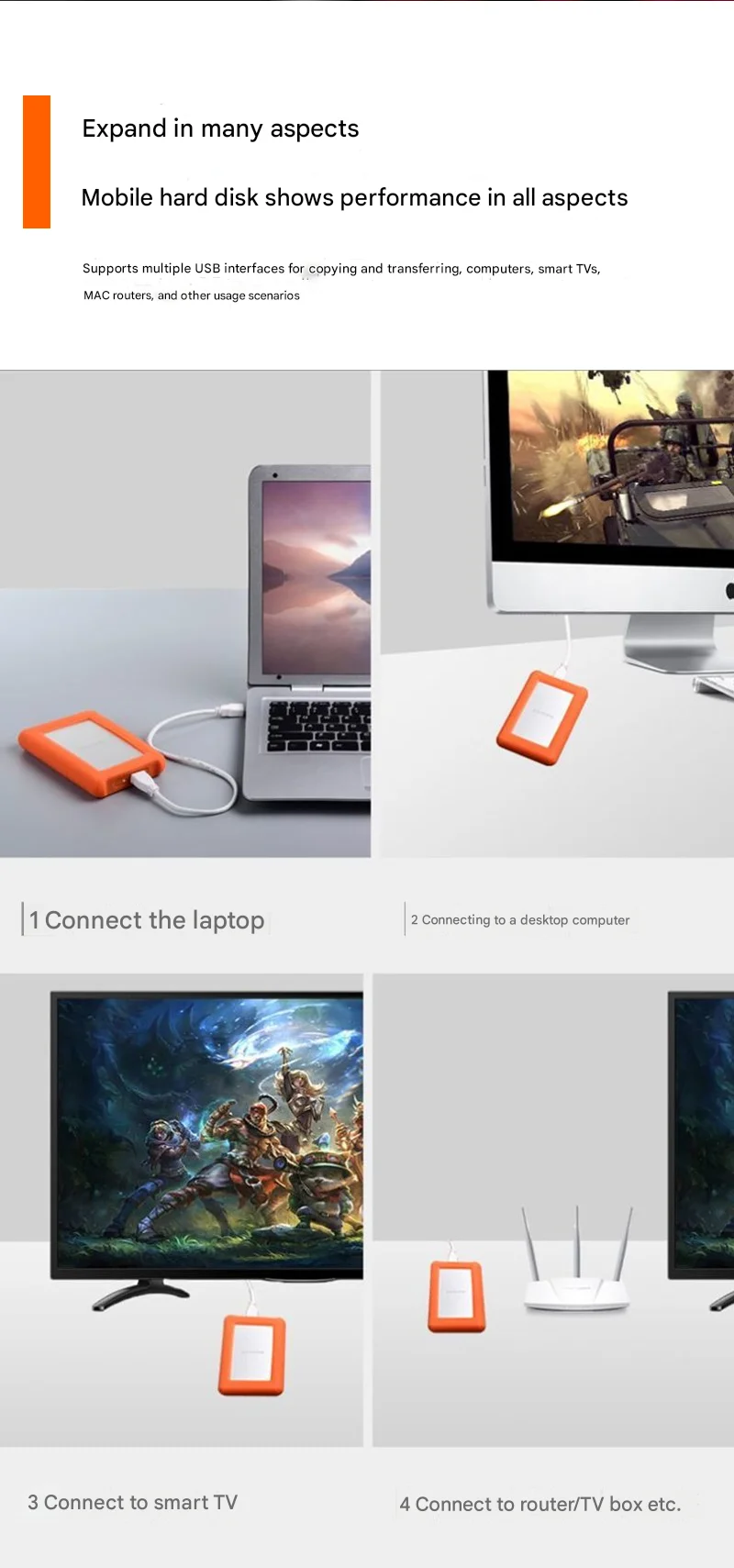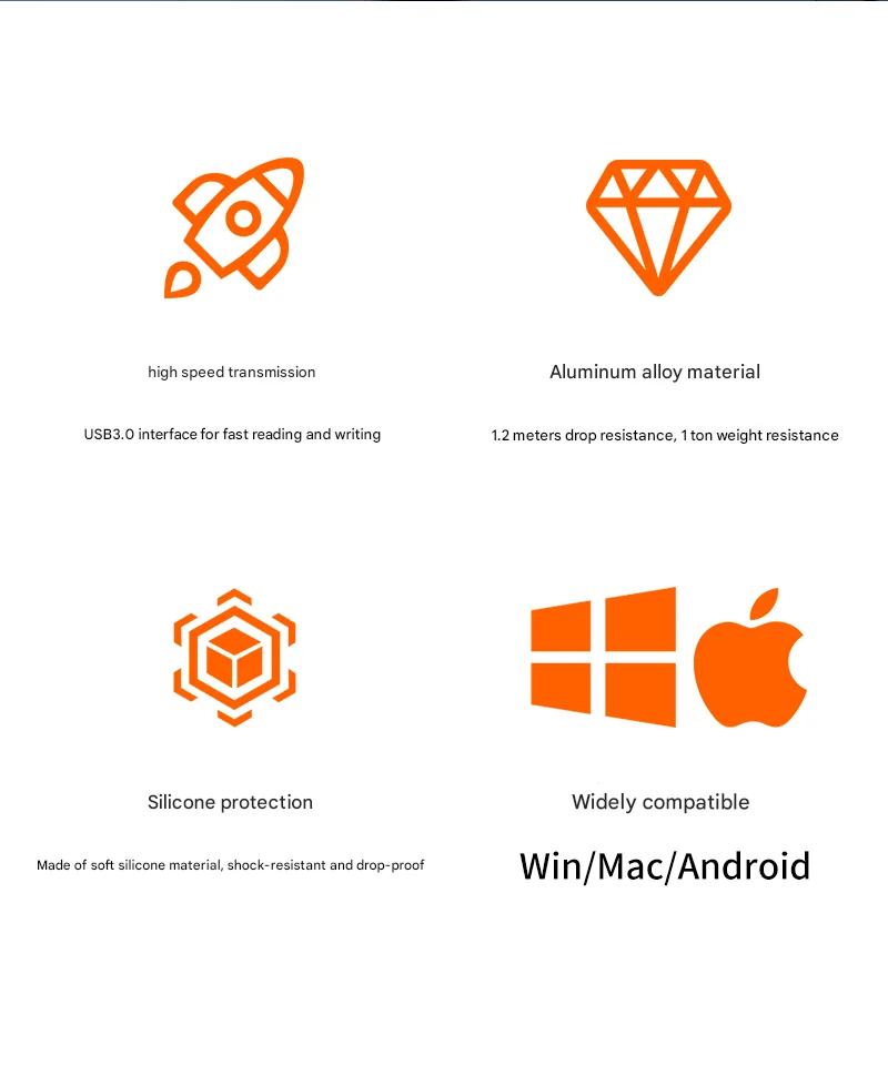 Be the first to review “High Capacity 1TB/2TB Portable Hard Drive USB 3.0 Fast Transfer, Metal External HDD Shockproof w/Silicone Case for PC Mac” Cancel reply