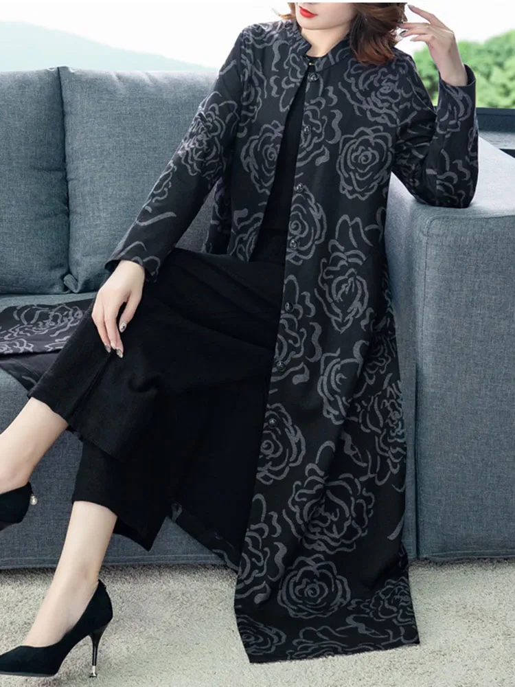 High end Windbreaker Women New 2025 Spring Autumn Long Trench Coat Fashion Slim Single-breasted print Coat Women’s Overcoat