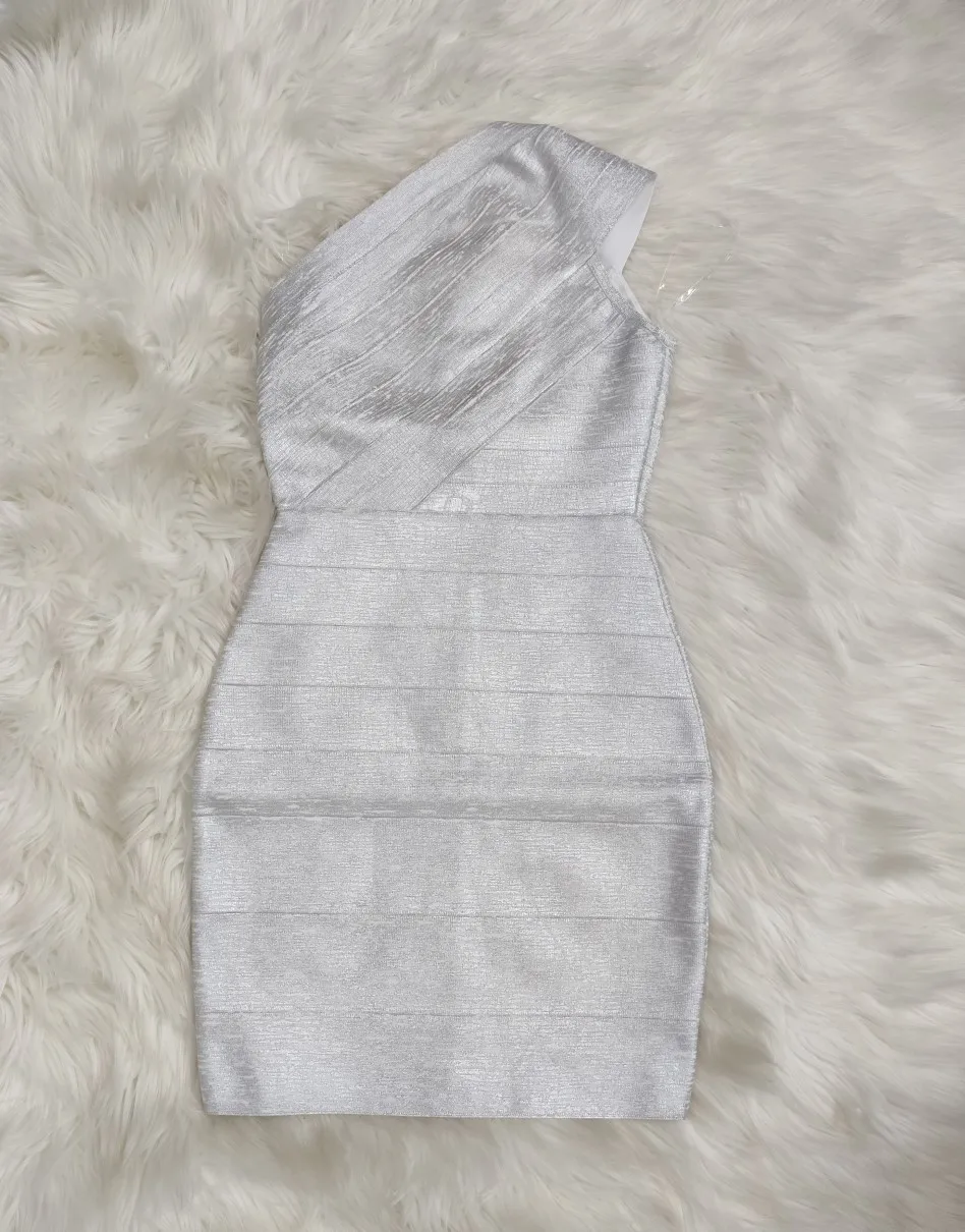 High Quality Foil Gold Silver Women One Shoulder Sexy Bodycon Mini Dress Rayon Bandage Fashion Evening Party Outfit Vestido