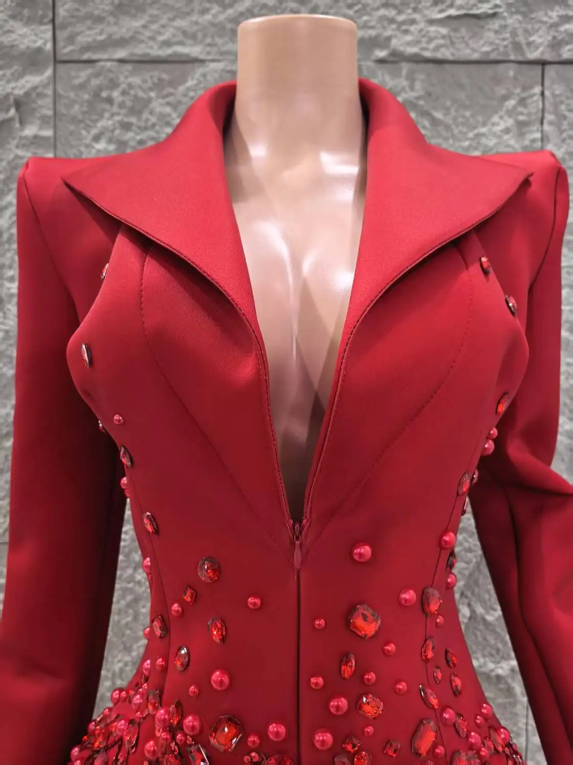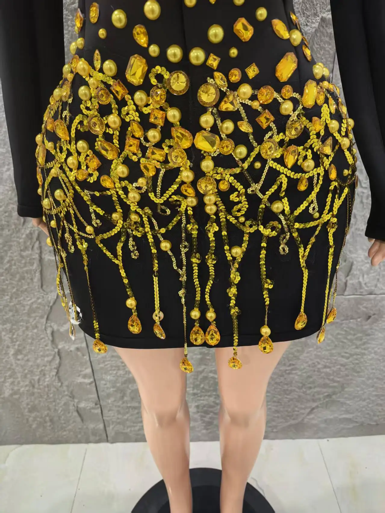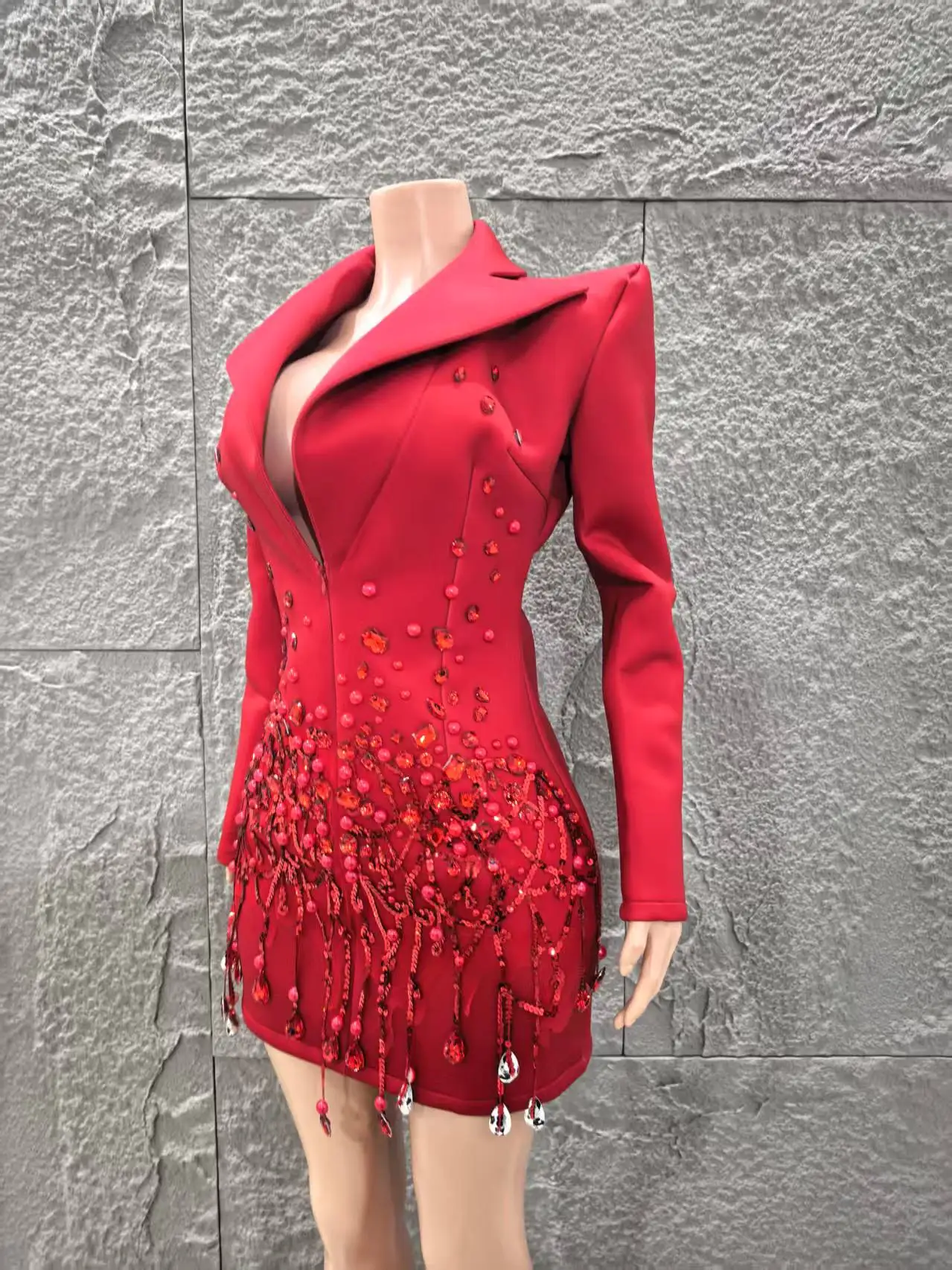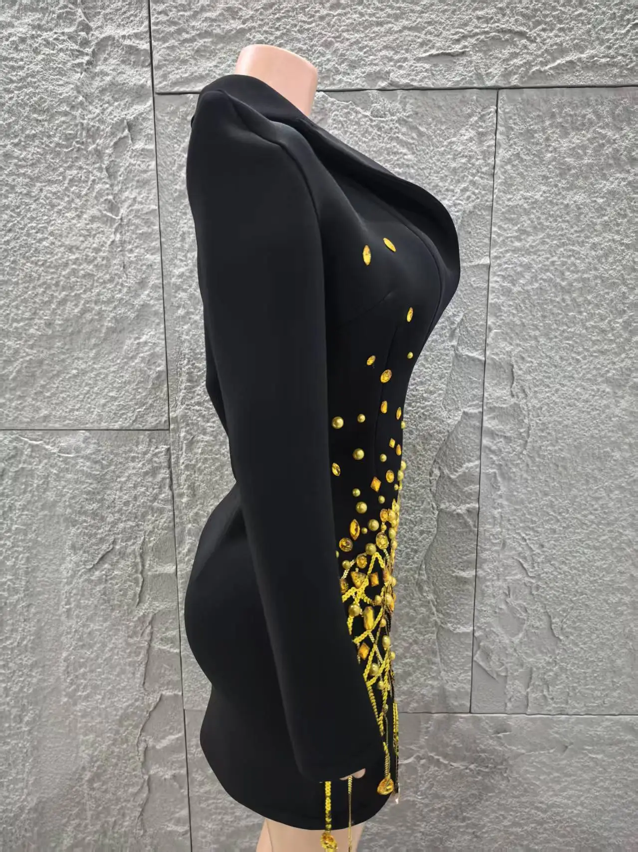 High Quality Women Long Sleeve Sexy Deep V-Neck Bodycon Blazer Dress Shinning Sequins Celebrate Nightclub Bar Singer Stage Wear