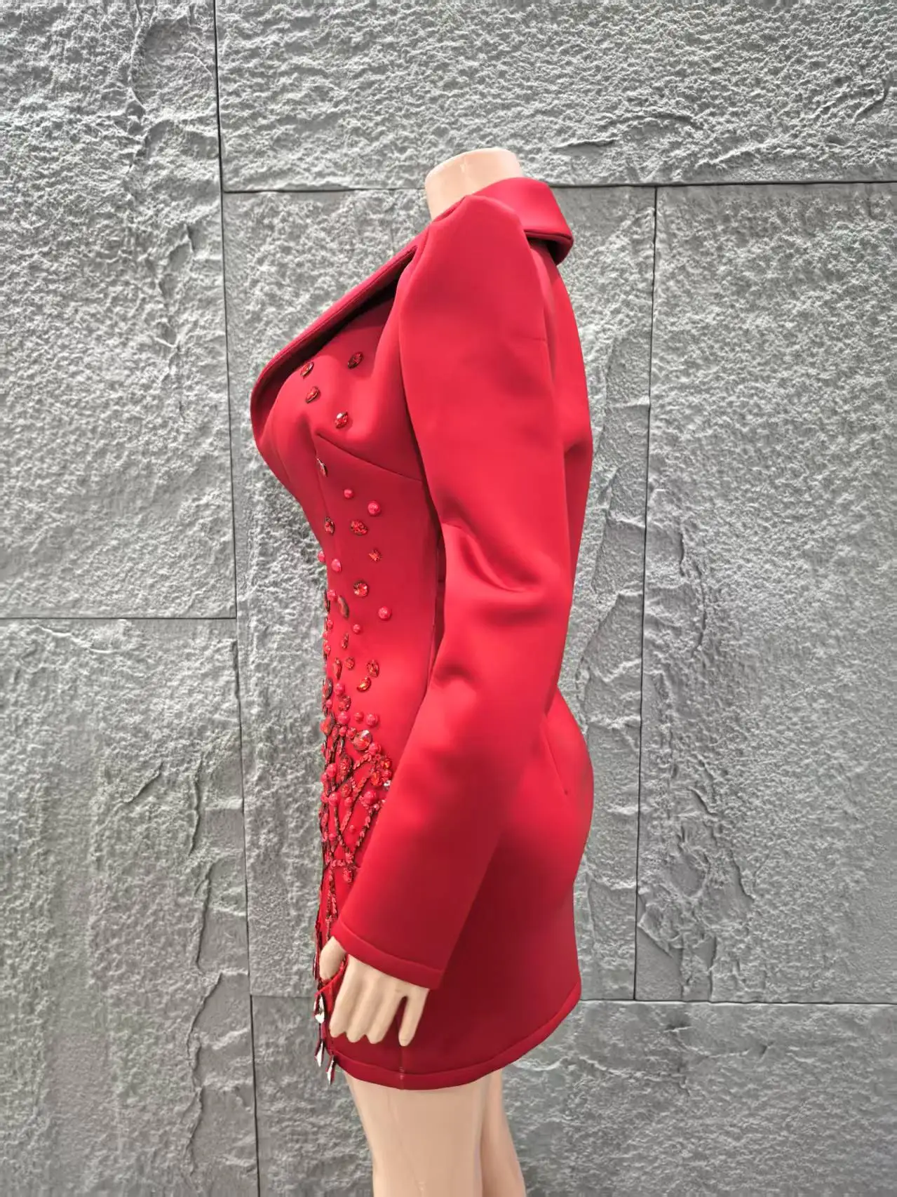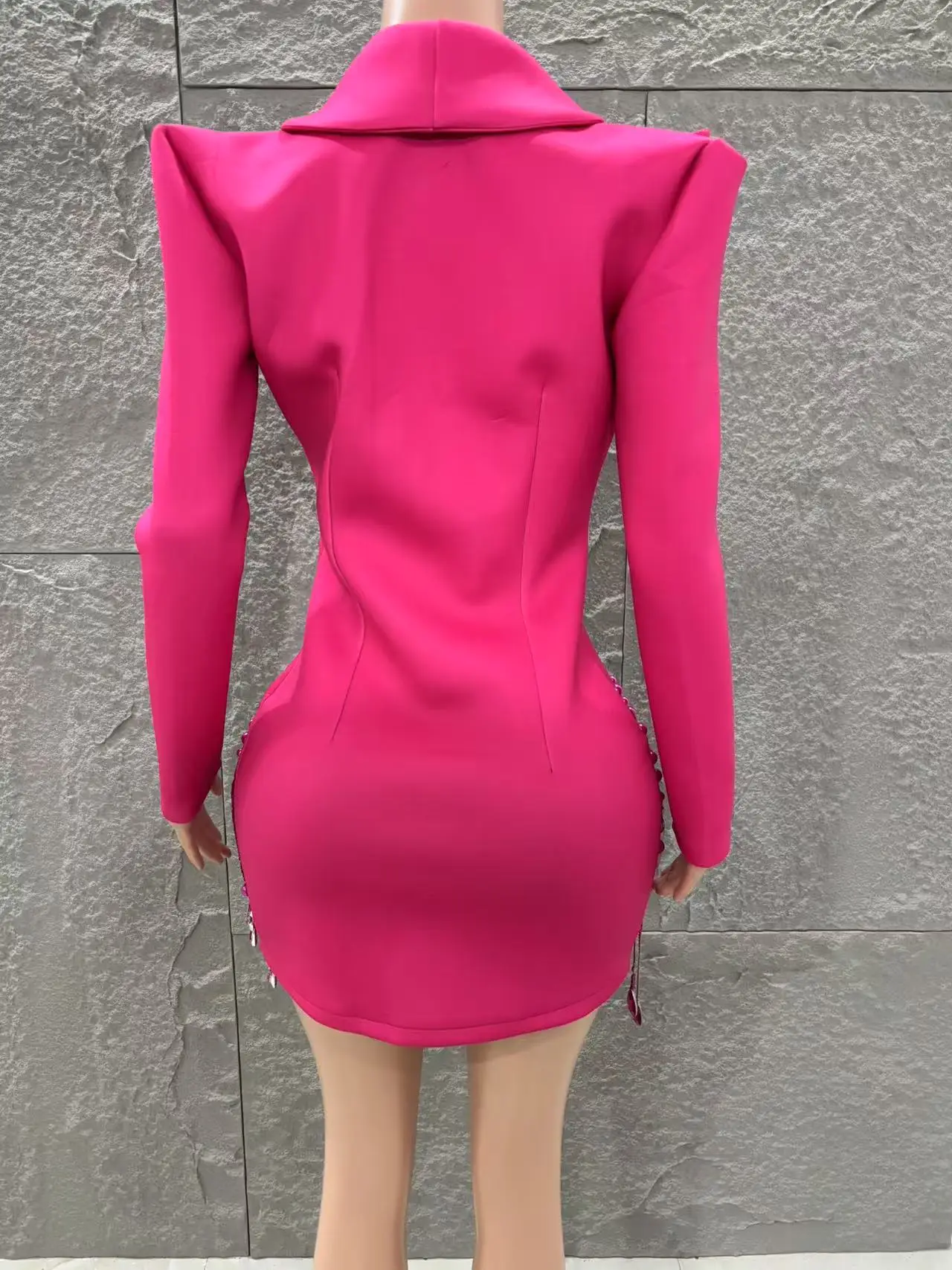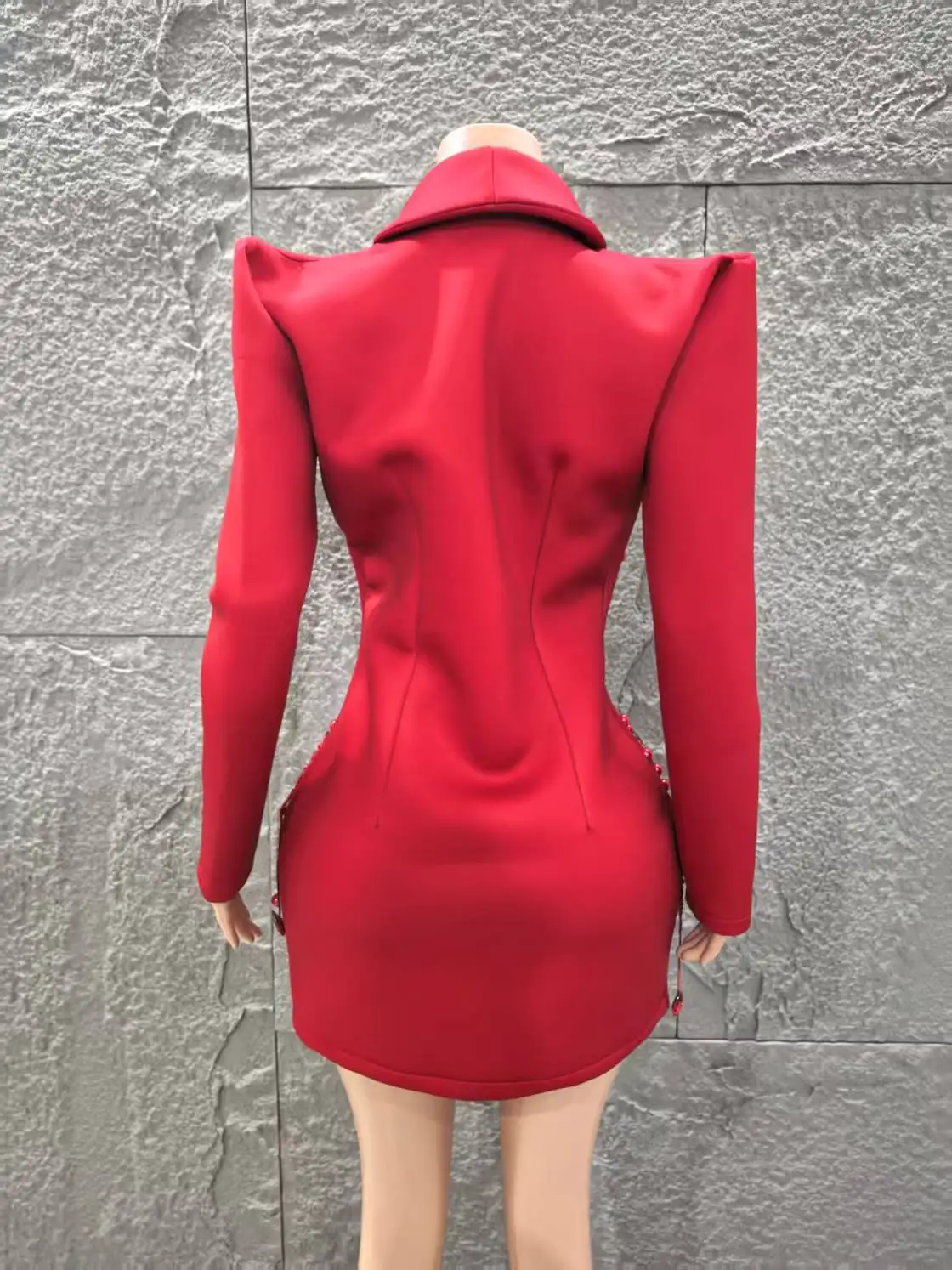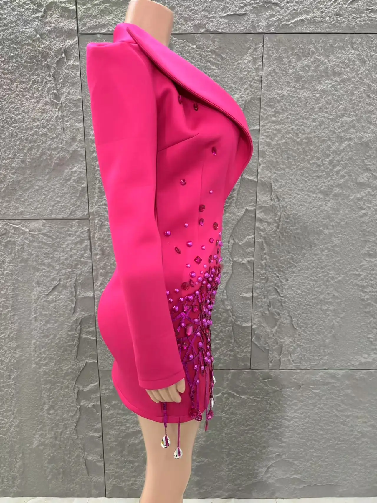 High Quality Women Long Sleeve Sexy Deep V-Neck Bodycon Blazer Dress Shinning Sequins Celebrate Nightclub Bar Singer Stage Wear