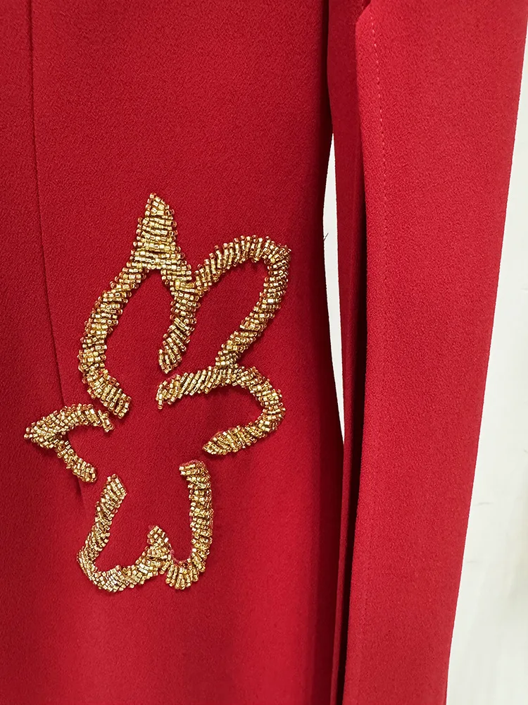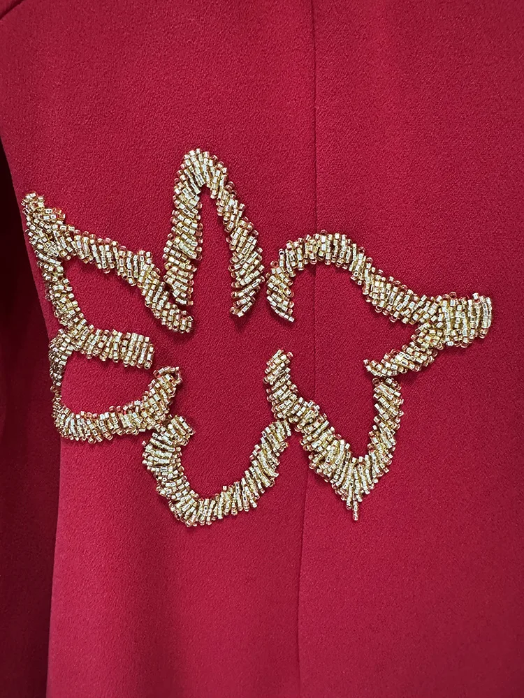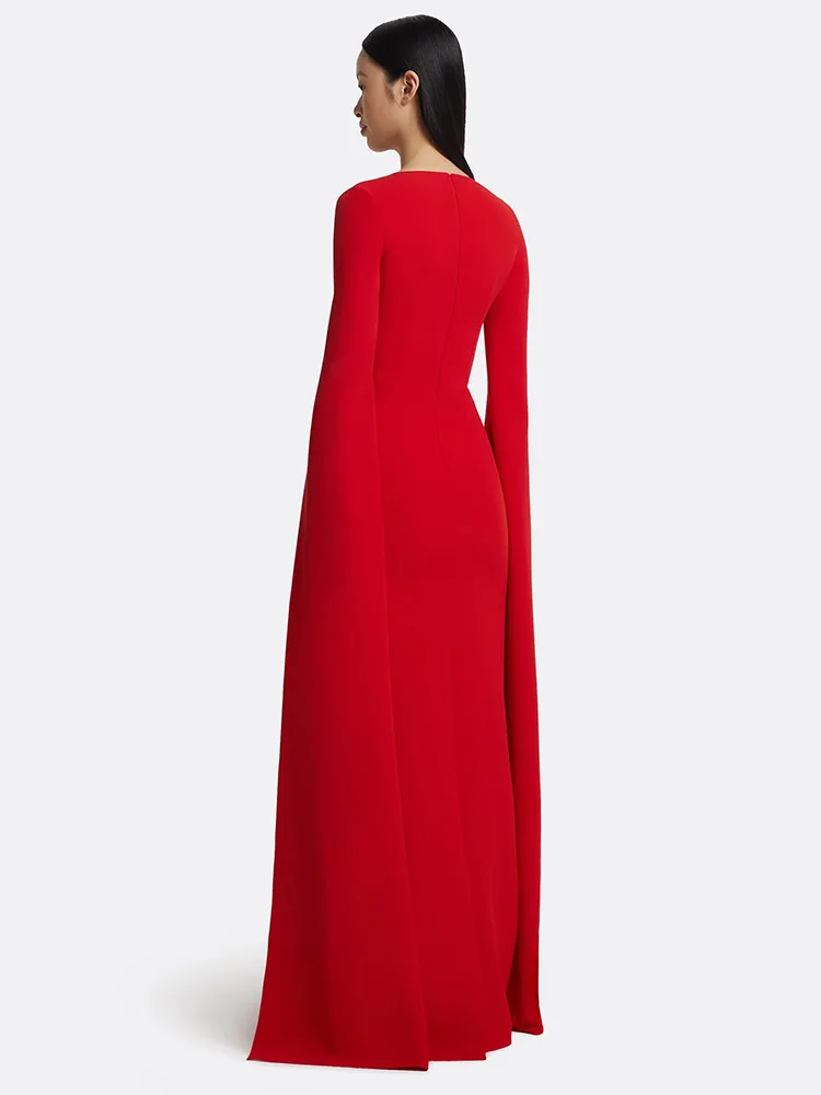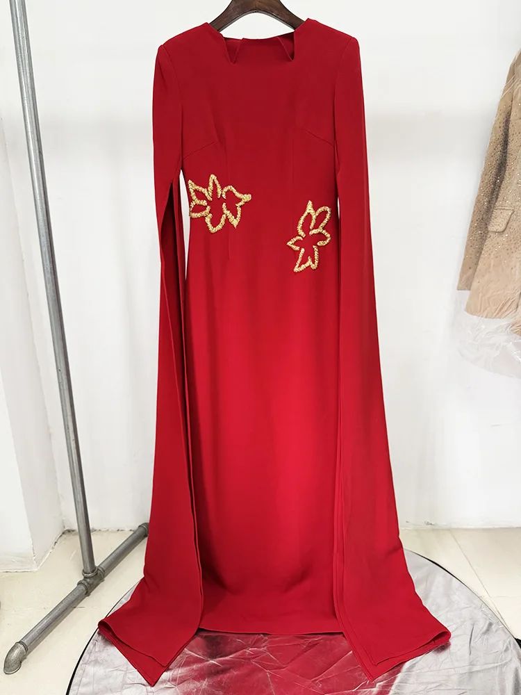 HIGH STREET Newest 2025 Designer Vestido Women’s Diamonds Beaded Cape Sleeve Floor Length Maxi Long Dress