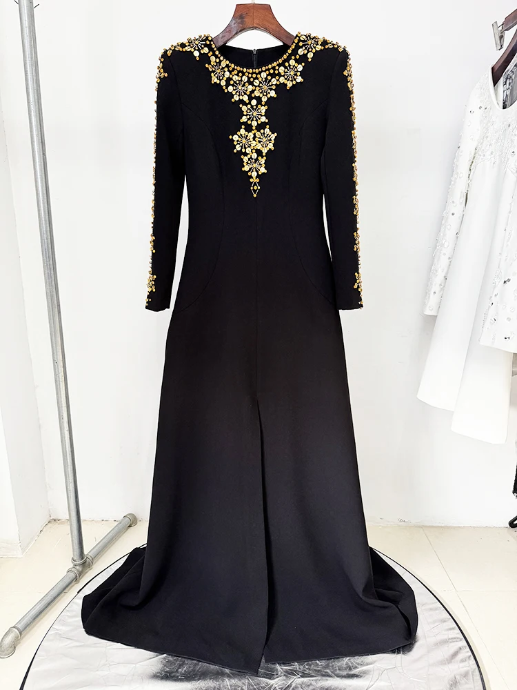 HIGH STREET Newest Fashion 2025 Designer Party Vestido Women’s Rhinestone Diamonds Beaded Split Long Maxi Dress