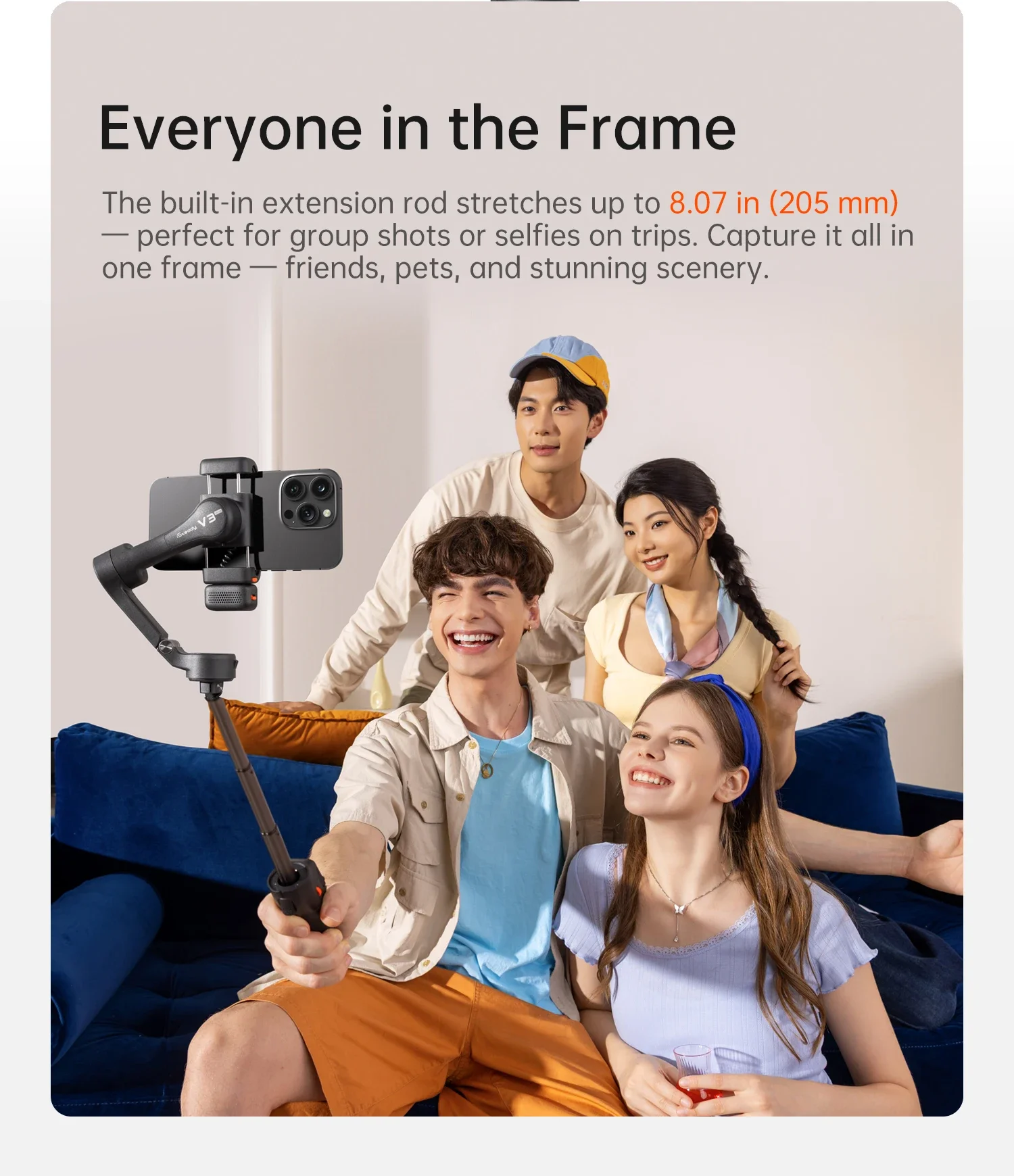 Hohem iSteady V3 Ultra Smartphone Stabilizer AI-Tracking 3-Axis Phone Gimbal Built-in Selfie Stick Portable For iPhone/Android