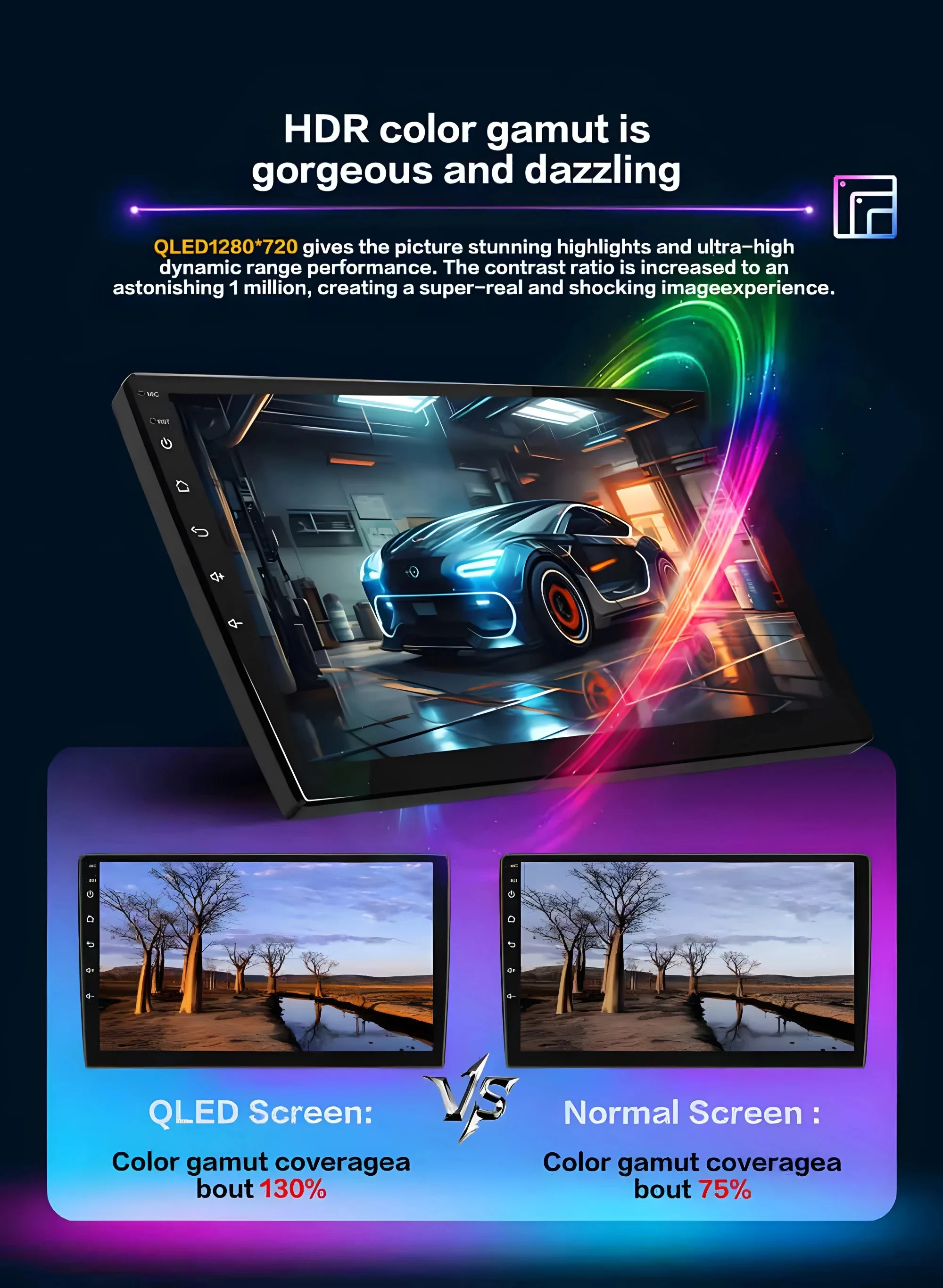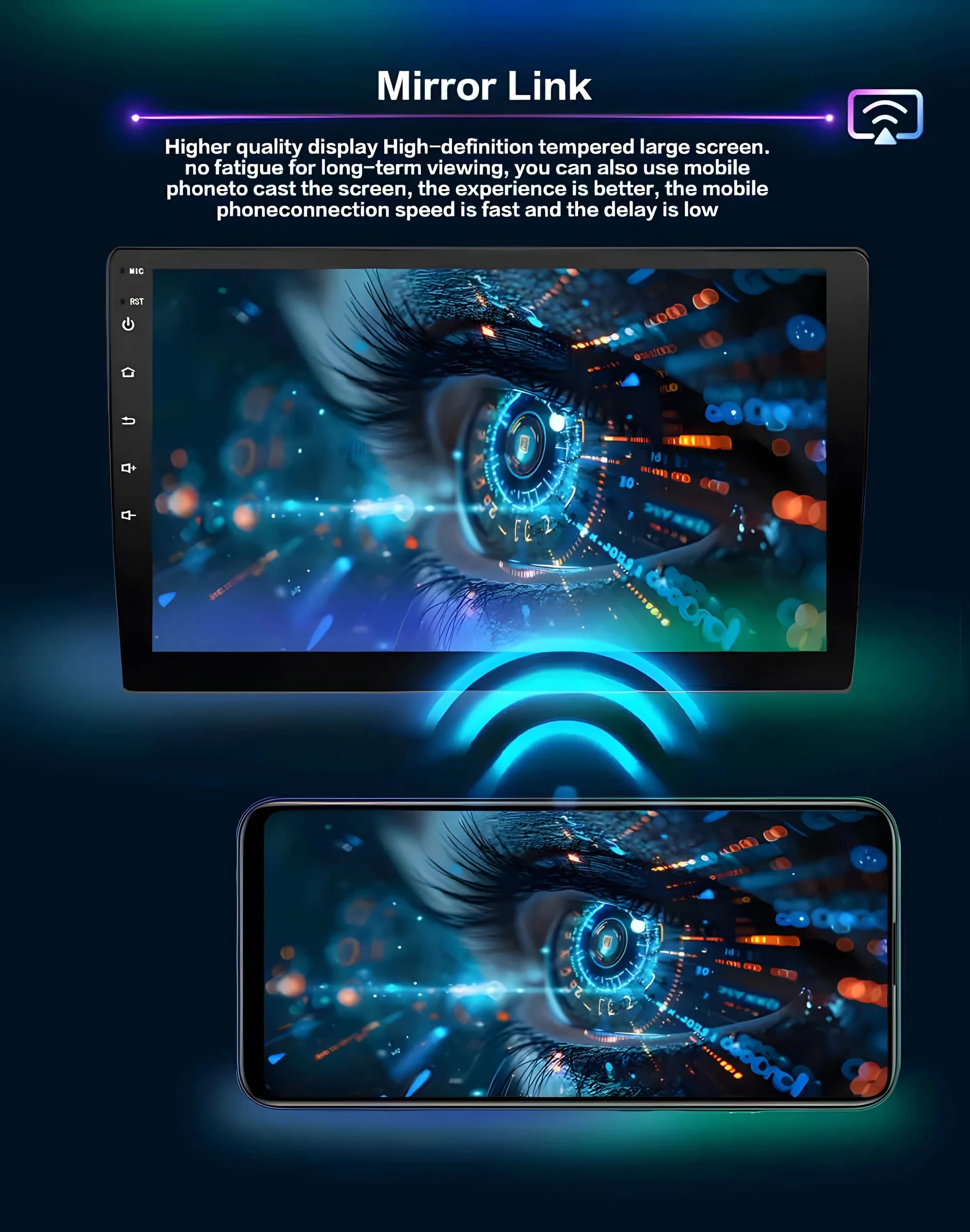 With powerful Android 16 system,2G RAM ensures that the android 15 car stereo runs smoothly. 64G ROM allows you to download and install multiple apps that you like through the Store, like Youtube, Soptify, Pandora,etc., you can enjoy a smooth and responsive user experience. Android Radio 10.1 inch IPS display provides you true-to-life color, With its responsive touch-button design, you can enjoy a precise fingertip control experience.