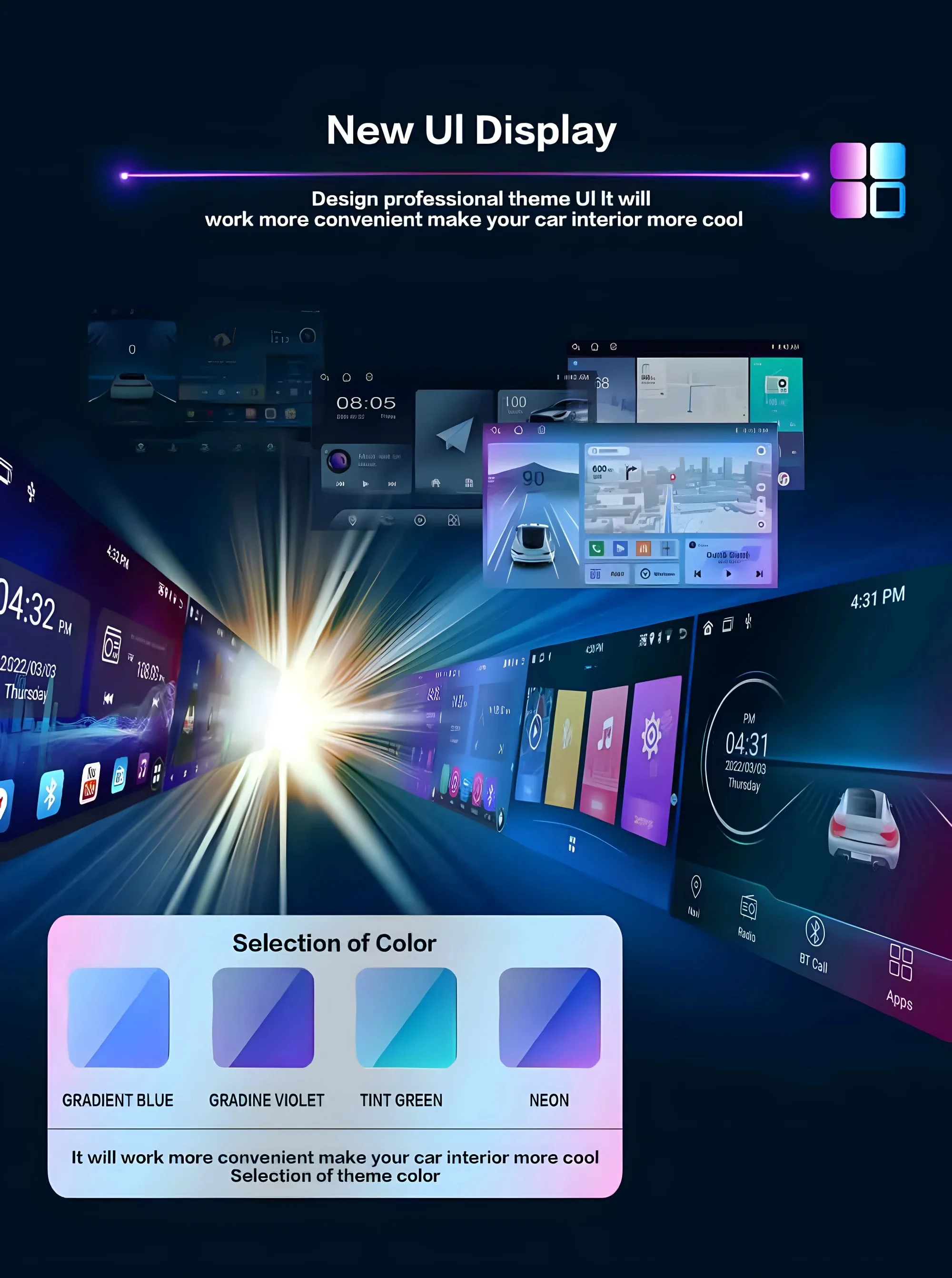 Works with both wireless and USB connection modes. iPhone users can activate Siri for voice control of navigation, calls and music playback. Android users can query real-time traffic and sync apps via Google Assistant. The interface automatically adapts to driving scenarios, reducing