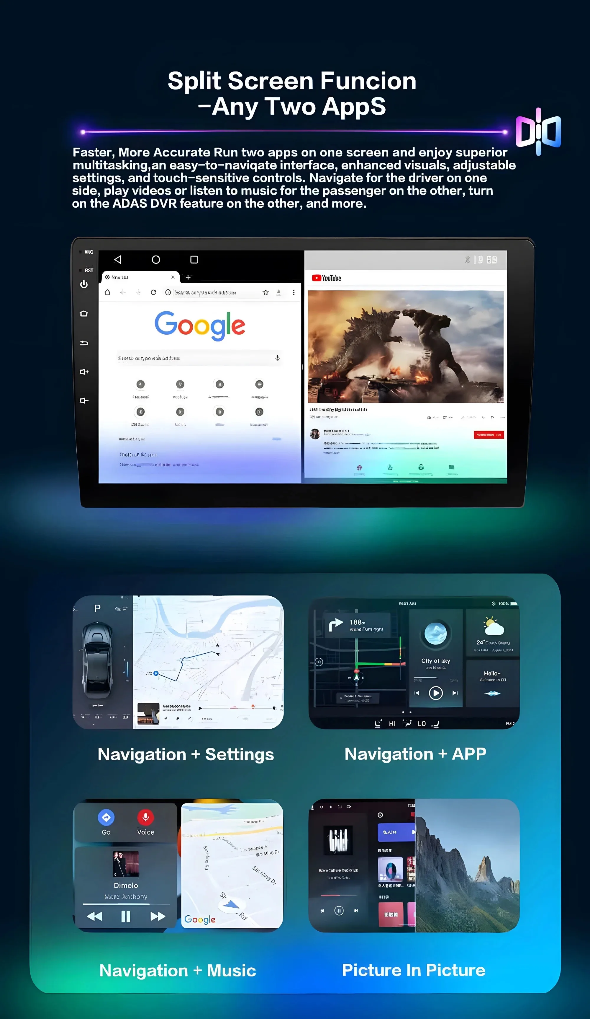 Equipped with a high-performance 8-core processor, it delivers ultra-fast running speed and smooth multi-tasking. No lag when switching between navigation, music, DVR and other functions, ensuring a responsive operation even in complex usage scenarios.