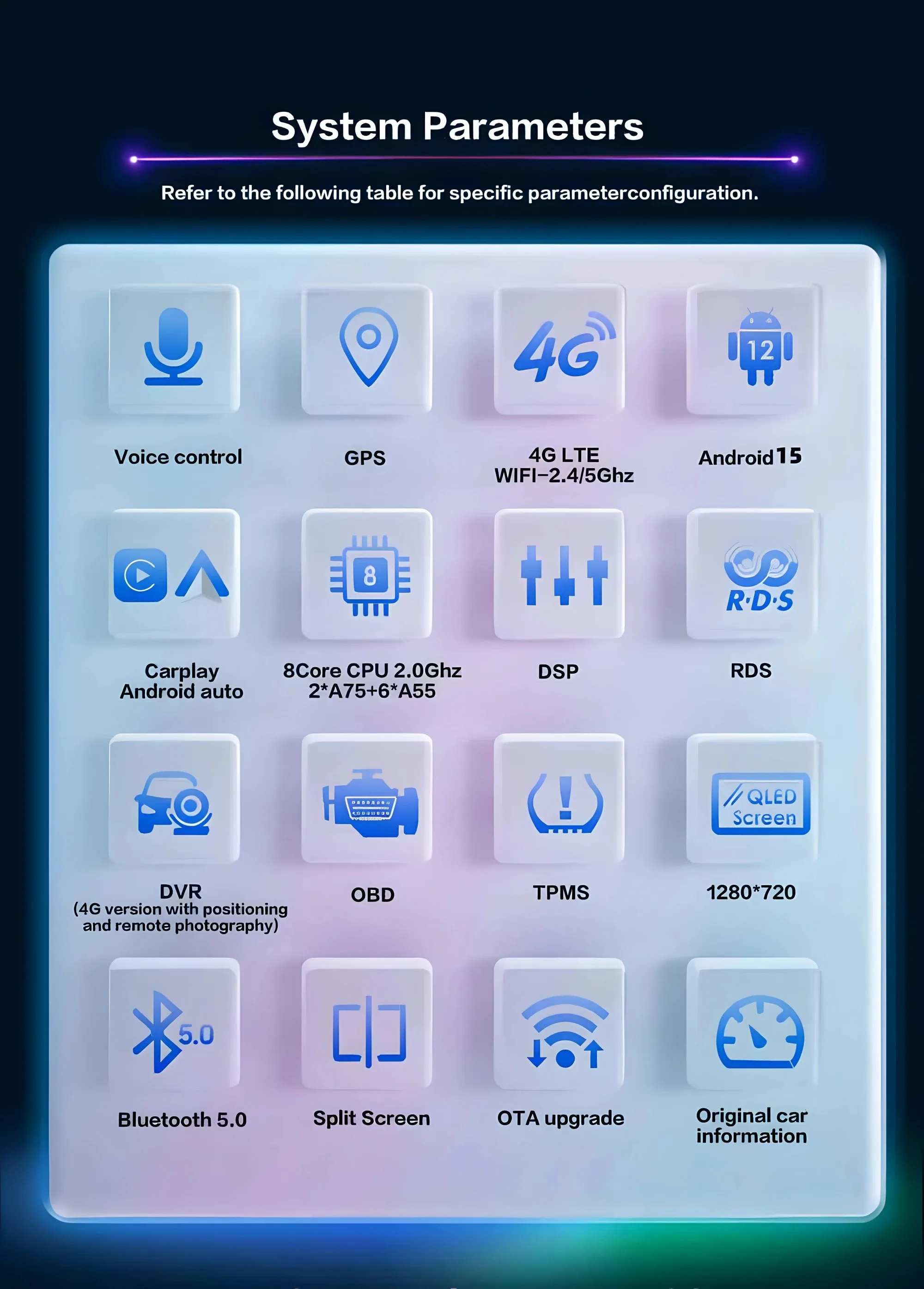 - Special Features: Built-In Speaker/Microphone,wifi function,Support 3G Network,Support 4G Network,Support Can-Bus,Built-in GPS,Mobile Phone,MP3 players,dsp,CarPlay,android auto,Reversing Input,Split Screen,Support steering wheel control