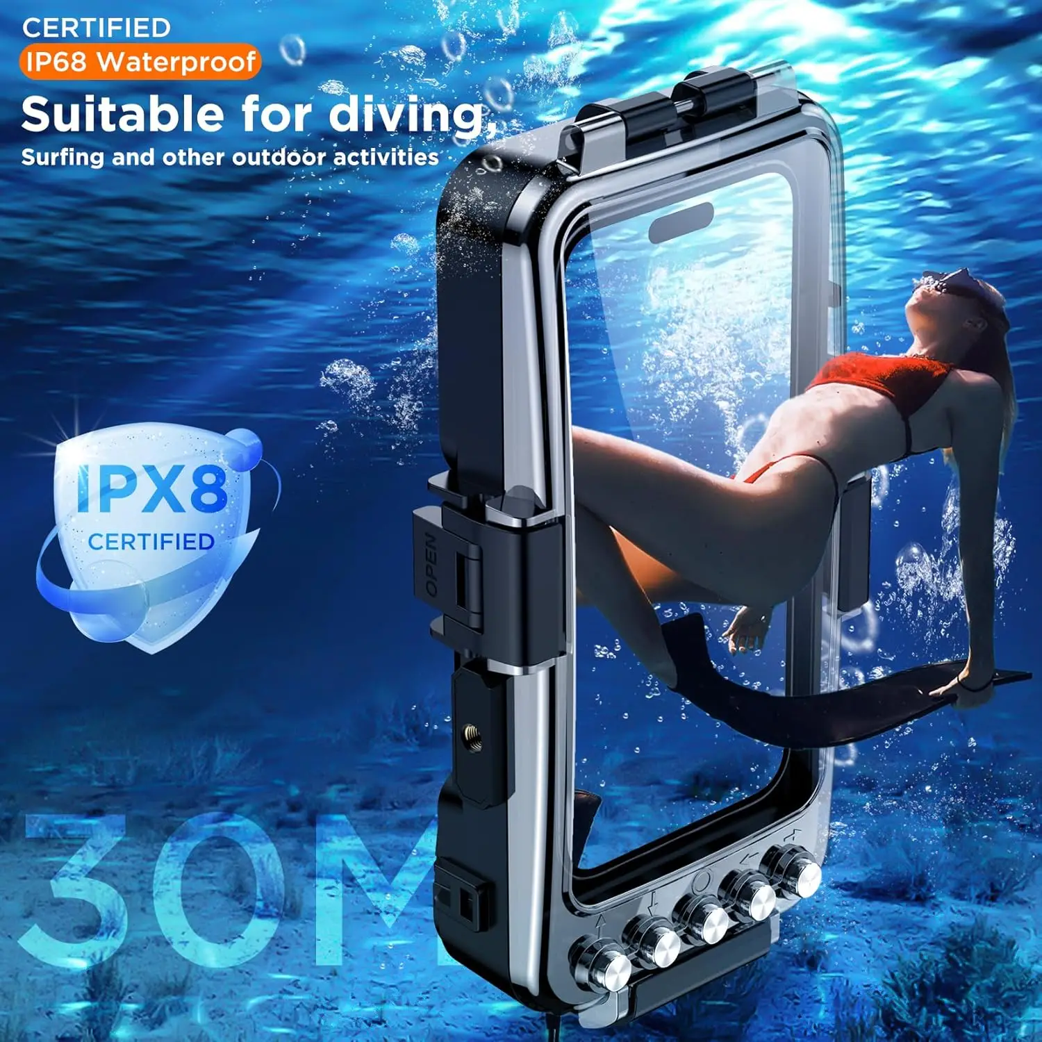 IPX8 30M Underwater Waterproof Case for iPhone 16 15 14 13 12 11 XS XR Samsung S24 Ultra S23 S22 Note20 10 Bluetooth Diving Case