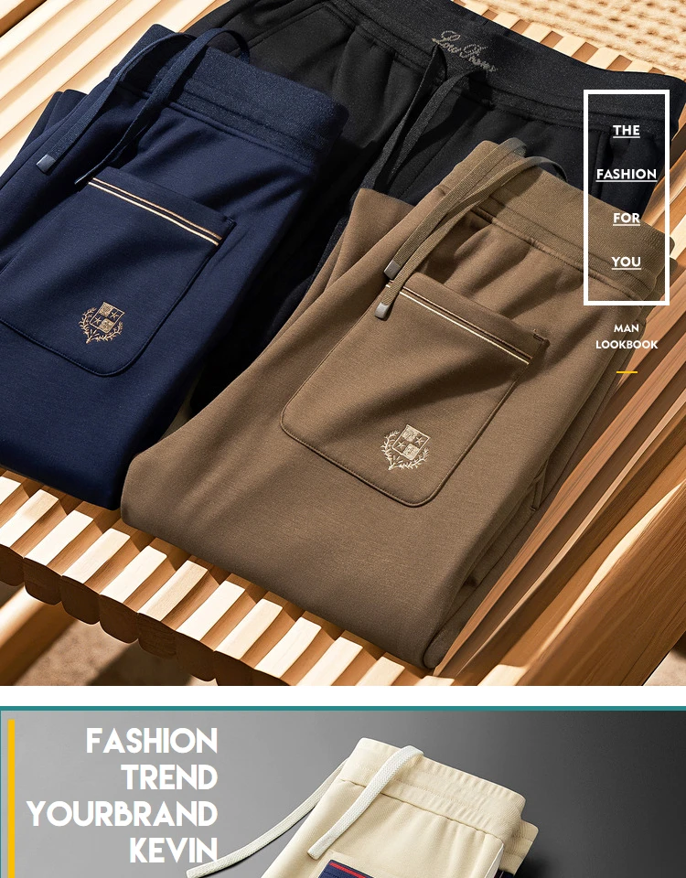 JSBD Autumn Italian old money style simple luxury stretch cotton men’s sport straight-leg sweatpants and casual pants