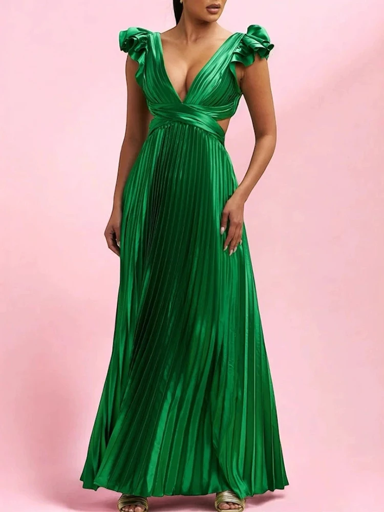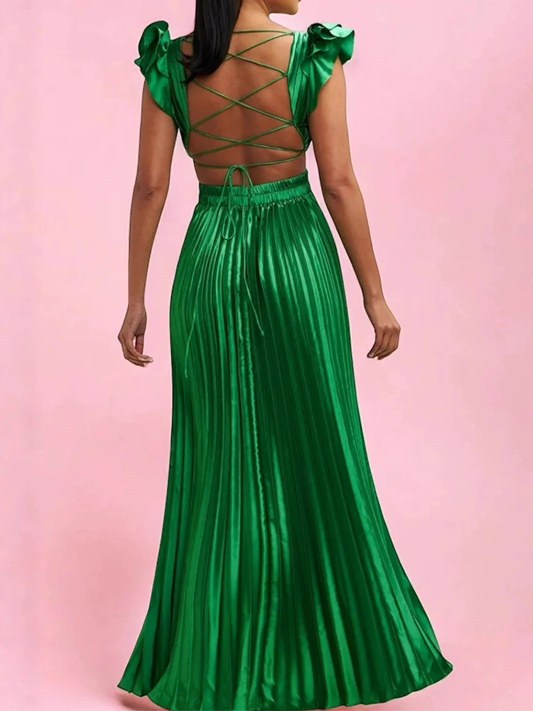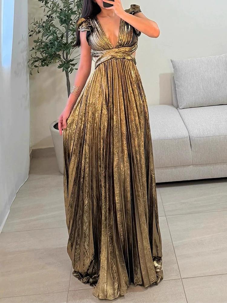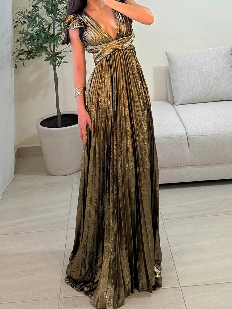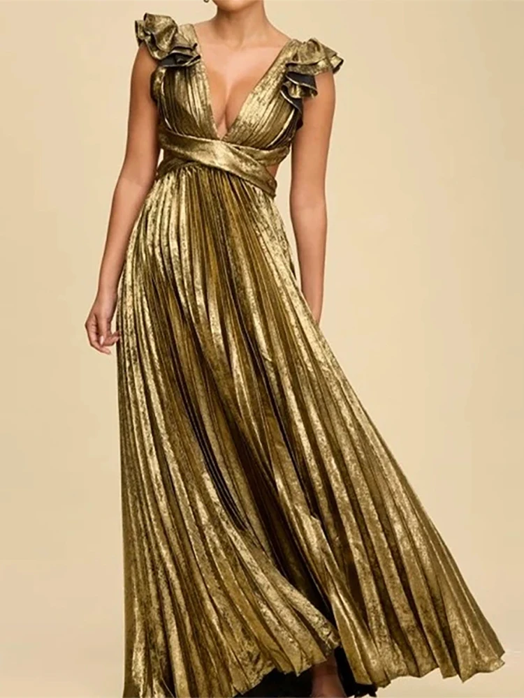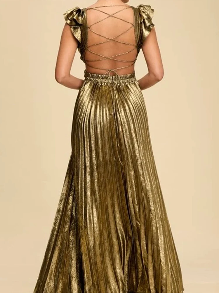 Lady Temperament Backless Bandage Dresses Fashion Bronzing Sleeveless Hollow Evening Dress Luxury Solid High Waist Banquet Dress