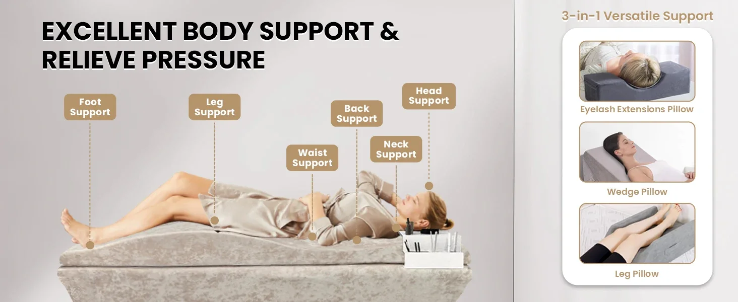 Lash Bed Foam Topper, Massage Table High-Density Foam Mattress Topper, Ergonomic Curved Lash Bed Cushion for Beauty Salon