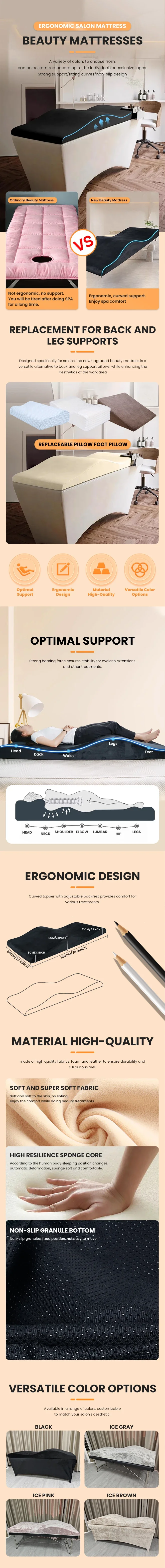 Lash Mattress and Cover Wave Memory Foam Lash Bed Beauty Salon Mattress Eyelash Foam Spa Beauty Bed Curved Topper