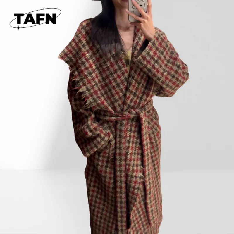 Loose Fit Breasted Coat for Women’s Casual Longline Trench Coat Women’s Outerwear with Adjustable Cuffs AK0512