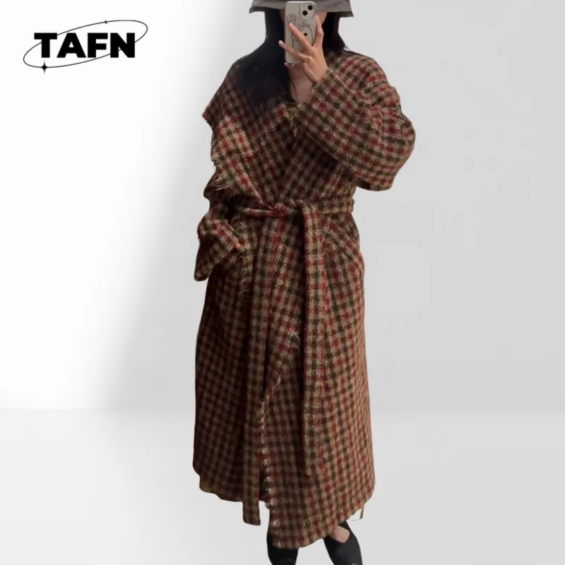 Loose Fit Breasted Coat for Women’s Casual Longline Trench Coat Women’s Outerwear with Adjustable Cuffs AK0512