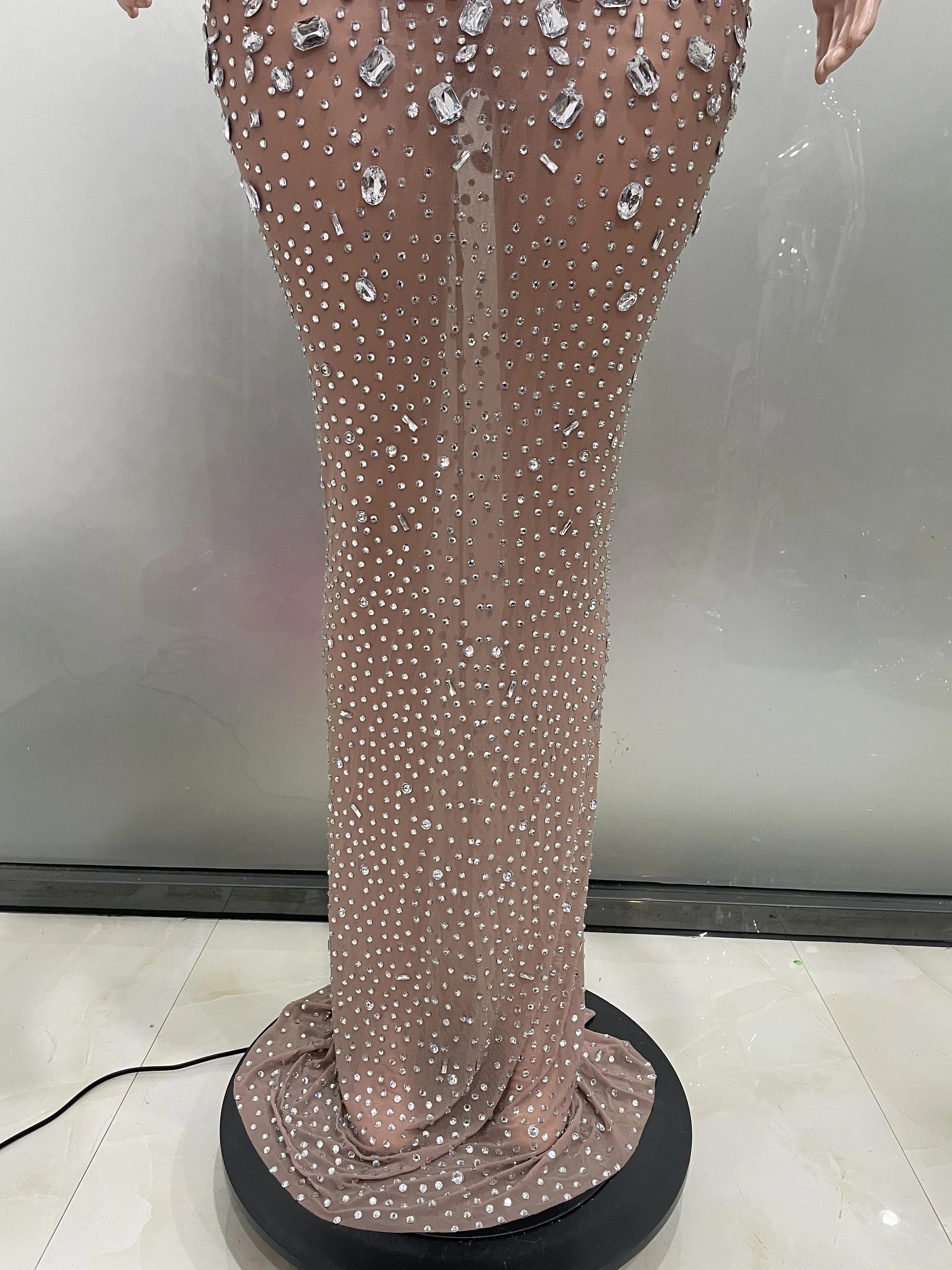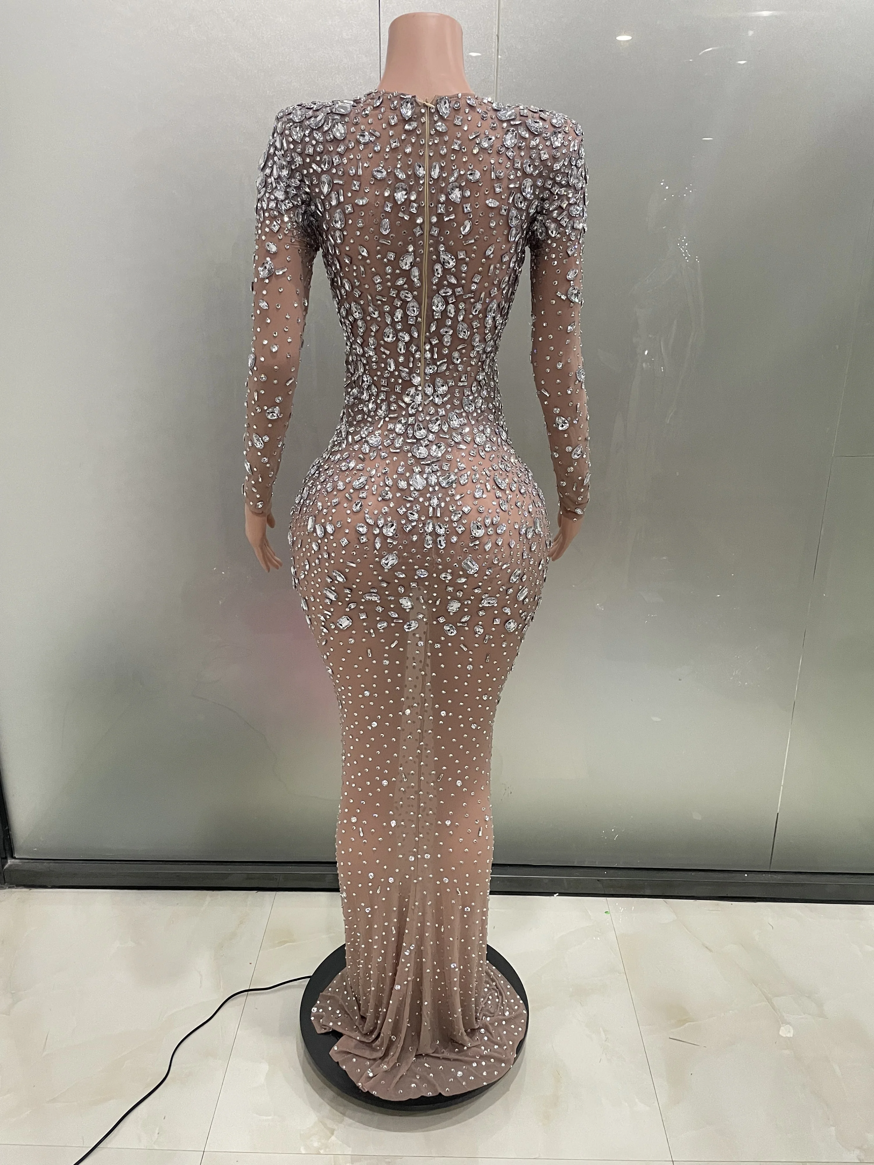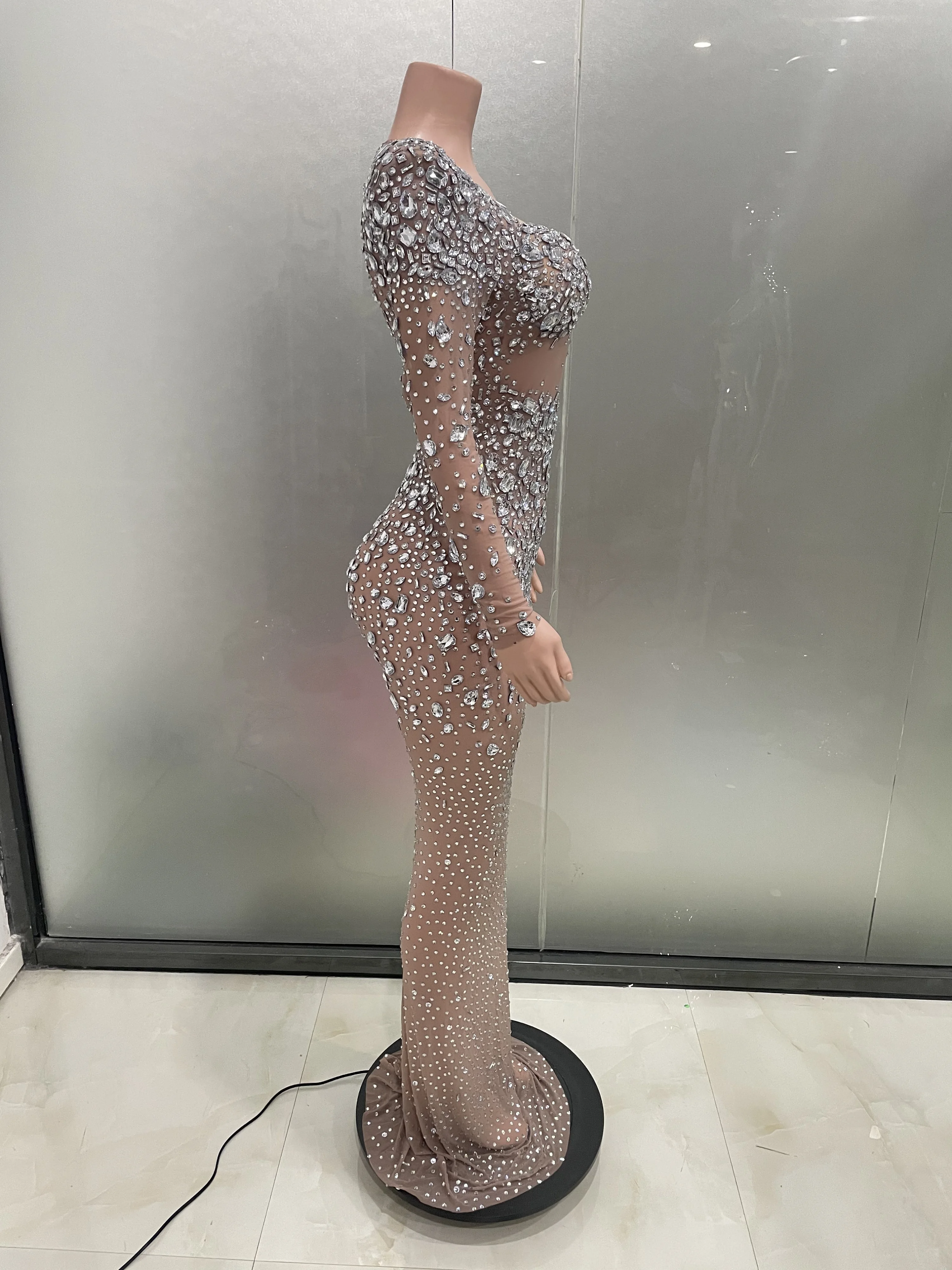 Luxury Evening Shinny Fancy Rhinestone Dress Performance Costume Women Prom Gown Club Party Celebrate Birthday Photoshoot Dress