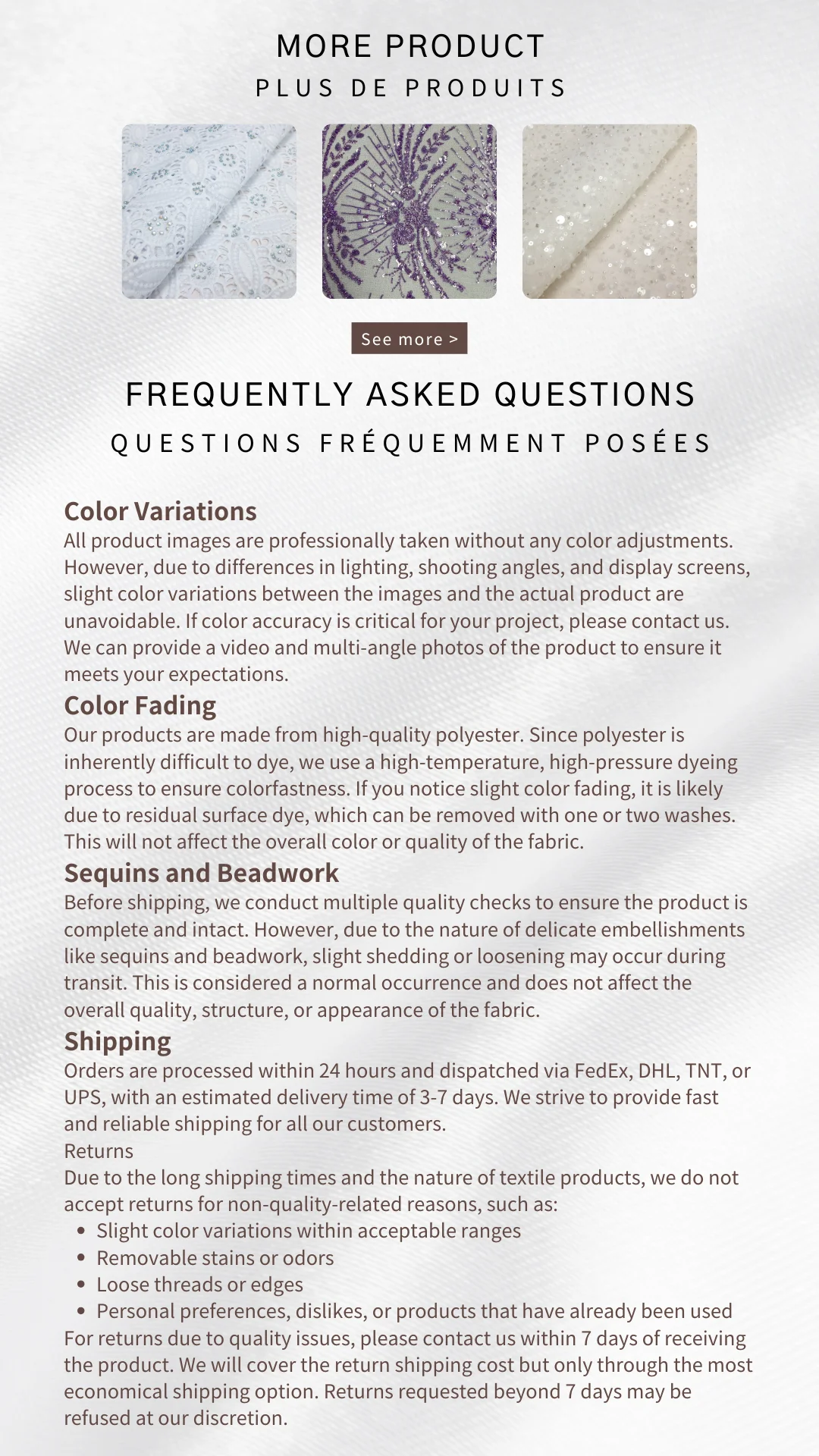 - Related Lace Pattern:Â swiss voile lace/ french lace/organza/ velvet fabric/Net tulle lace
