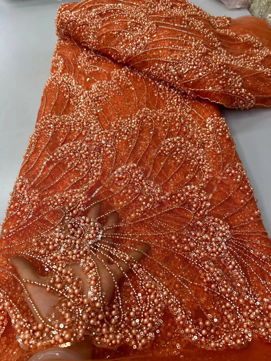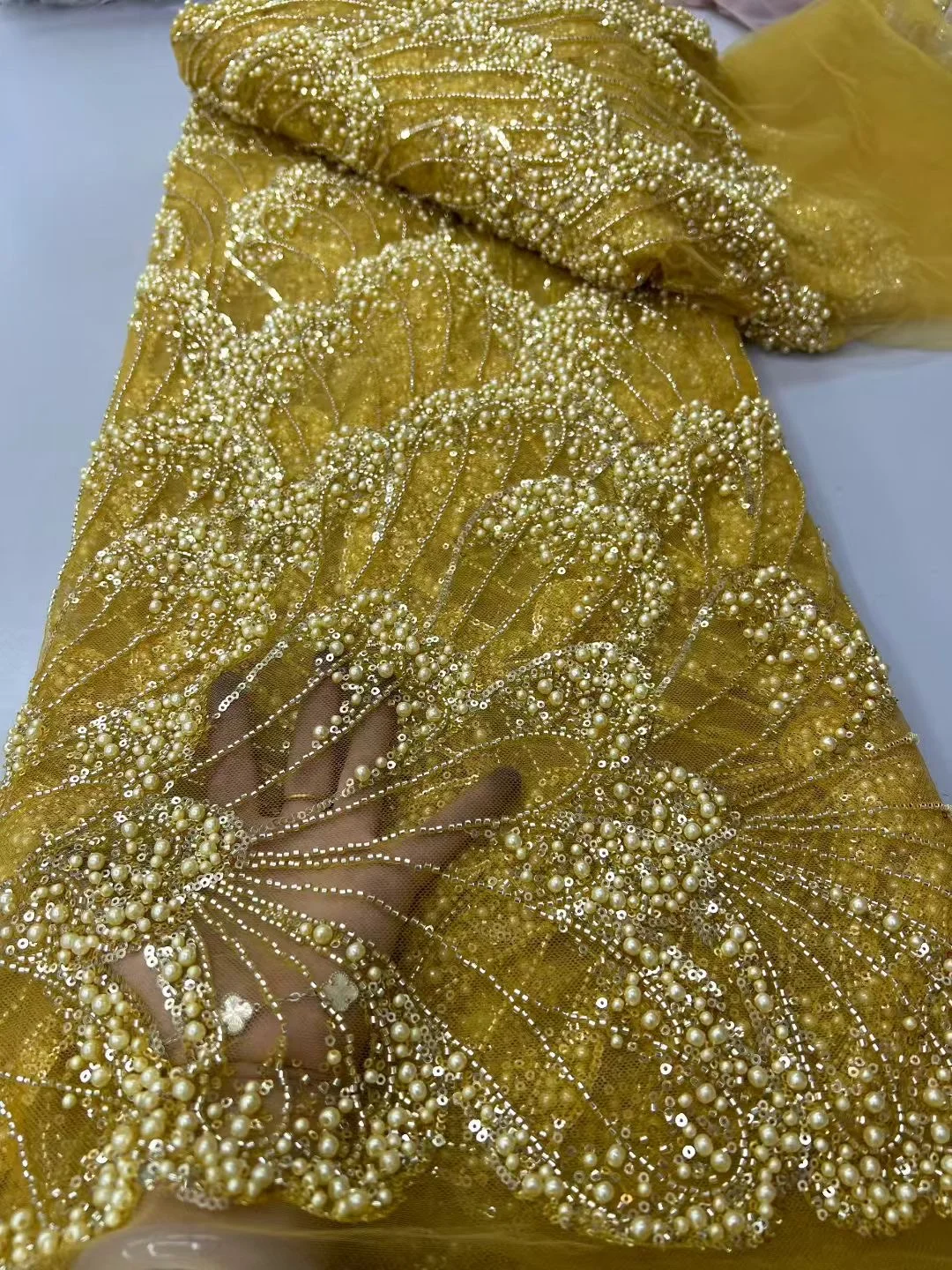 Be the first to review “Luxury Floral Design Fabric Handmade Embroidery Tulle Lace Full Beads Sequin For Sewing High-end New Women Wedding Dress” Cancel reply