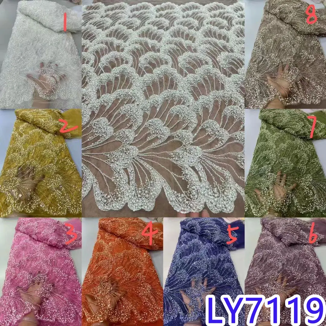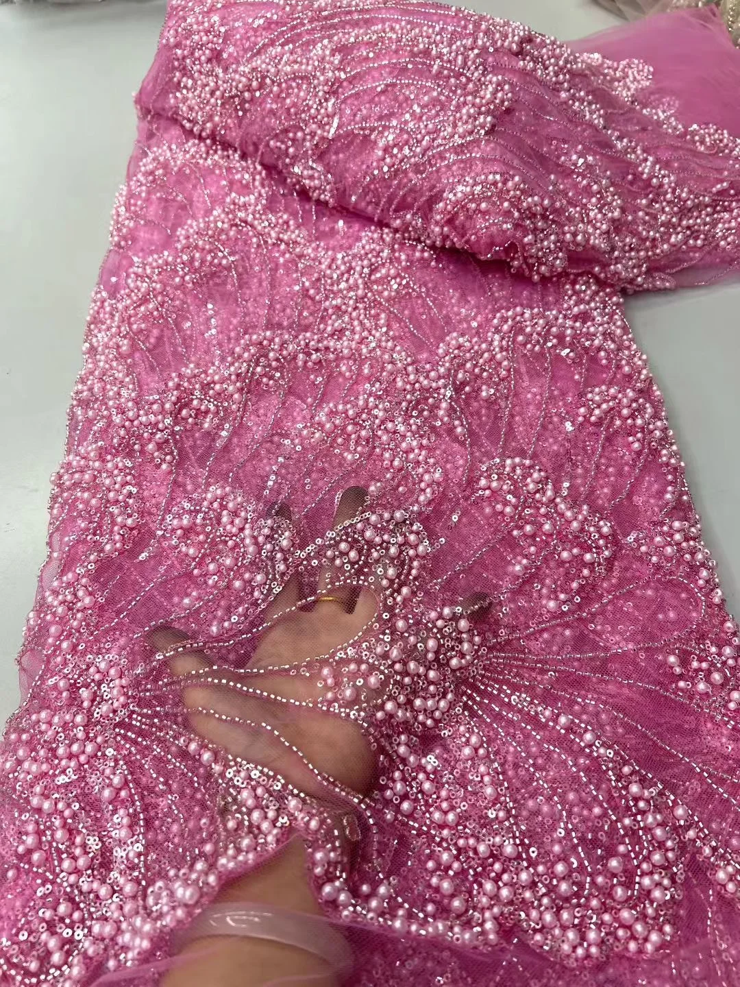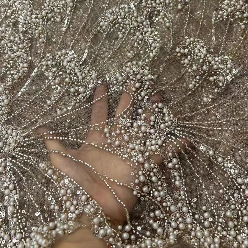 Luxury Floral Design Fabric Handmade Embroidery Tulle Lace Full Beads Sequin For Sewing High-end New Women Wedding Dress