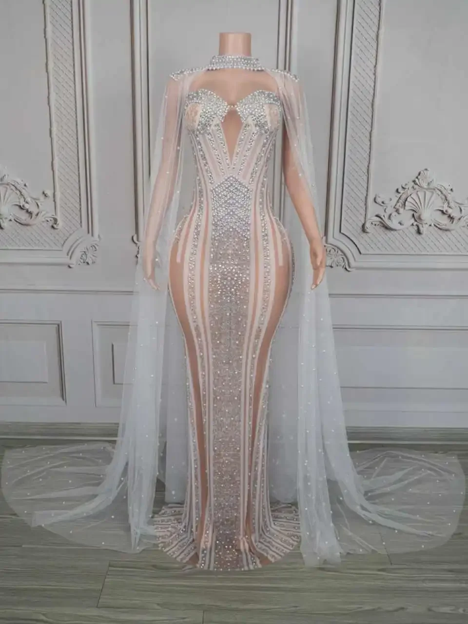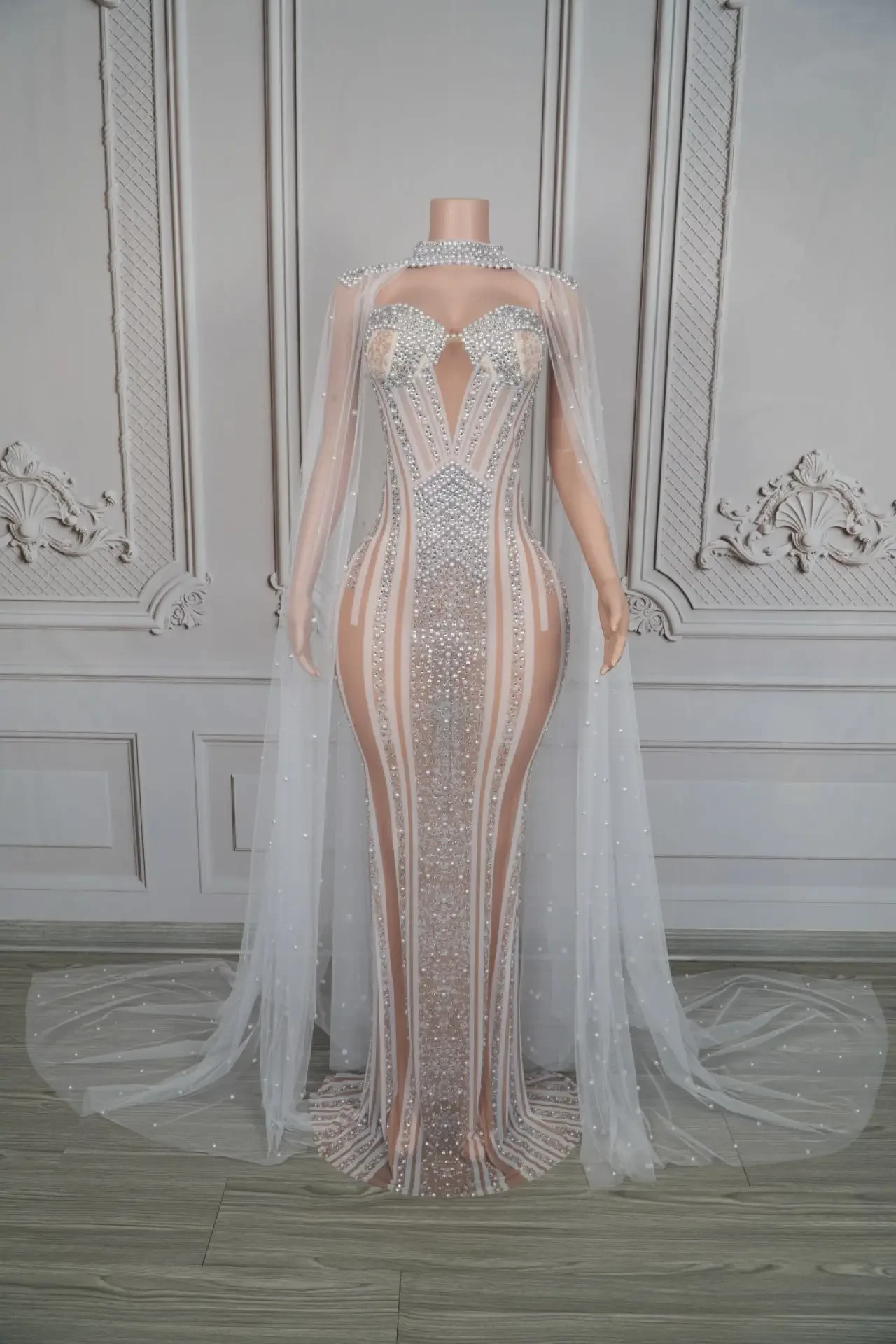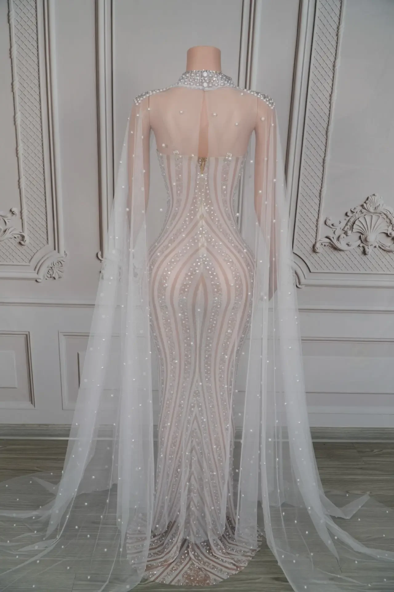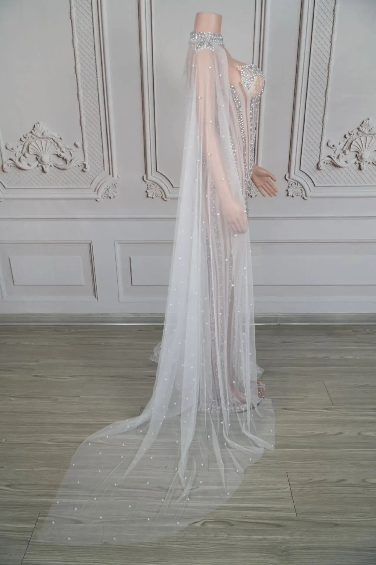 Luxury Sparkling pearl Large Crystal Transparent Long Train Dress Set Birthday Celebration Dress Evening Wedding Dance Dress
