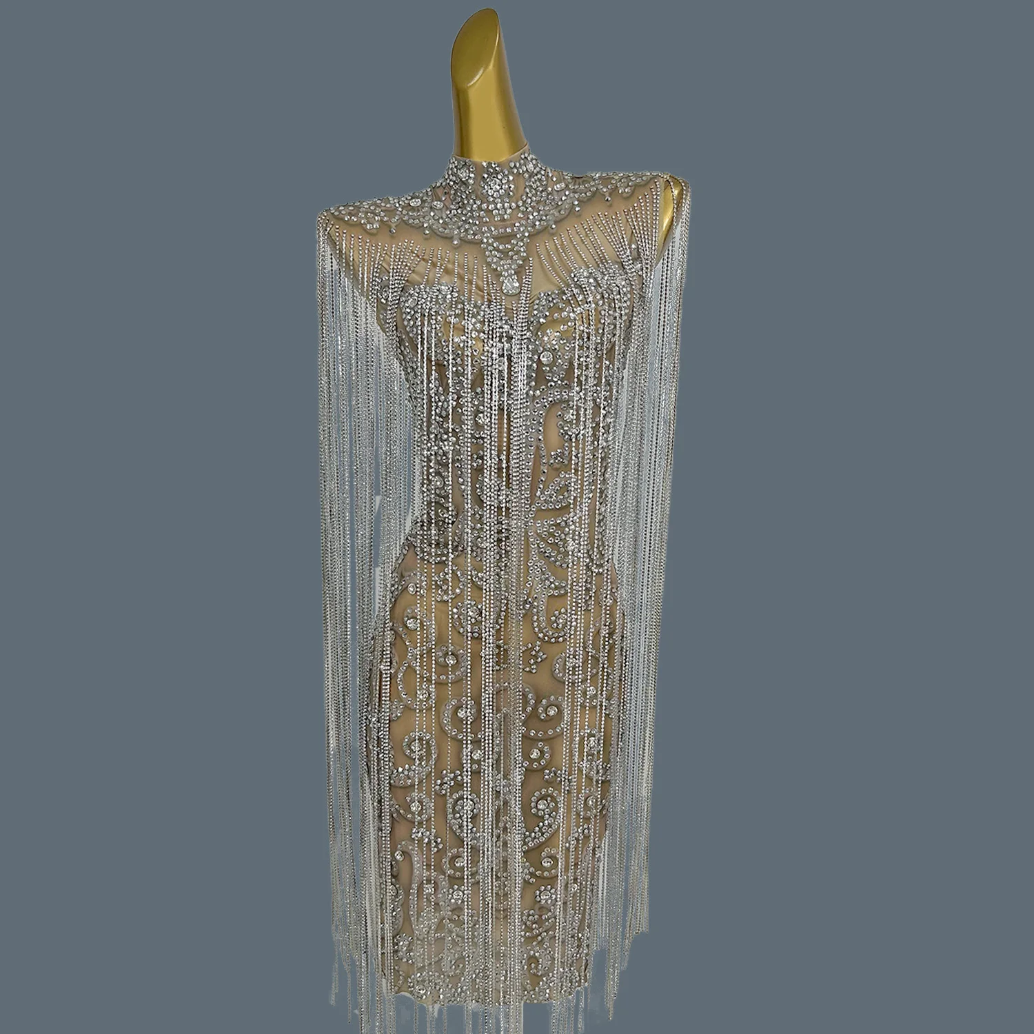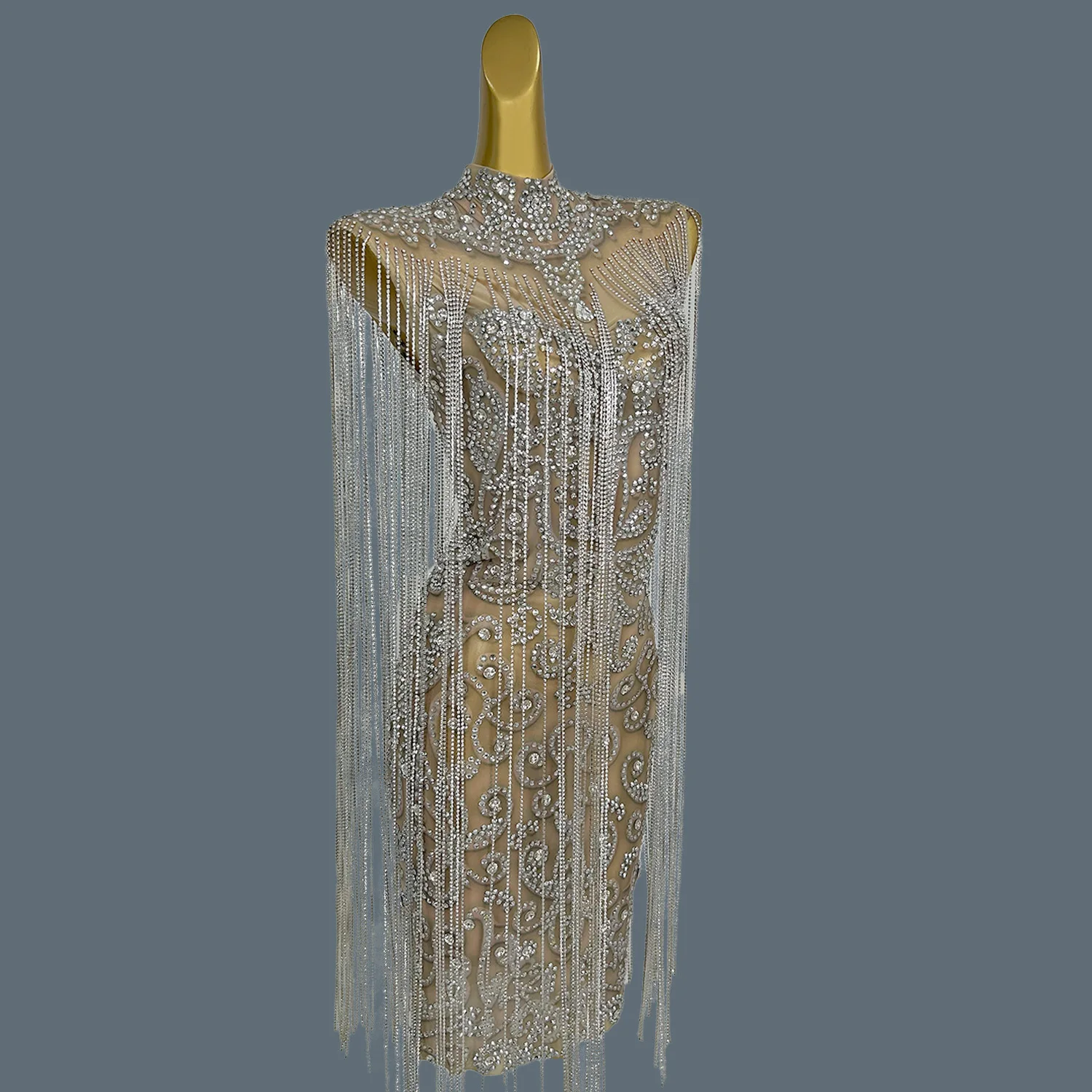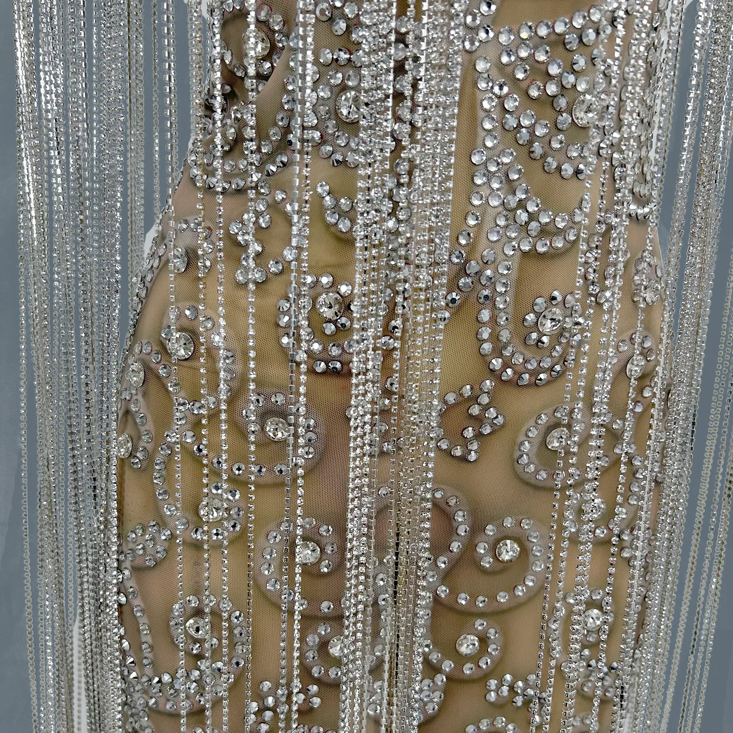 Luxury Sparkly Rhinestone Evening Dress High-end Tassel Cocktail Party Formal Dress Sexy Women Birthday Photo Shoot Wear Yulian