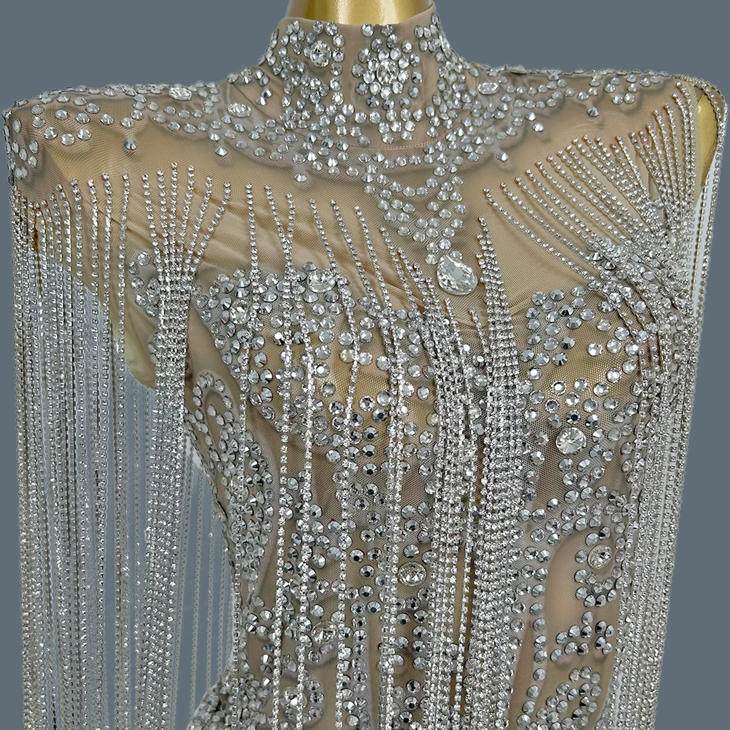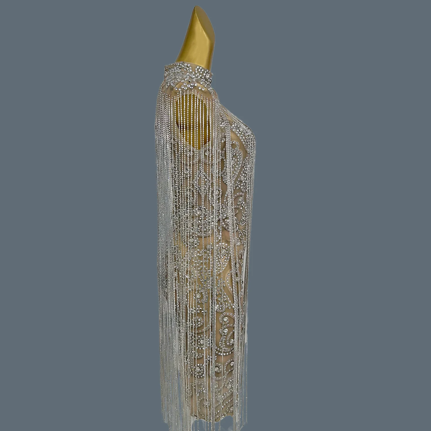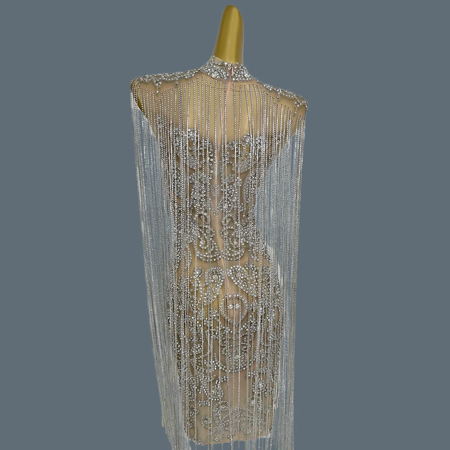 Luxury Sparkly Rhinestone Evening Dress High-end Tassel Cocktail Party Formal Dress Sexy Women Birthday Photo Shoot Wear Yulian