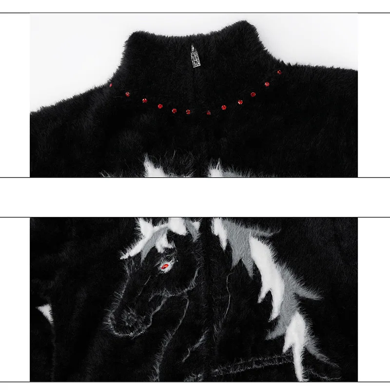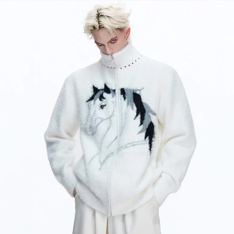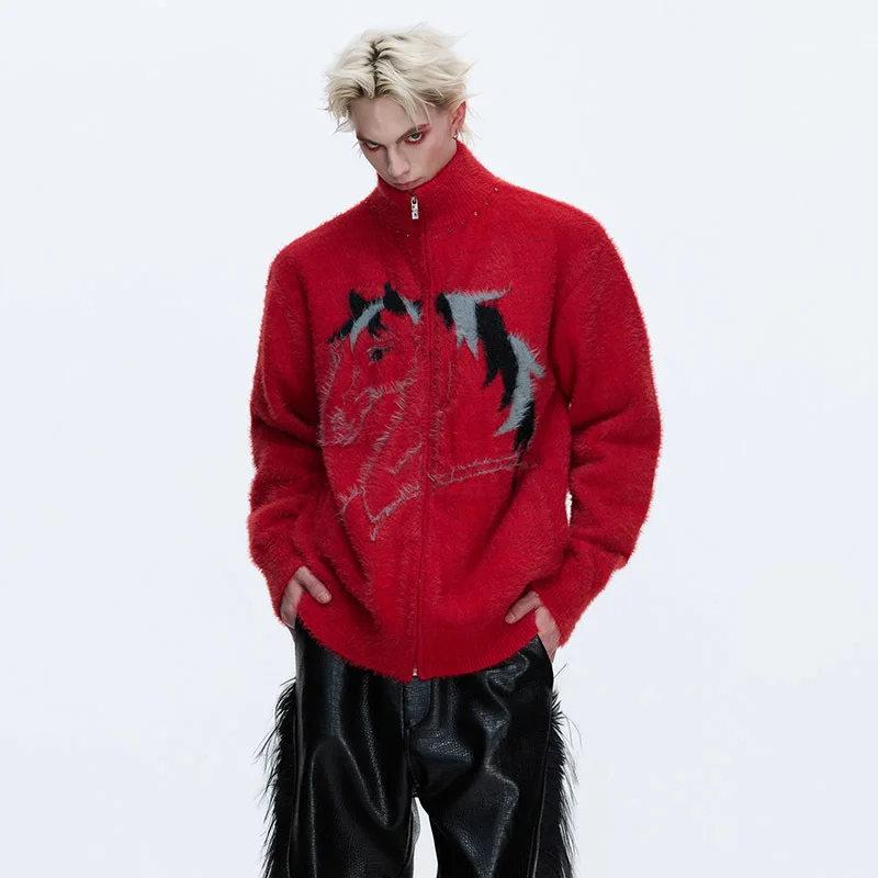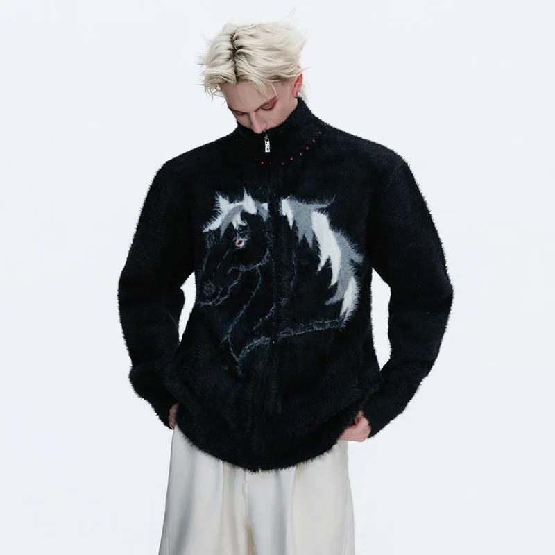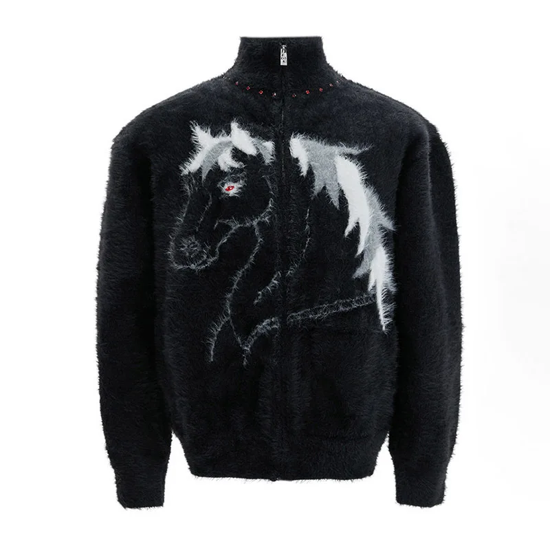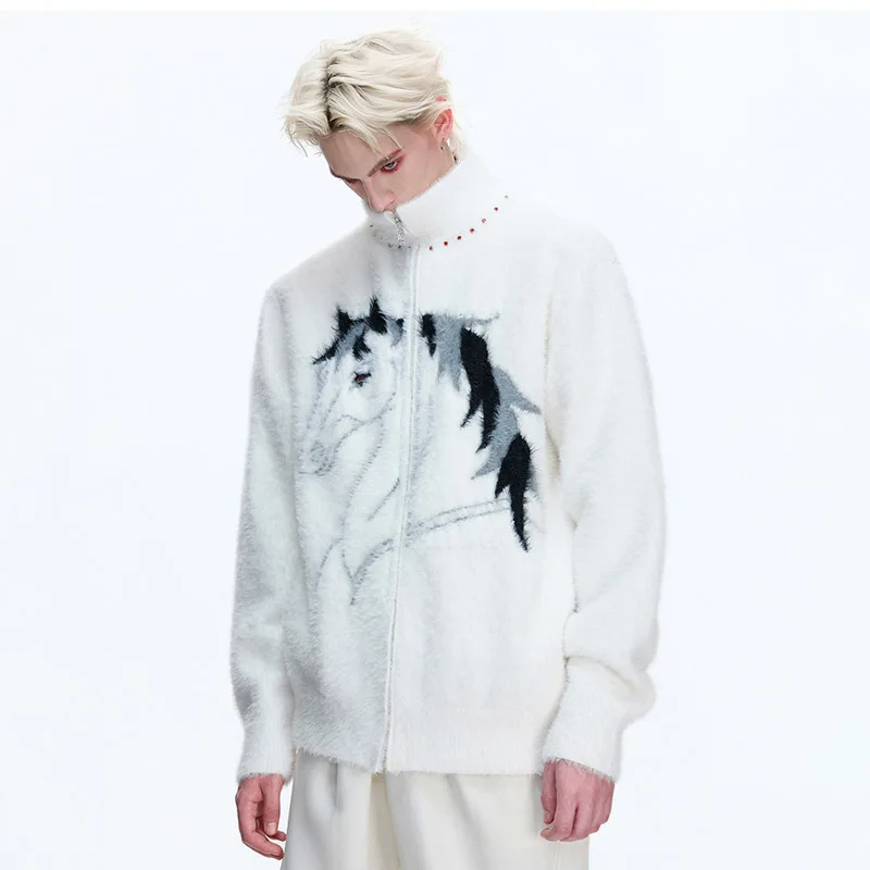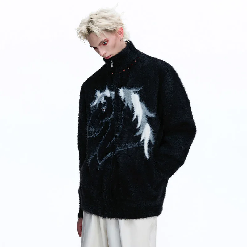 LUZHEN 2026 Winter Original Fleece Patchwork Pattern Stand Neck Handsome Sweaters Men’s Fashion High Quality Loose Coat JY5807