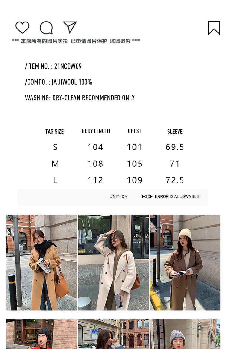 Be the first to review “M 801 Real Pure Wool Overcoat Handmade Turn-down Collar Belt Dense Fabric Notch Lapel Women Coat Long Winter Jacket Autumn #09” Cancel reply