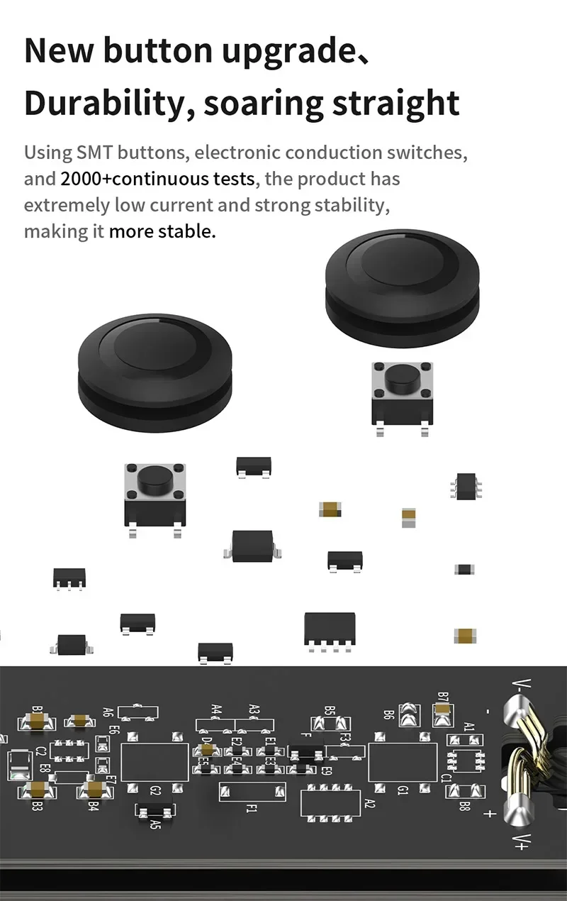 4. Using SMT buttons, electronic conduction switches, and 2000+continuous tests, the product has extremely low current and strong stability, making it more stable.