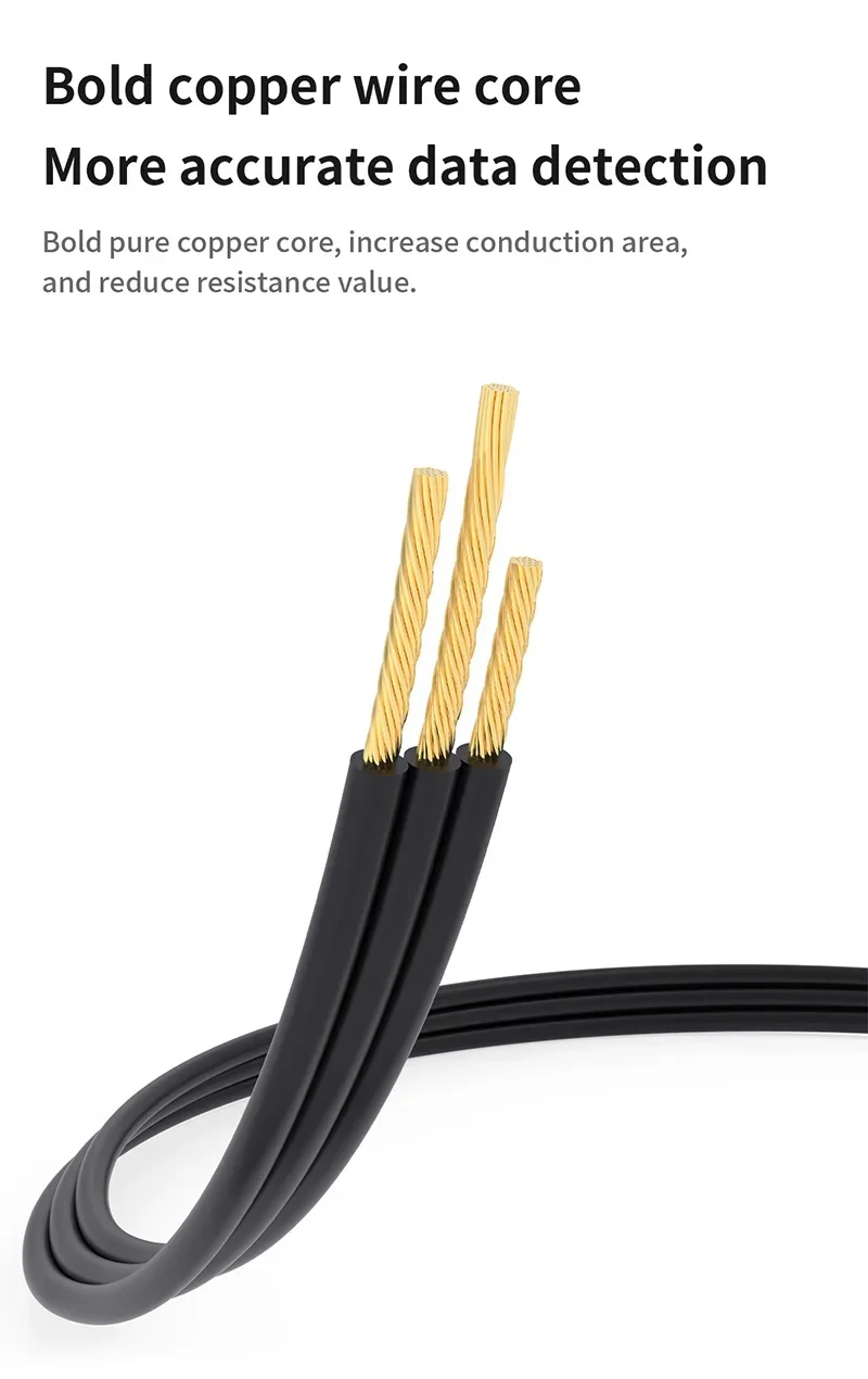 6. High flexibility and density wire body has strong flexibility and it is wear resistance. Thickened copper wire core: low resistance, more accurate data detection, increased conduction area, low resistance.