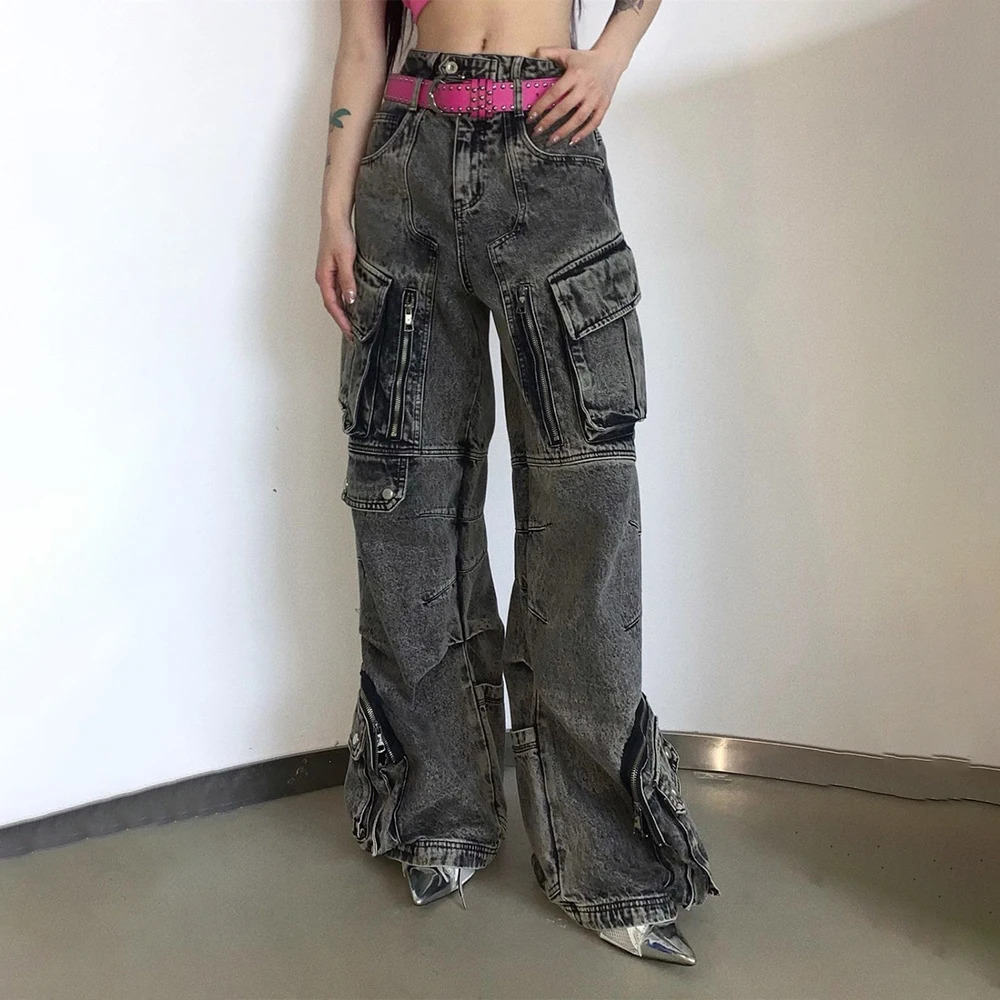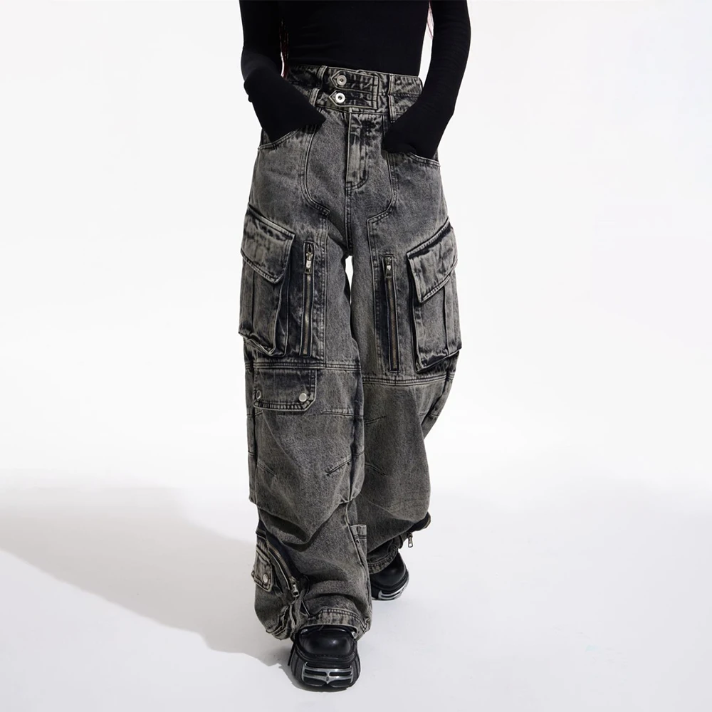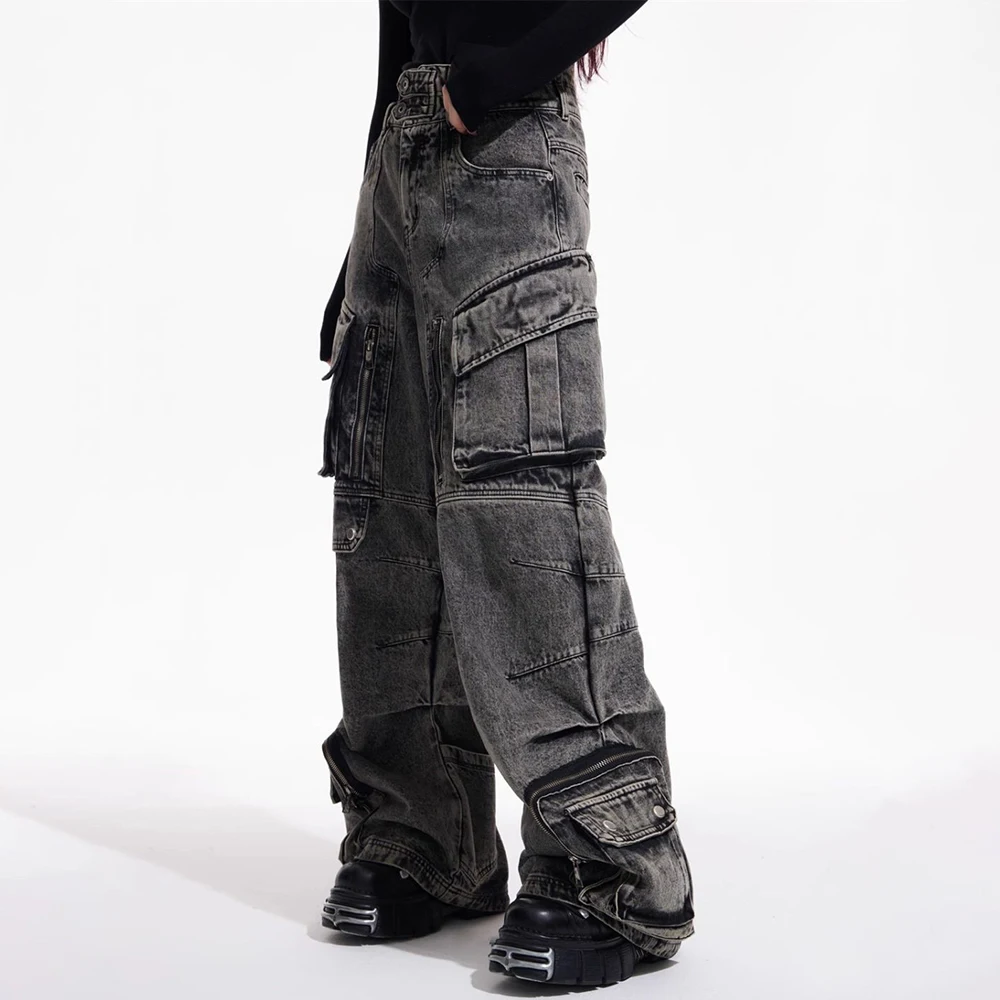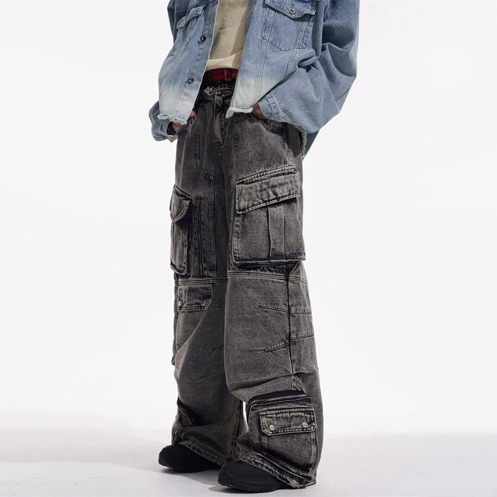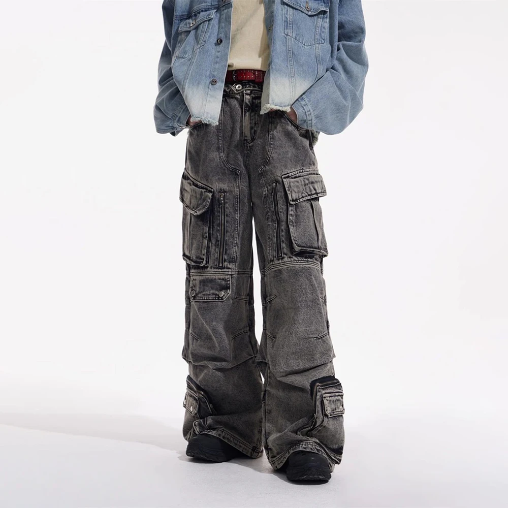 Men Gothic Jeans Y2k Big Pocket Cargo Jeans Streetwear Fashion Japanese Youth Campus Wide Leg Casual Pants Male Men’S Clothing