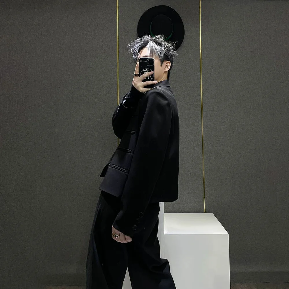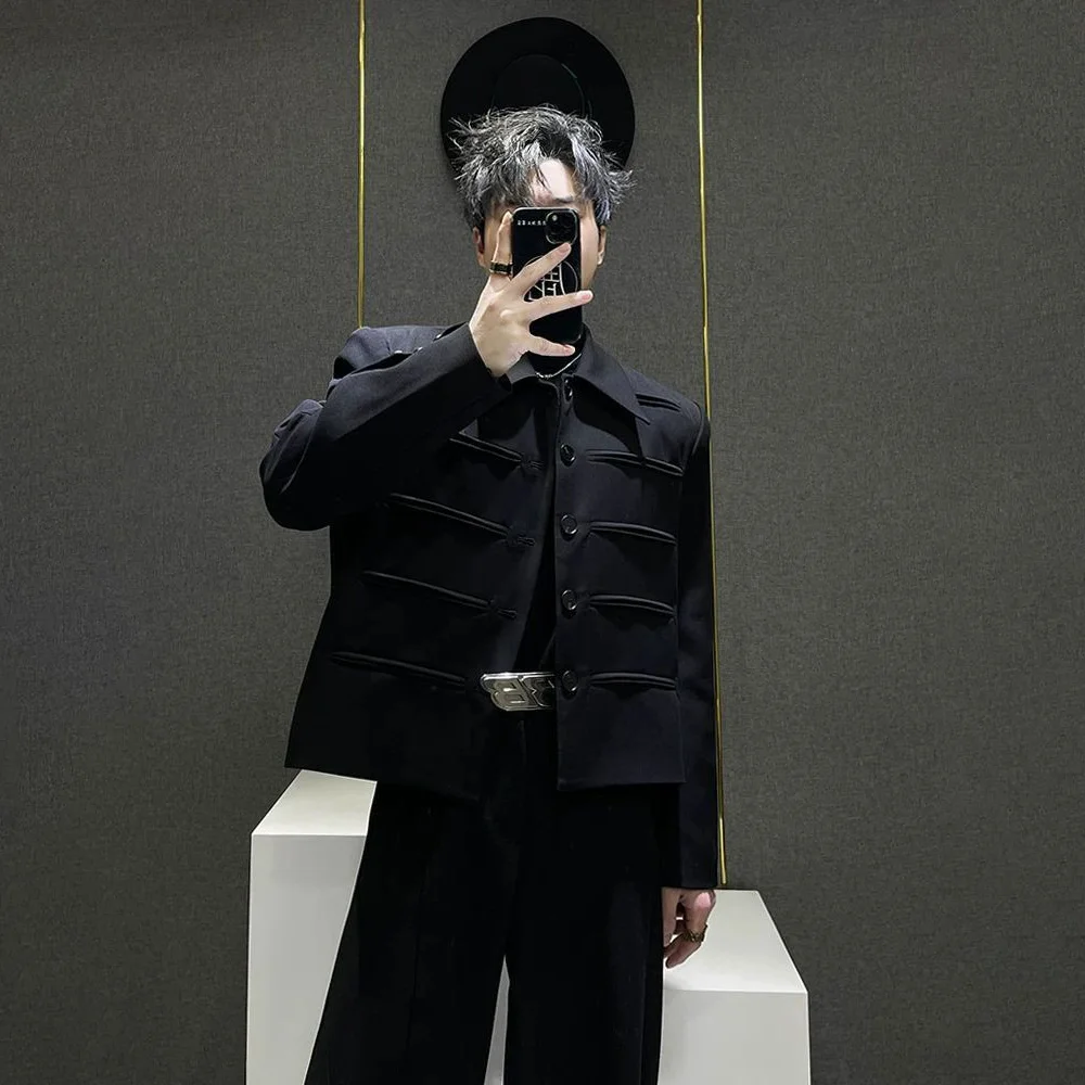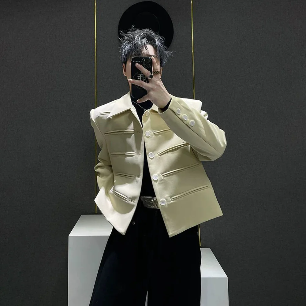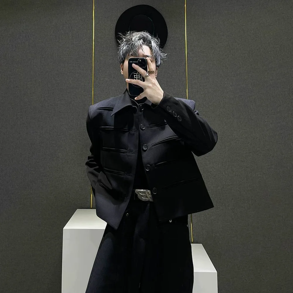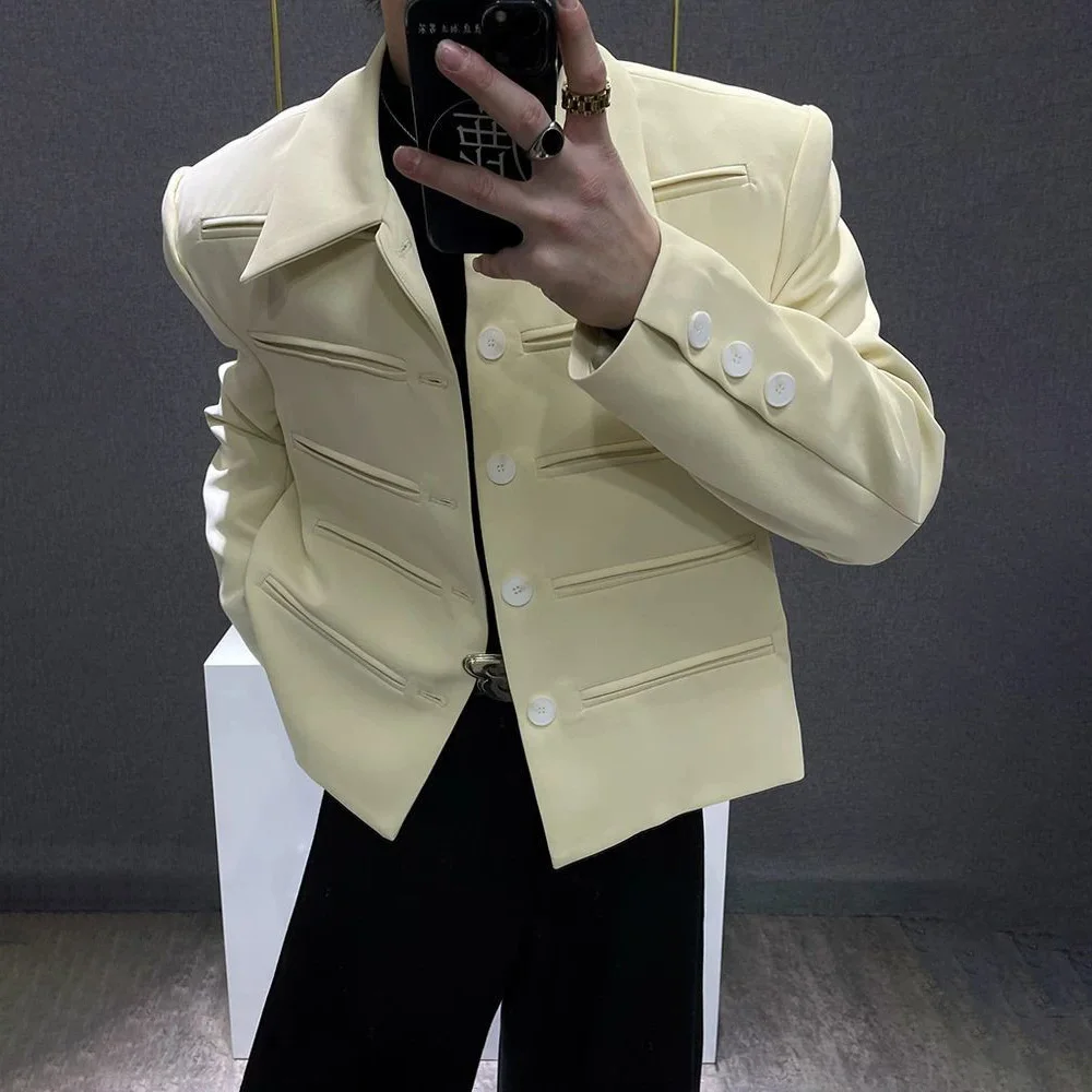 Men Suit Short Style Shoulder Pad Pocket Decoration Design Jacket Streetwear Fashion Business British Jacket Men’S Clothing 2025