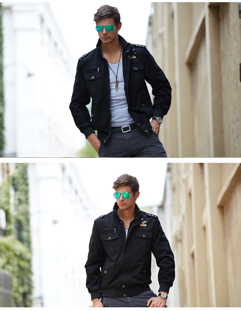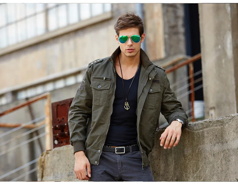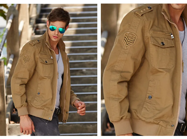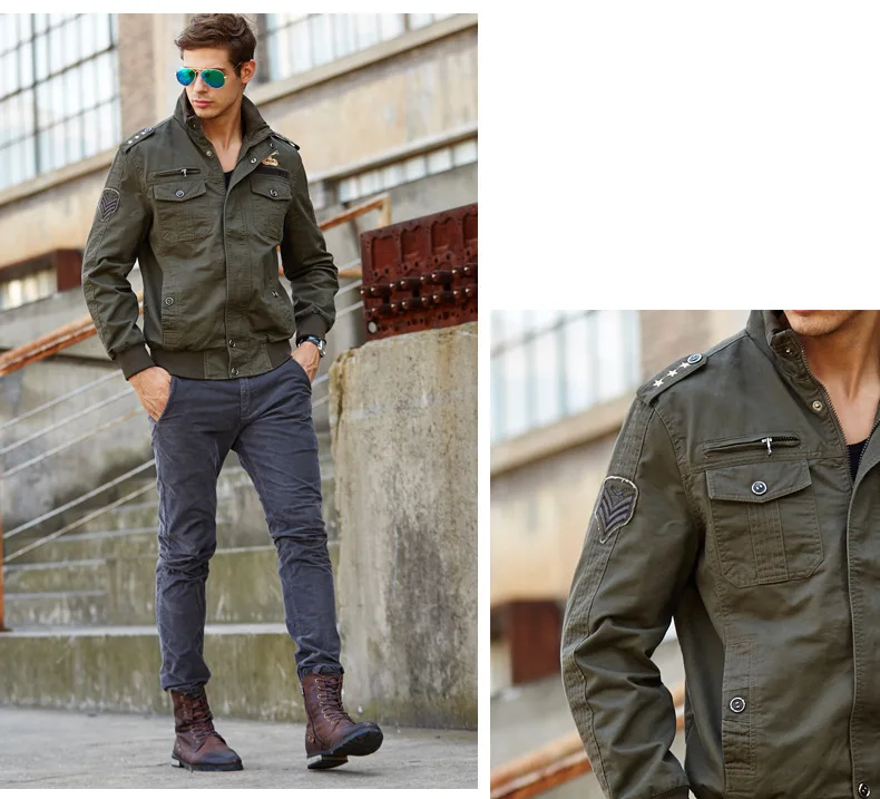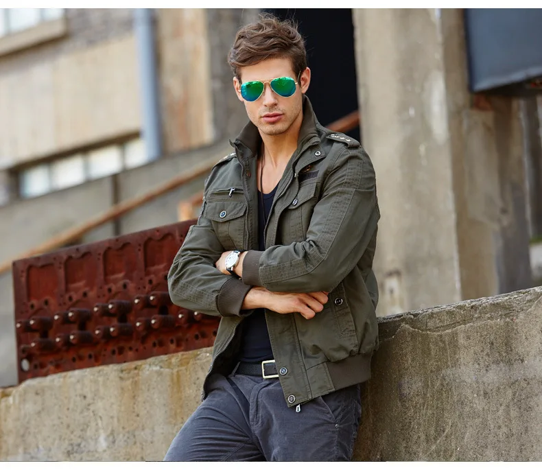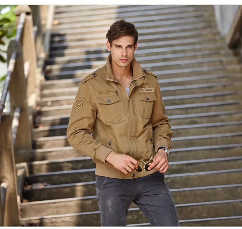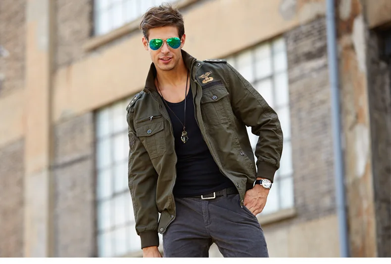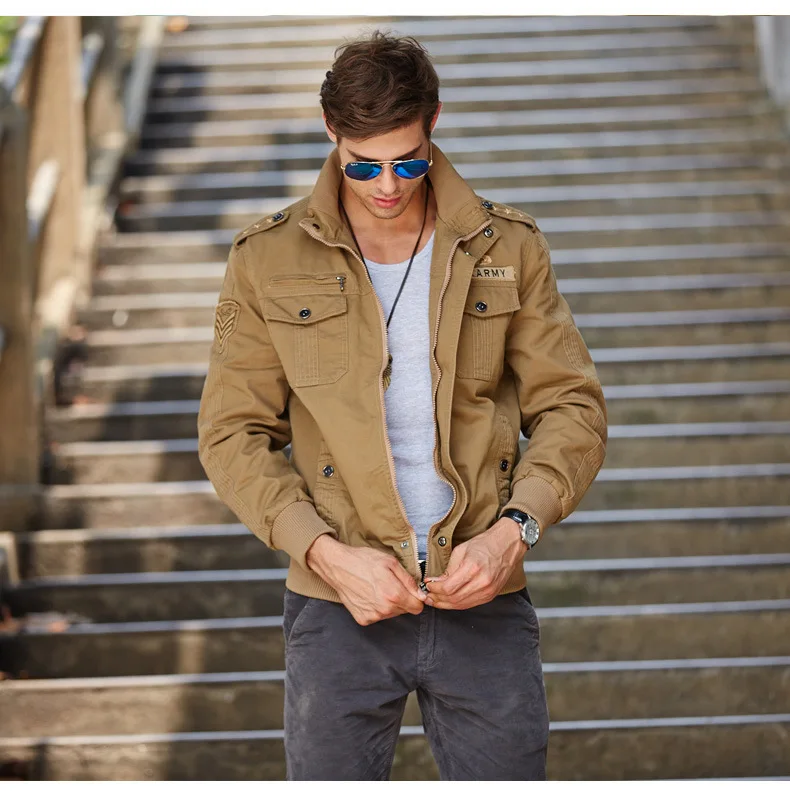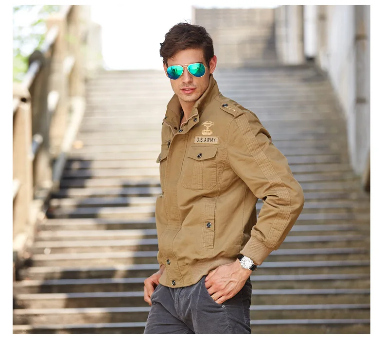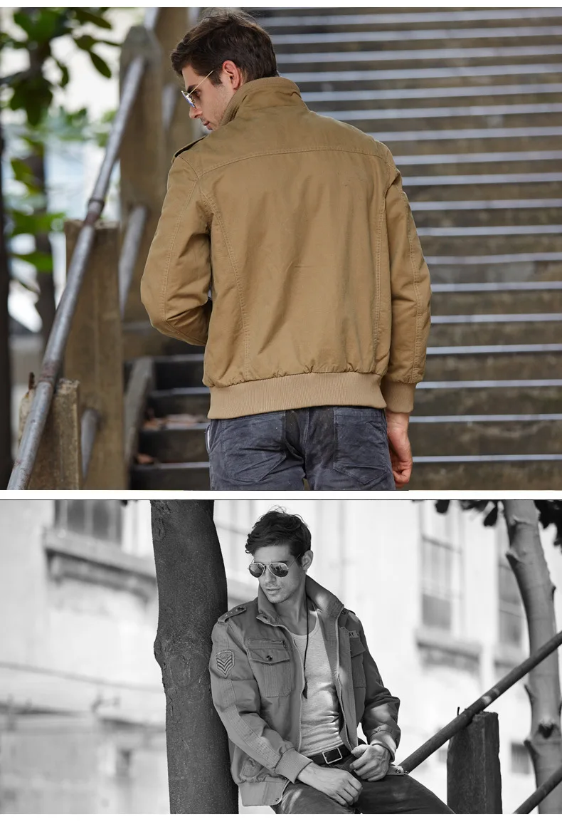 Men’s casual jacket American flight jacket regular zip-collar jacket for men windproof and wear-resistant overalls jacket