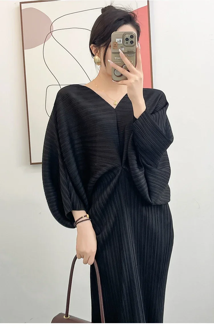 Be the first to review “Miyake Dress Pleated Fashion Solid Color Bat Sleeve V-neck Formal Holiday Evening Dress 2024 Summer Maxi Dresses for Women” Cancel reply