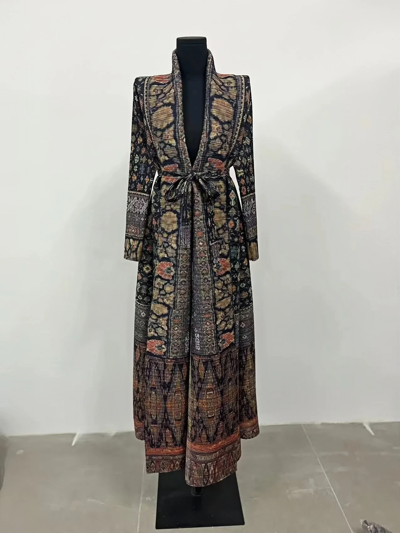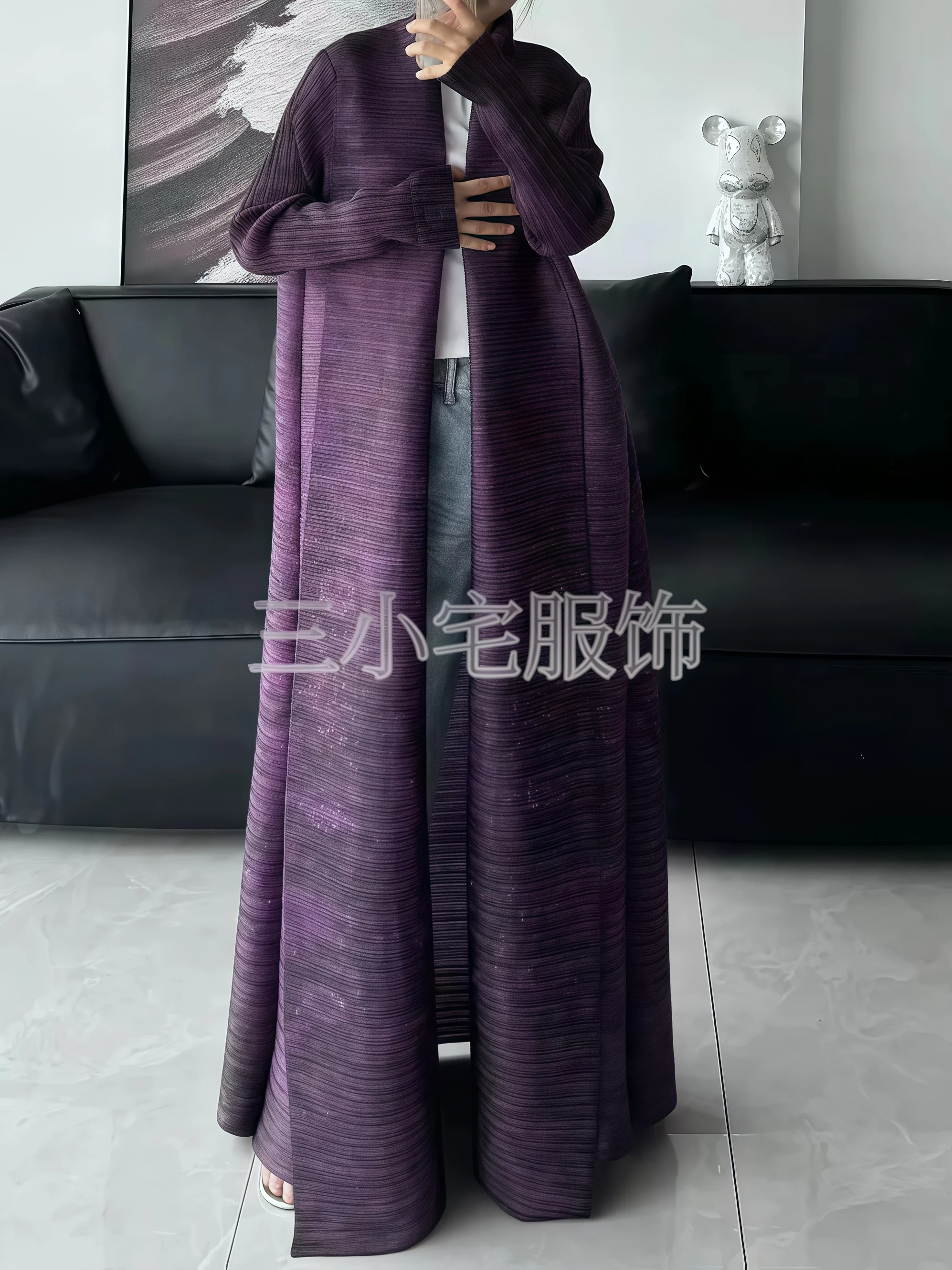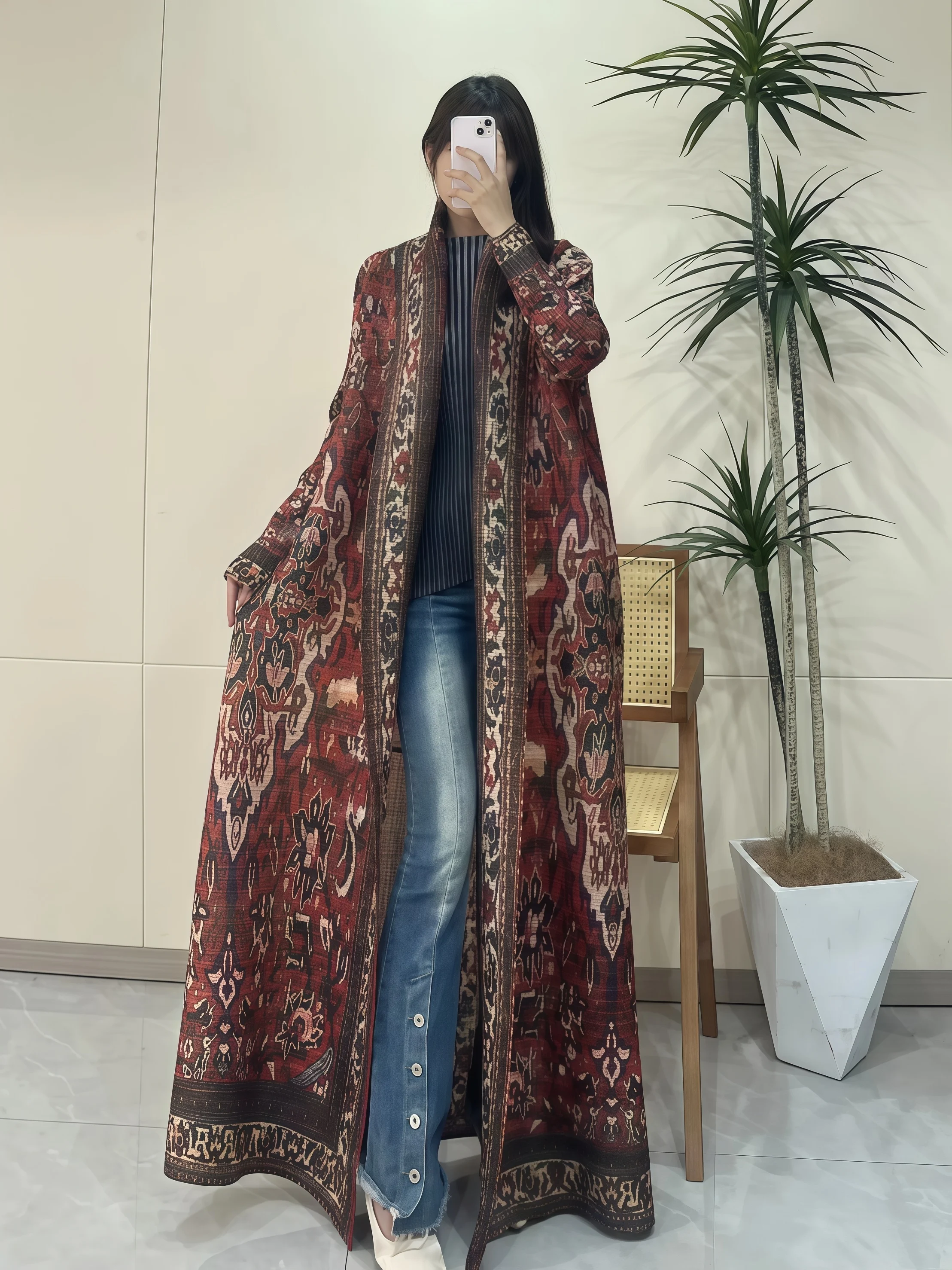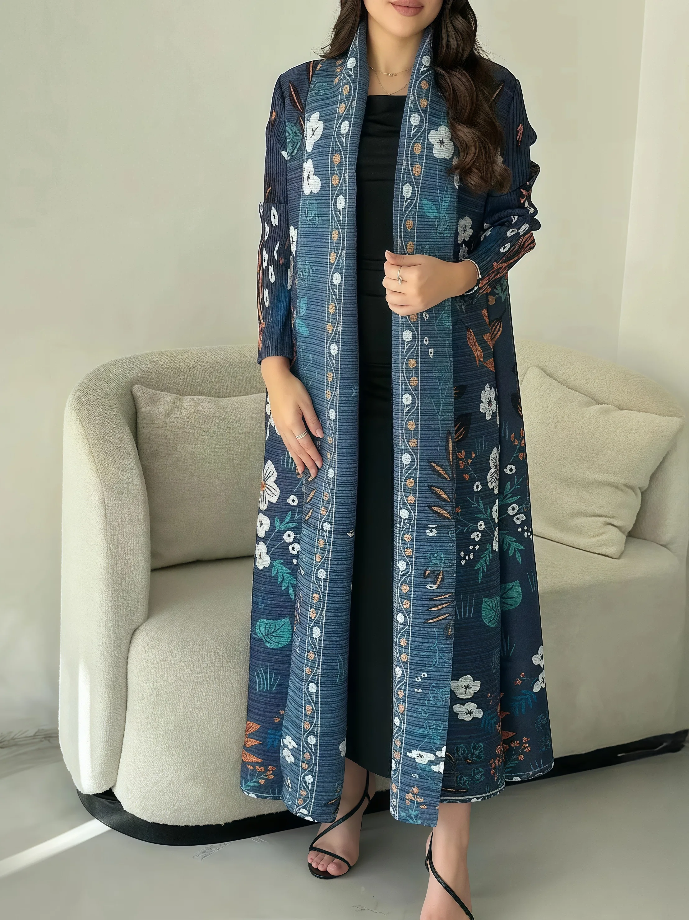 Miyake Pleated Abaya Print Foldable Collar Women’s Long Sleeve Robe 2024 New Winter Original Design Fashion Cardigan Coat