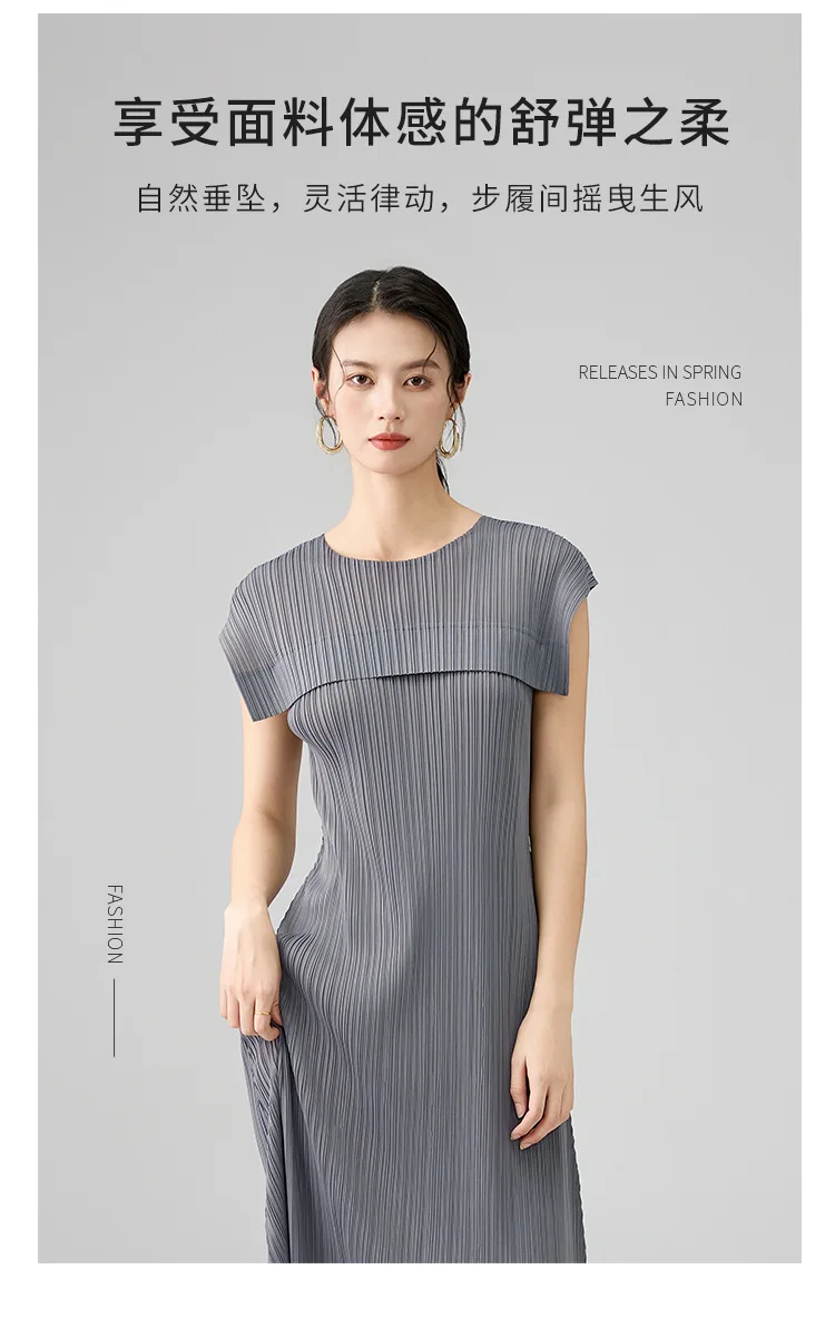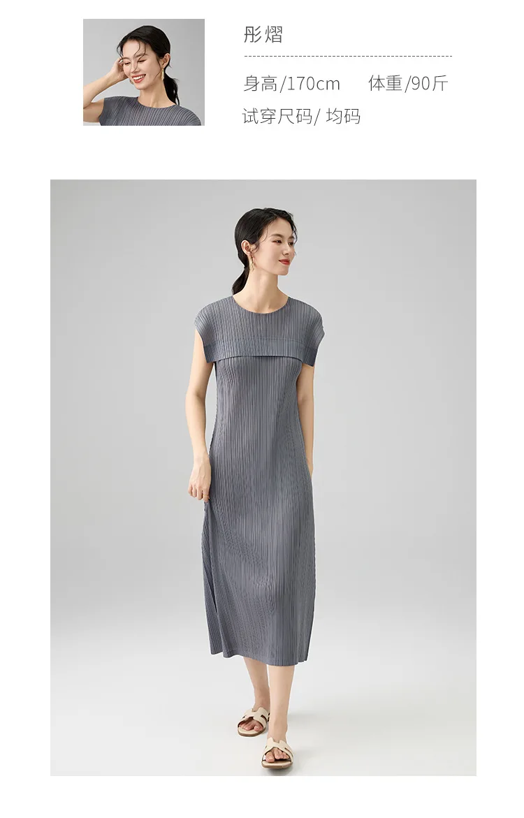 Be the first to review “Miyake Pleated Splicing Dress 2025 Spring and Summer New Temperament Round Neck Sleeveless Comfortable Casual Peplum Long Skirt” Cancel reply