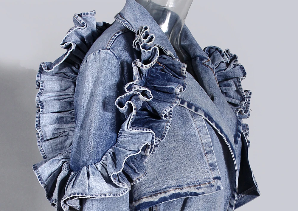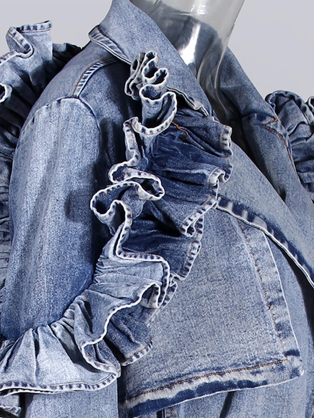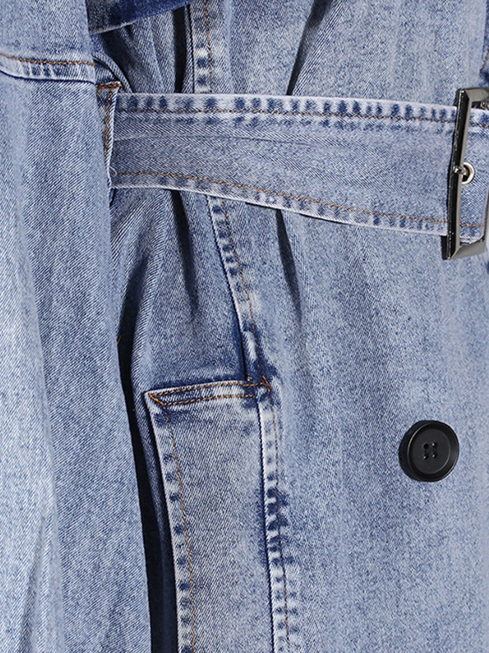 Modphy Autumn Oversized Blue Long Denim Trench Coat for Women Double Breasted Ruffle Loose Casual Fashion Overcoat 2025