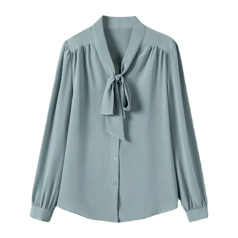Mulberry Silk Shirt Women’s Silk Bow Ribbon Shirt Temperament Long Sleeve Women Blouse Sand Washed Crepe De Chine Silk