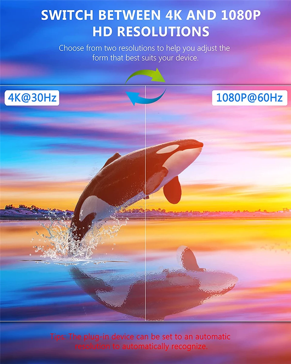 Support resolution up to 4K@30Hz/1080@60Hz;